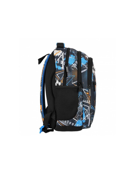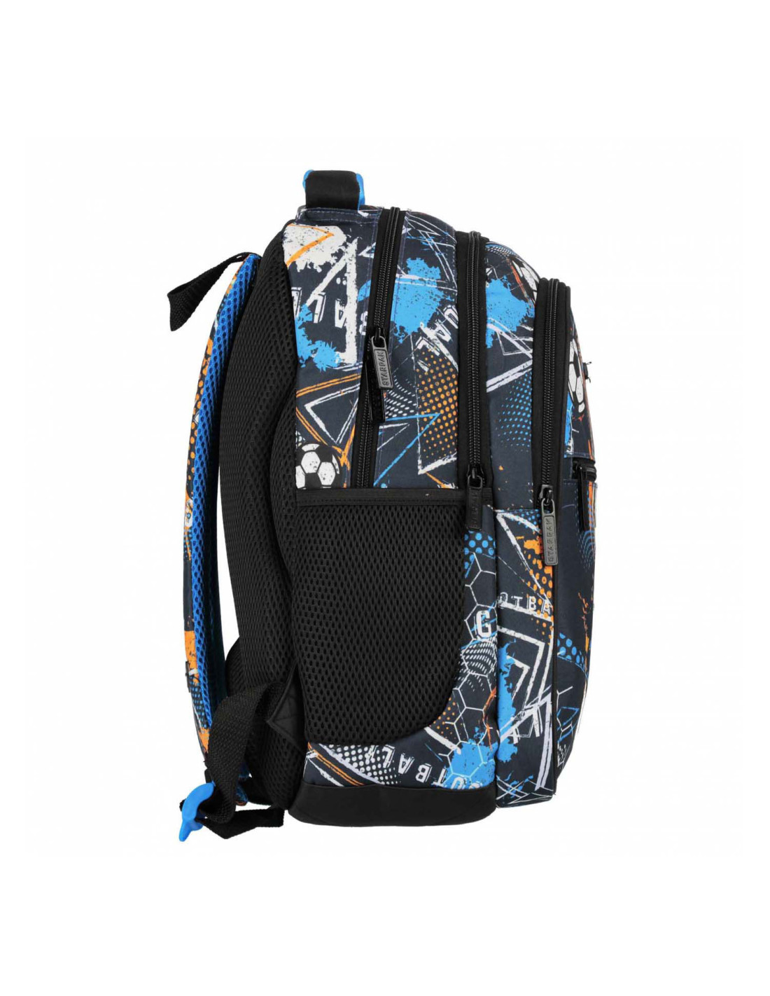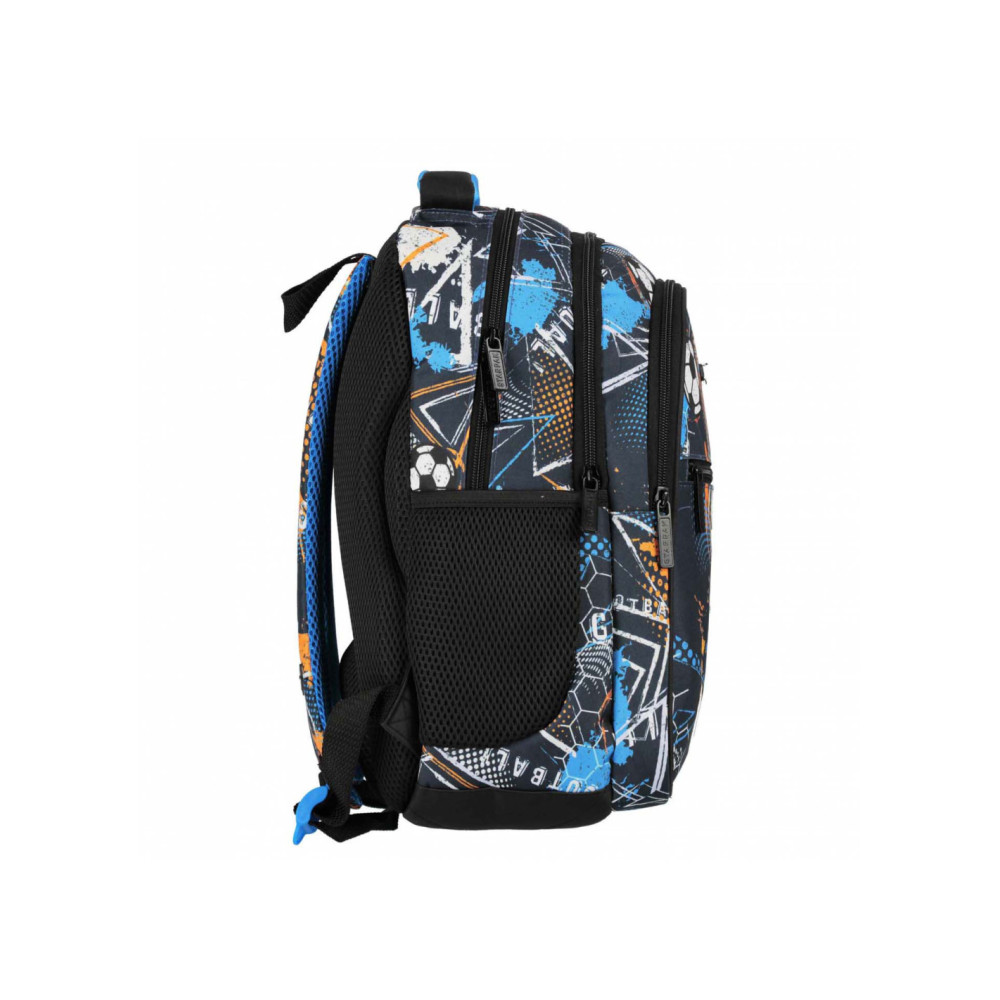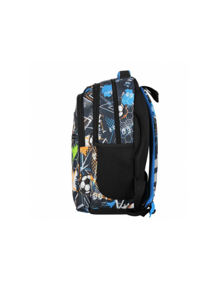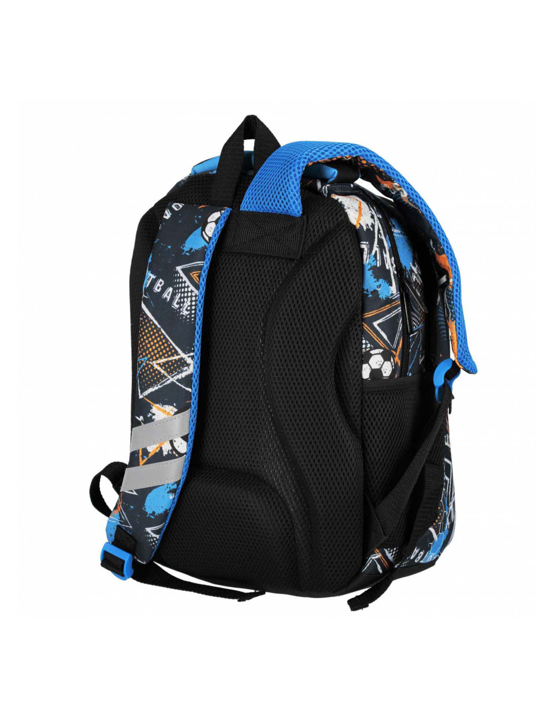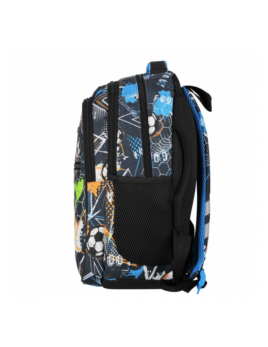 STARPak rugzak met voetbalprint, twee hoofdcompartimenten, voorvakken en zijvakken met trekkoord. Textielrugzak van 38 x 25 x 18 cm met 24 liter inhoud. Voorzien van reflecterende details.