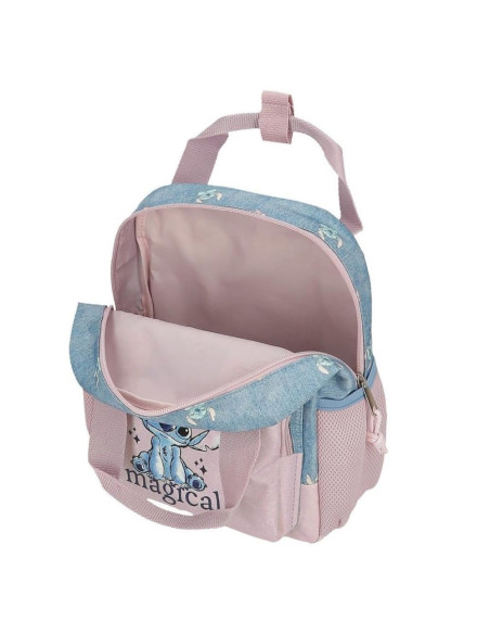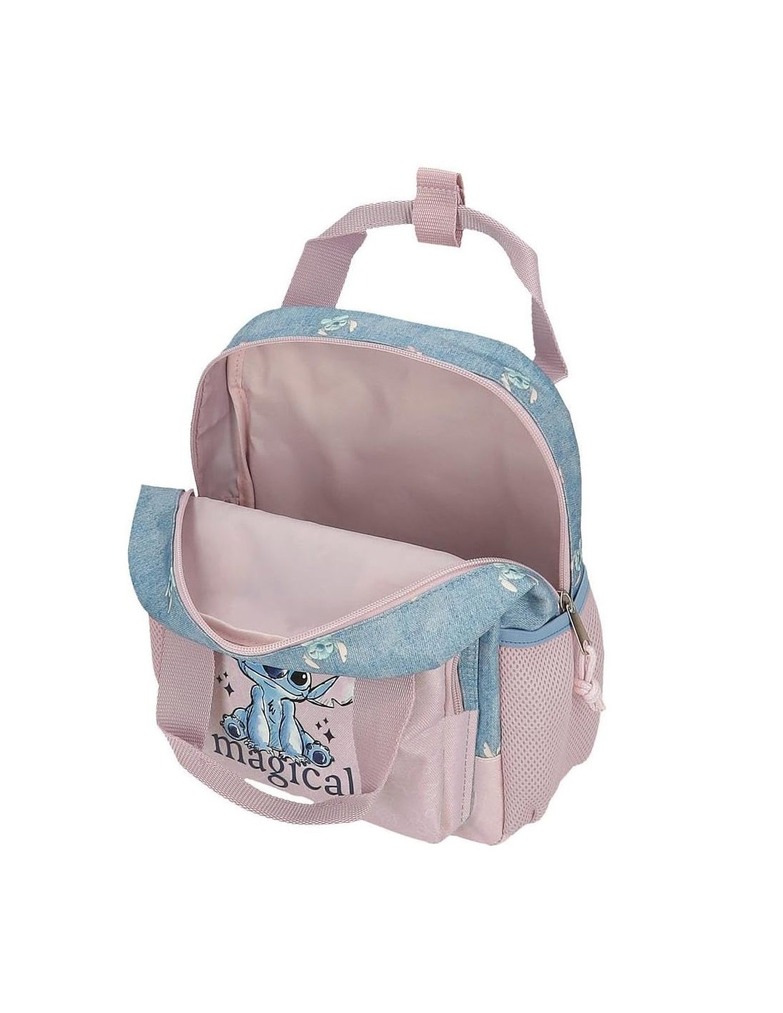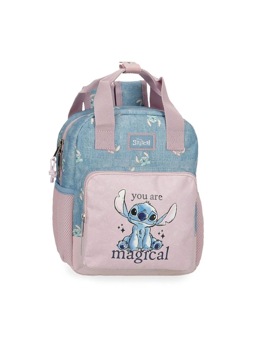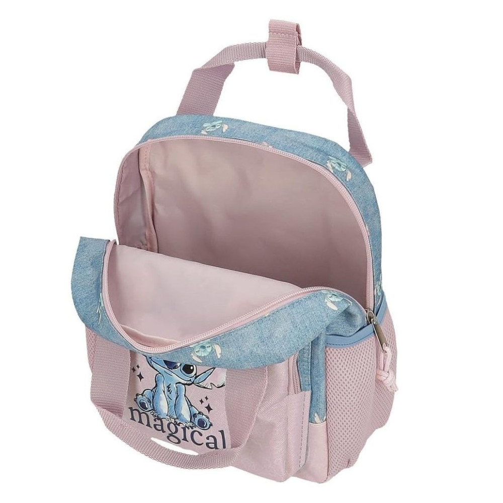 Rugzak met voorvak en afbeelding van Stitch. Geschikt voor kinderen vanaf 3 jaar. De tas is 28 x 23 x 10 cm groot.