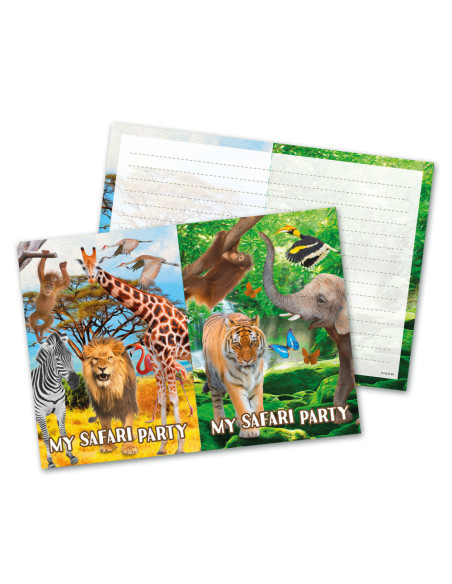 Set van 8 safari uitnodigingen, inclusief enveloppen.