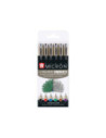 Het etui bevat 1 stuks van de volgende gekleurde Pigma fineliners: Zwart (49), Rood (19), Blauw (36), Groen (29), Bruin (12) en Paars (24).