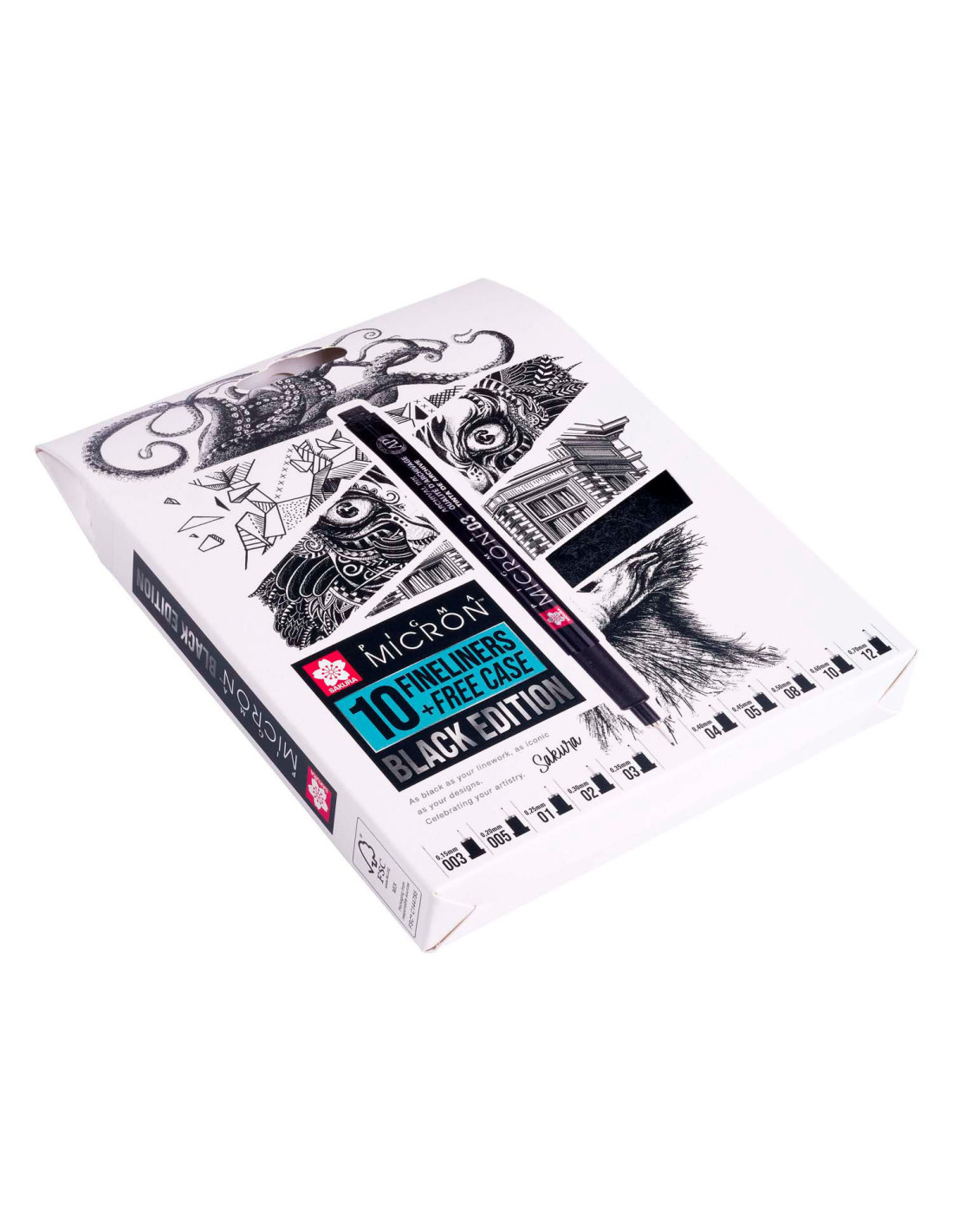 De favoriete fineliners van ontwerpers, Pigma Microns, zijn nu verkrijgbaar in een speciale Black Edition. Mis deze stijlvolle, volledig zwarte versie van de iconische pen met de betrouwbare zwarte Pigma-inkt niet. Deze set Black Edition Pigma Micron fineliners bevat ook een gratis vilten etui.