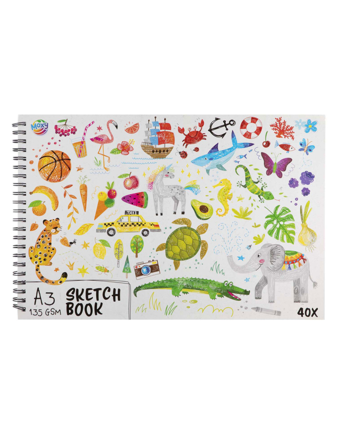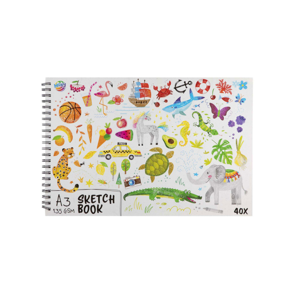 Schetsboek op A3-formaat, 40 vellen 135gsm papier. Ringgebonden.