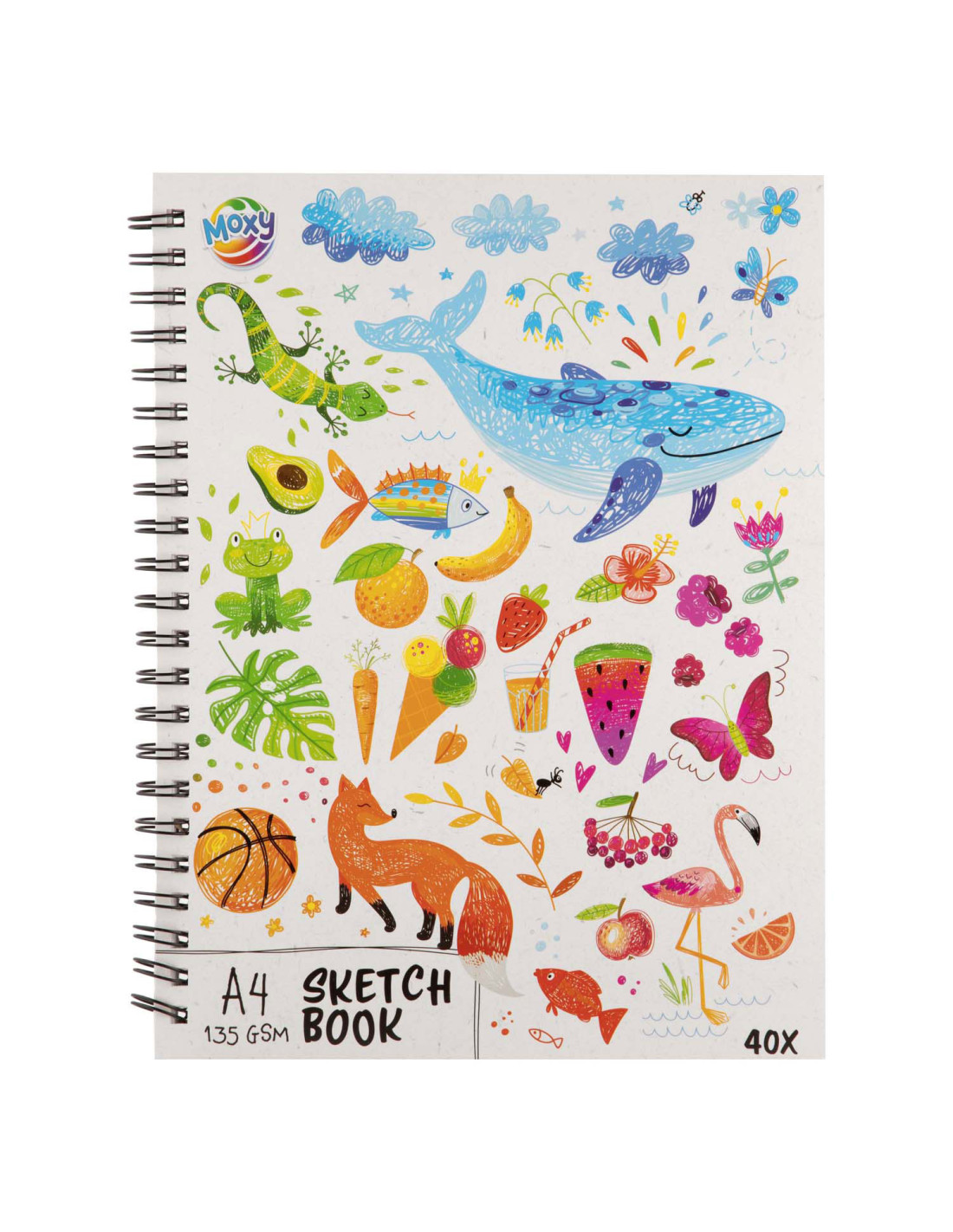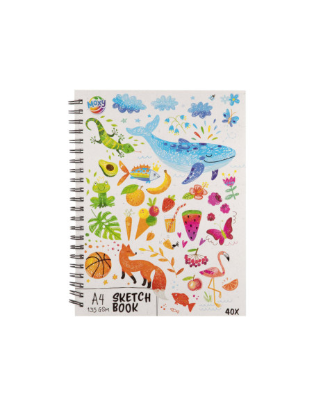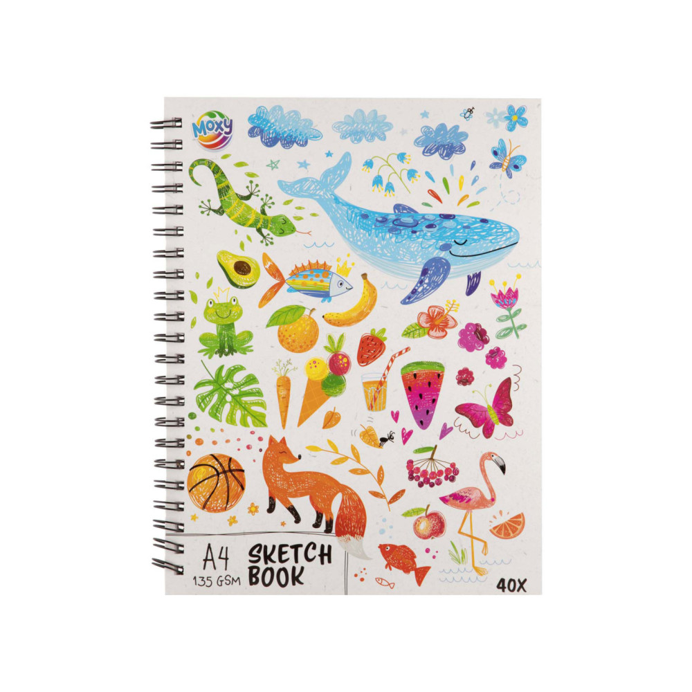 Schetsboek op A4-formaat, 40 vellen 135gsm papier. Ringgebonden.