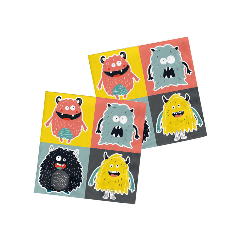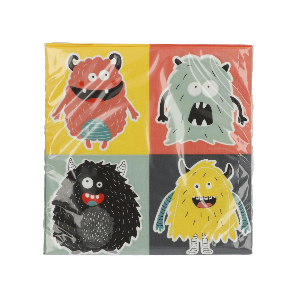Binnenkort een monsterfeestje? Deze leuke servetten met vrolijke monsterprint maken het eten op een kinderfeestje extra leuk! Deze servetten zijn gemaakt van papier, in elke verpakking zitten 20 servetten met een formaat van 33 x 33 centimeter.