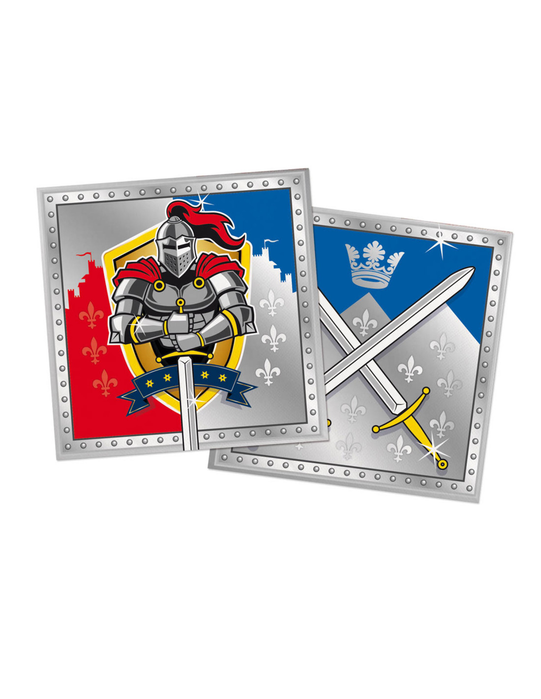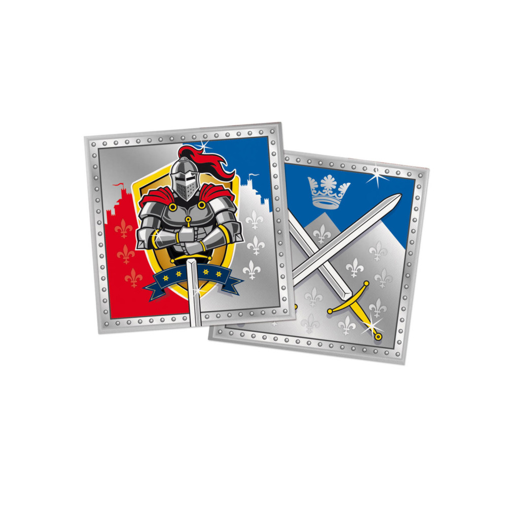 Echte stoere ridders eten met hun handen, dat hoort erbij. Maar ridders zijn ook netjes en beleefd, vieze handen horen er niet bij. Veeg je handen en je mond geheel in stijl af met deze stoere servetten. Bevat 20 3-laags servetten van 33 x 33 cm met aan beide kanten een andere opdruk.
