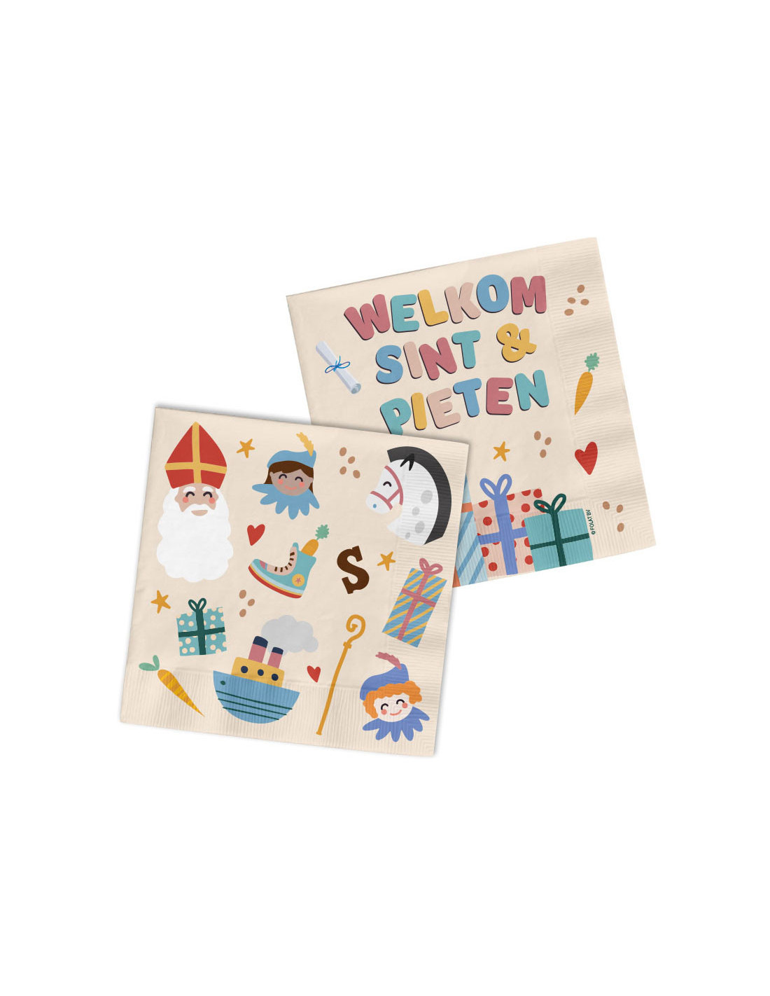 Nette snoetjes, schone handjes. Servetten 'Welkom Sint & Pieten', 12,5 x 12,5 cm, 20 stuks. Inhoud: 20 servetten.