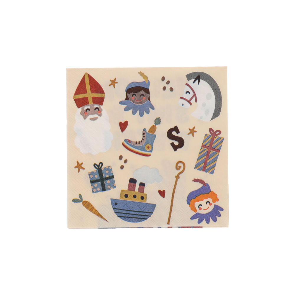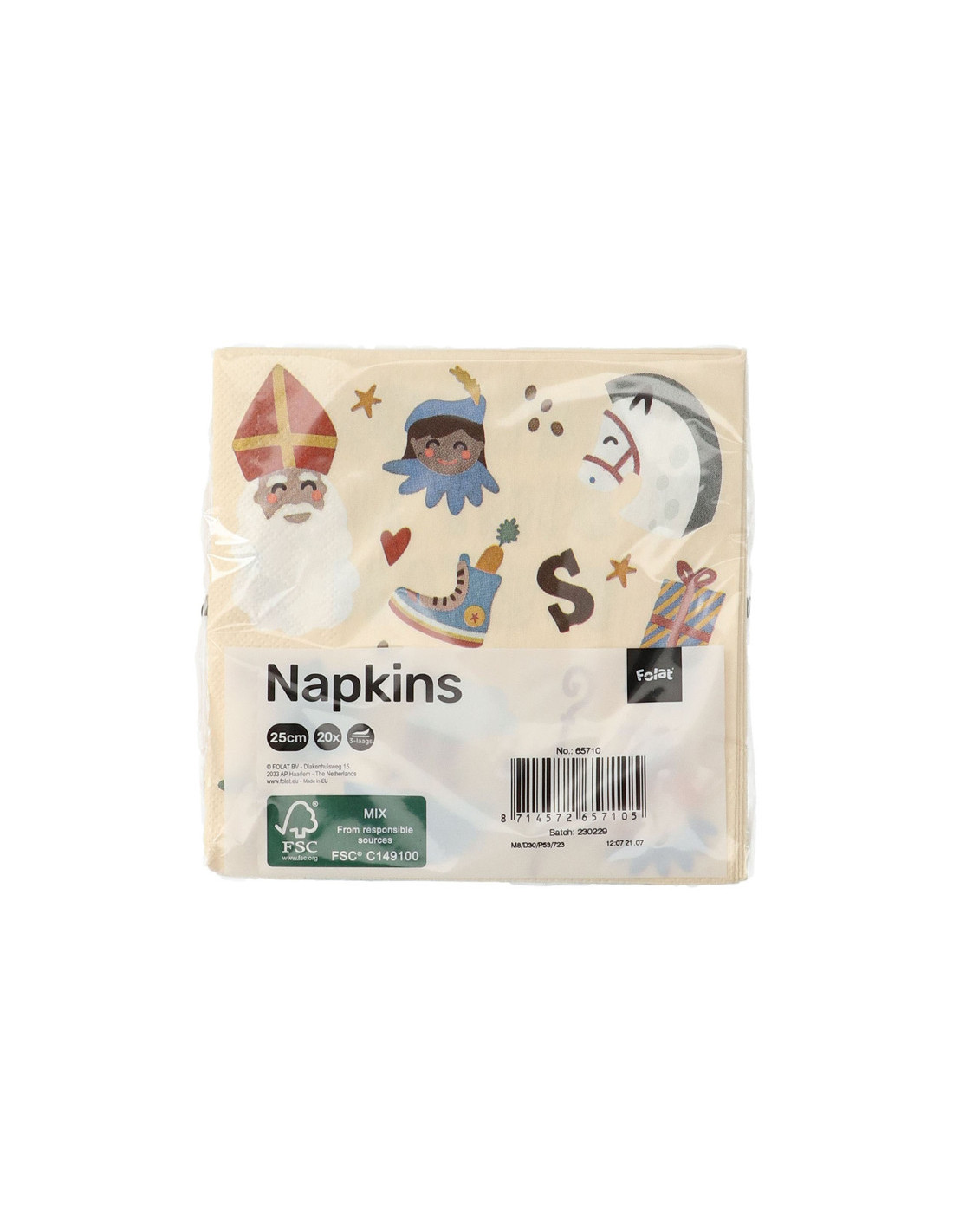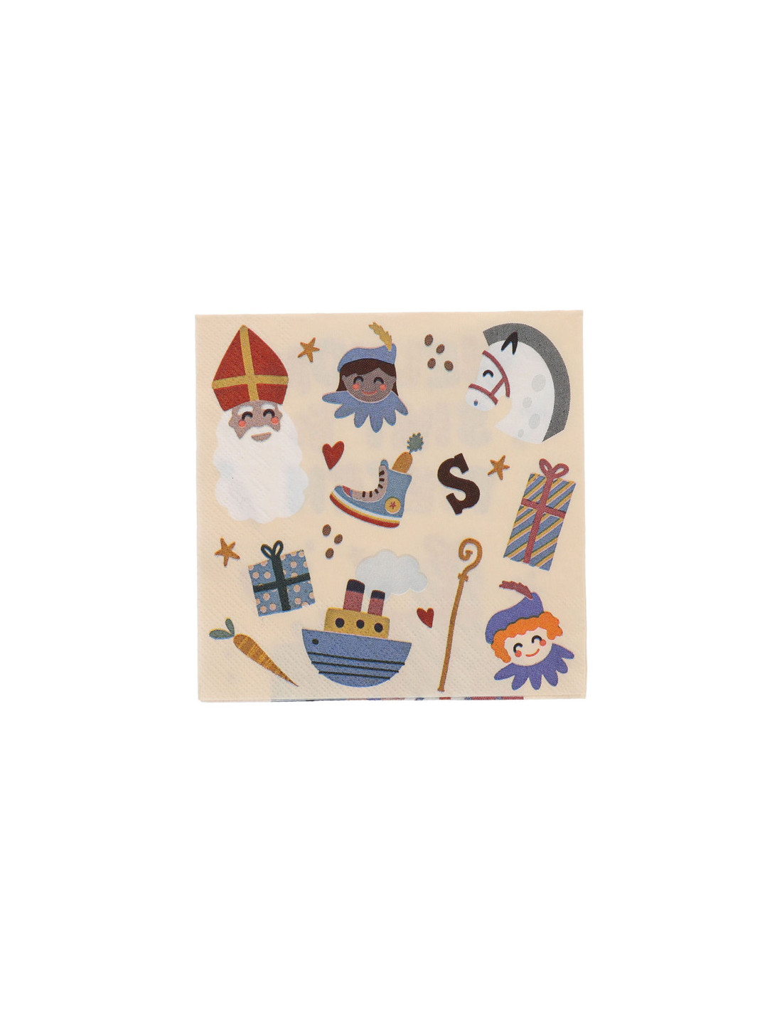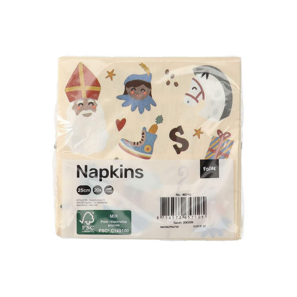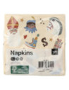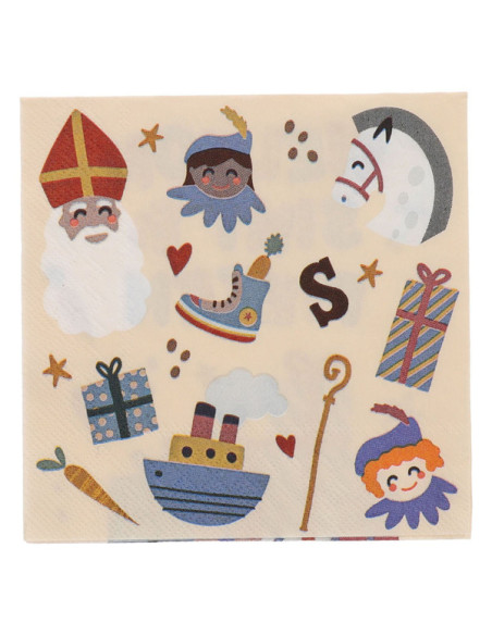 Met speciale Sinterklaasservetten wil ieder kind de mond en handen wel mee afvegen. De servetten zijn gemaakt van tissuepapier, zijn 25 x 25 cm groot en eenzijdig meerkleurig bedrukt. Dit artikel is gemaakt van papier.