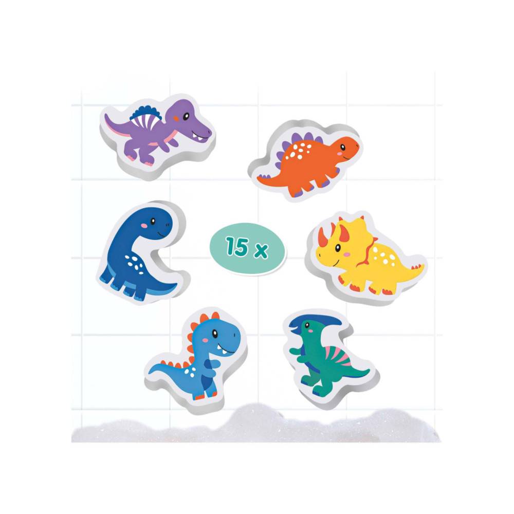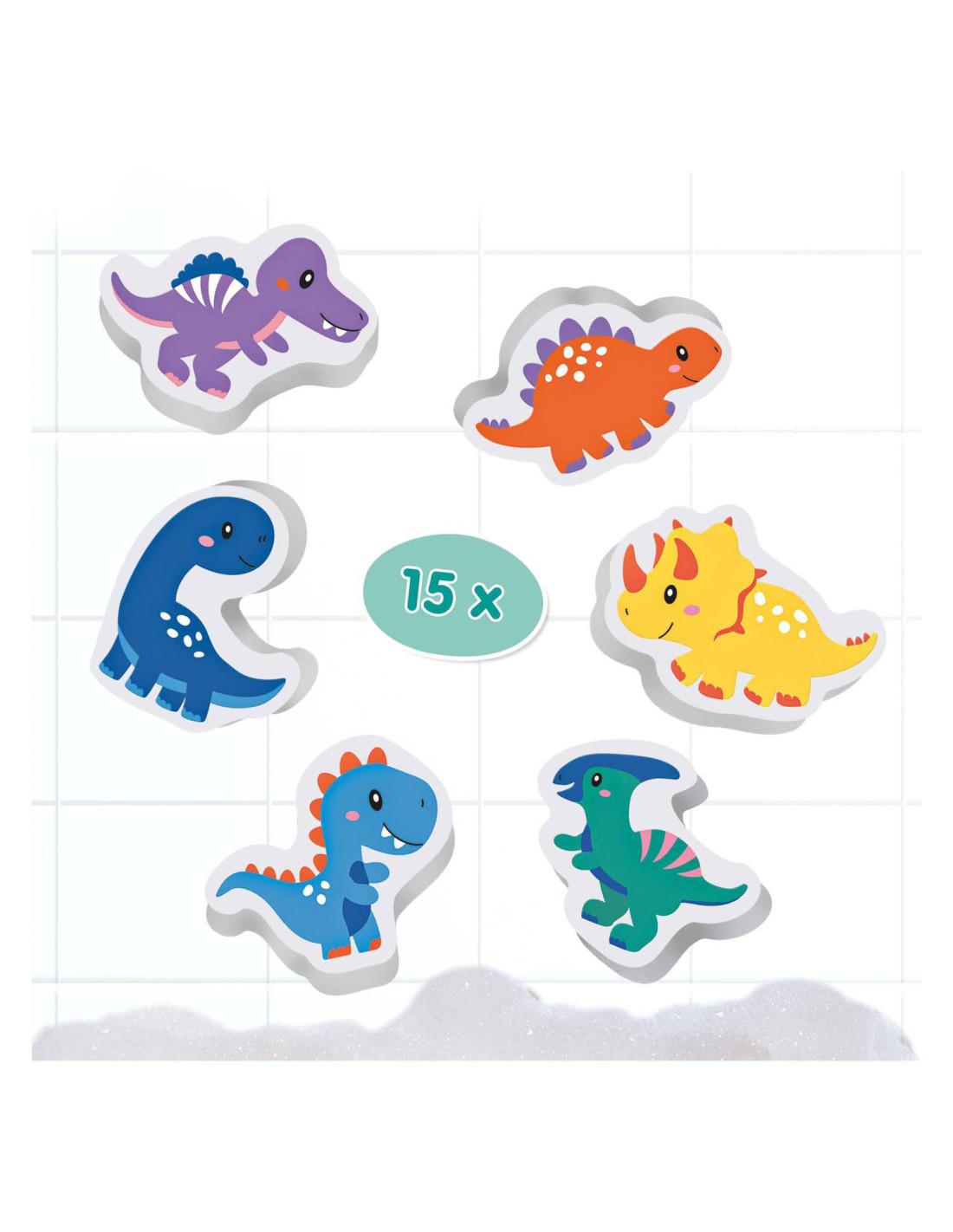 Dino Pret In Bad Met De Bad Dino's Set! Dino pret in bad! Maak je eigen dinowereld met deze 15 gekleurde foam dino's. De zachte foamfiguren blijven plakken aan de badrand of de tegels wanneer ze nat zijn, waardoor je kleintje eindeloos kan spelen en zijn of haar eigen dino-avonturen kan creëren. Perfect voor een leuke en interactieve badtijd! Inhoud van de verpakking: 15 gekleurde foam dino's Unieke Eigenschappen: Maak van badderen een feestje Trendy design en veilige materialen Stimuleert de verbeelding en motorische vaardigheden Foam dino's plakken aan natte oppervlakken Ideaal voor kinderen vanaf 12 maanden Speel en Ontdek Met Dino's In Bad Met deze set wordt elke badtijd een avontuur. De kleurrijke foam dino's stimuleren de verbeelding van je kind en maken het badderen extra leuk. Ze zijn eenvoudig schoon te maken en zorgen voor urenlang speelplezier in het water. Waarom Dit Perfect Voor Jou Is Deze set is perfect voor ouders die badtijd willen omtoveren tot een speelse en creatieve ervaring. Het biedt een veilige en leuke manier om te spelen in bad, terwijl het je kind helpt bij het ontwikkelen van motorische vaardigheden en fantasie. Begin Vandaag Nog Met Dino Pret In Bad Ontdek het plezier van badderen met de Bad Dino's set. Perfect voor eindeloos speelplezier tijdens elke badtijd!