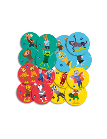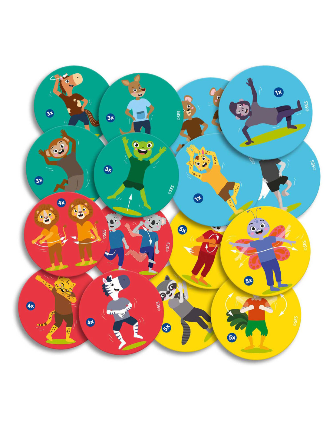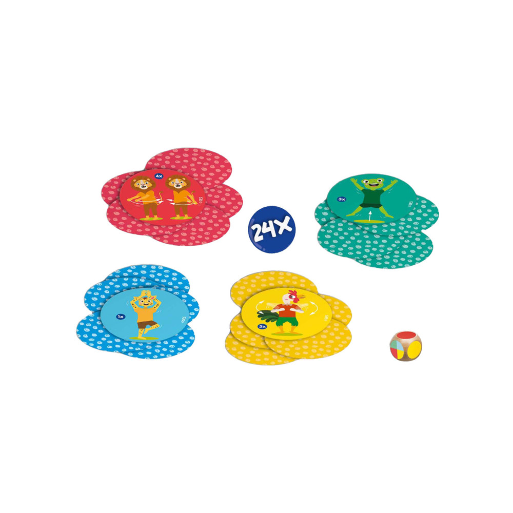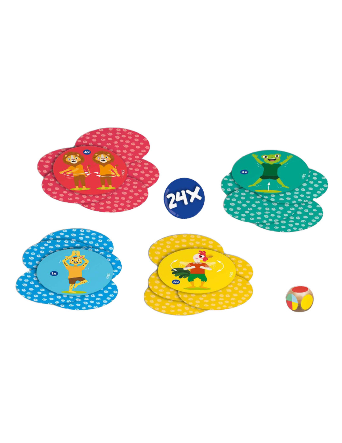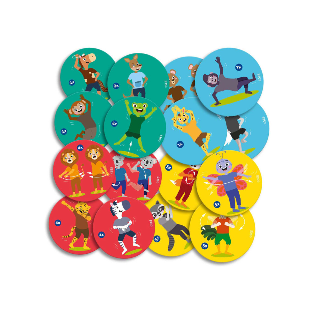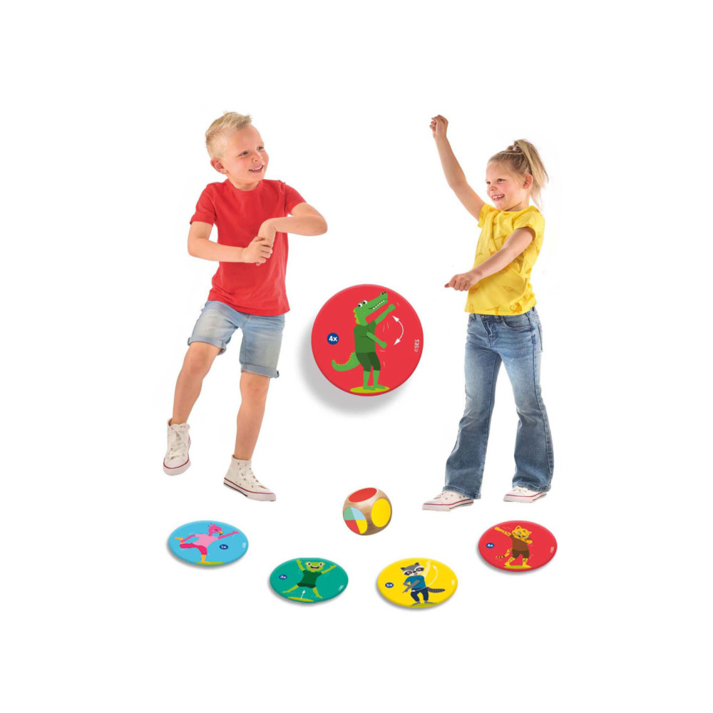 Maak je klaar om te swingen met Animal Dance Moves! Dit leuke en energieke spel brengt je 24 unieke kaarten met spannende dansbewegingen en een kleurrijke dobbelsteen om eindeloze dansroutines te creëren. Het is tijd om je verbeelding de vrije loop te laten en te dansen als je favoriete dieren!Duik in een wereld waar creativiteit en fysieke activiteit naadloos samenkomen. Dit spel is perfect om actief te blijven terwijl je veel plezier hebt. Met kaarten die zijn verdeeld in vier levendige kleurcategorieën, kun je mixen en matchen om je eigen dansen te bedenken. Gooi gewoon de kleurendobbelsteen, kies de bijbehorende kaarten, en zie hoe je unieke dansroutine tot leven komt!De set bevat 24 ronde dansbewegingkaarten en een kleurendobbelsteen. Elke kaart toont een andere door dieren geïnspireerde dansbeweging, die je aanmoedigt de acties na te bootsen en je innerlijke danser naar boven te halen. Gooi de dobbelsteen om te zien welke kleur er verschijnt, kies een kaart uit die kleurcategorie en voeg de beweging toe aan je dansreeks. Herhaal dit proces om een leuke en funky routine te creëren die helemaal van jou is.Het spelen van Animal Dance Moves gaat niet alleen om plezier. Het helpt ook bij het verbeteren van de coördinatie, stimuleert fysieke activiteit en prikkelt je creativiteit. Bovendien is het een fantastische manier om tijd door te brengen met vrienden of familie, samen te lachen en te dansen terwijl je hilarische en vermakelijke routines bedenkt.Klaar om te dansen? Pak je Animal Dance Moves kaarten, gooi de dobbelsteen en begin je eigen wilde danssequenties te creëren. Het is tijd om te bewegen, swingen en je dansvloerfantasie de vrije loop te laten!