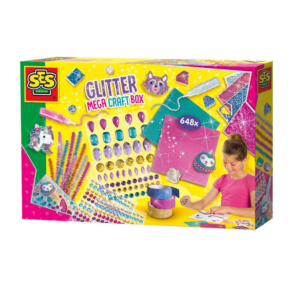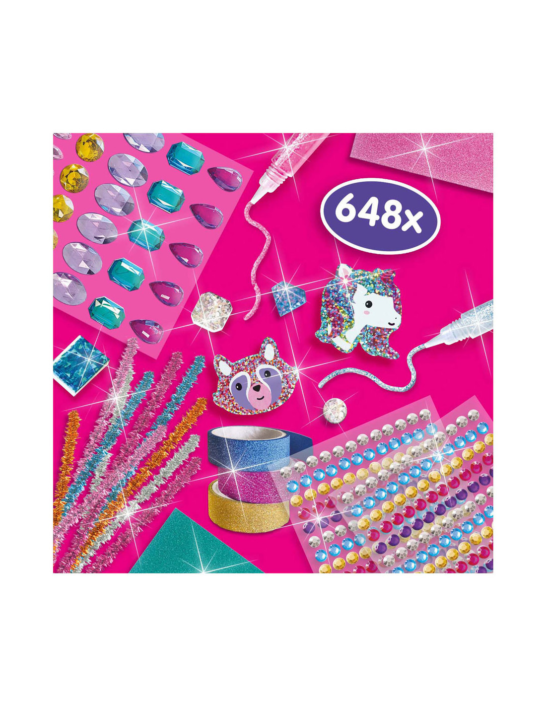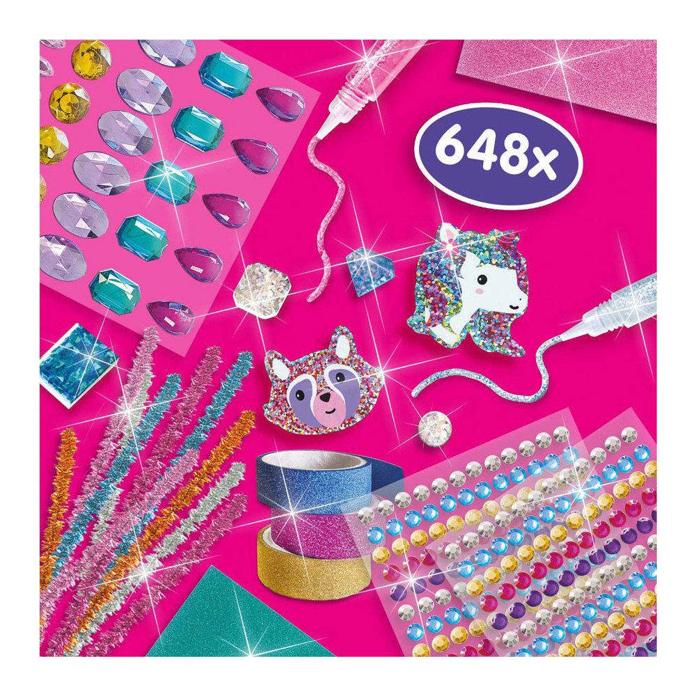 Laat je creativiteit sprankelen met de Glitter mega knutselbox! Versier en maak de mooiste knutselwerken met deze uitgebreide decoratie set. Versier je tekeningen, (school) spulletjes en nog veel meer met de XL diamant stenen, glitter stickers, ronde diamantjes, glitterlijm, foam stickers, glitter decoratie tape of chenille. Een schitterende set om je creativiteit te stimuleren en de mooiste creaties te maken. Perfect voor kinderen die dol zijn op knutselen en glitter!