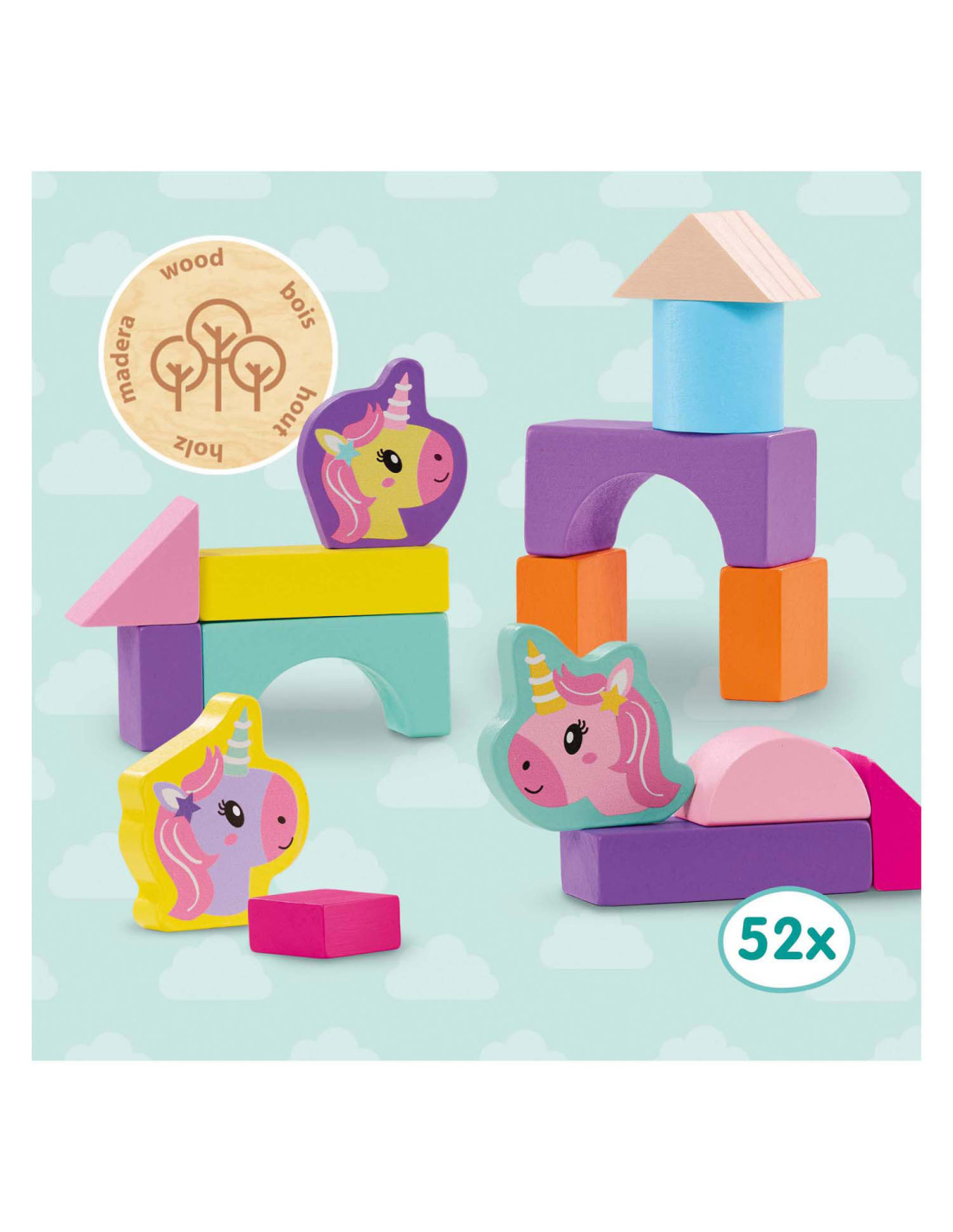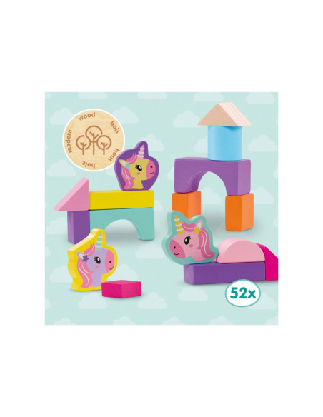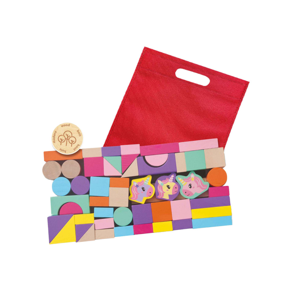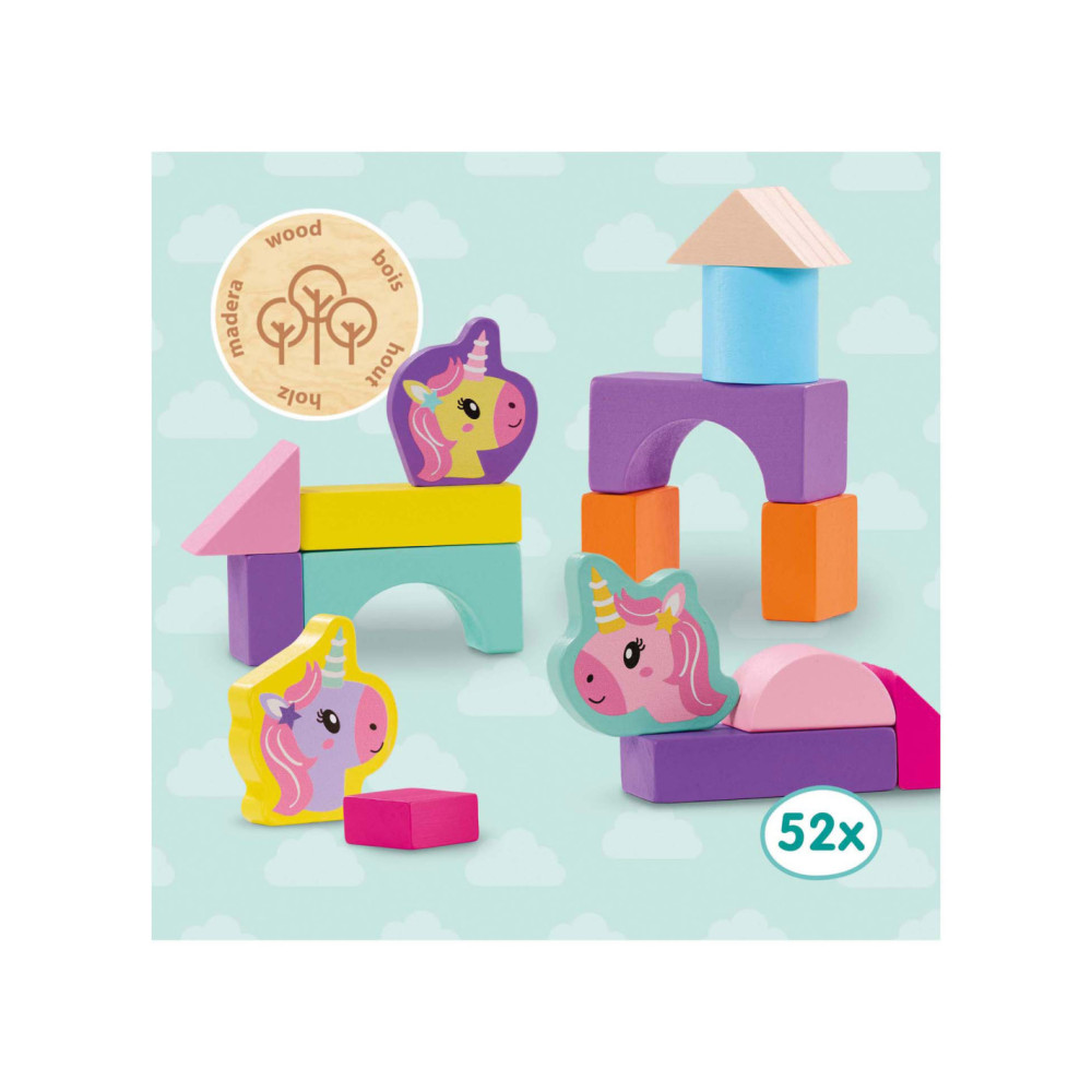 Laat je kleintje bouwen en fantaseren met de Houten bouwblokken unicorn! Deze 52-delige blokkendoos bestaat uit houten blokken in mooie, moderne kleuren, waaronder 3 bedrukte unicorn vormen. Deze set biedt urenlang speelplezier en stimuleert het ruimtelijk inzicht en de motorische vaardigheden. Na het spelen kunnen de blokken eenvoudig worden opgeborgen in de handige bewaartas. Perfect voor kinderen die houden van bouwen en eenhoorns!