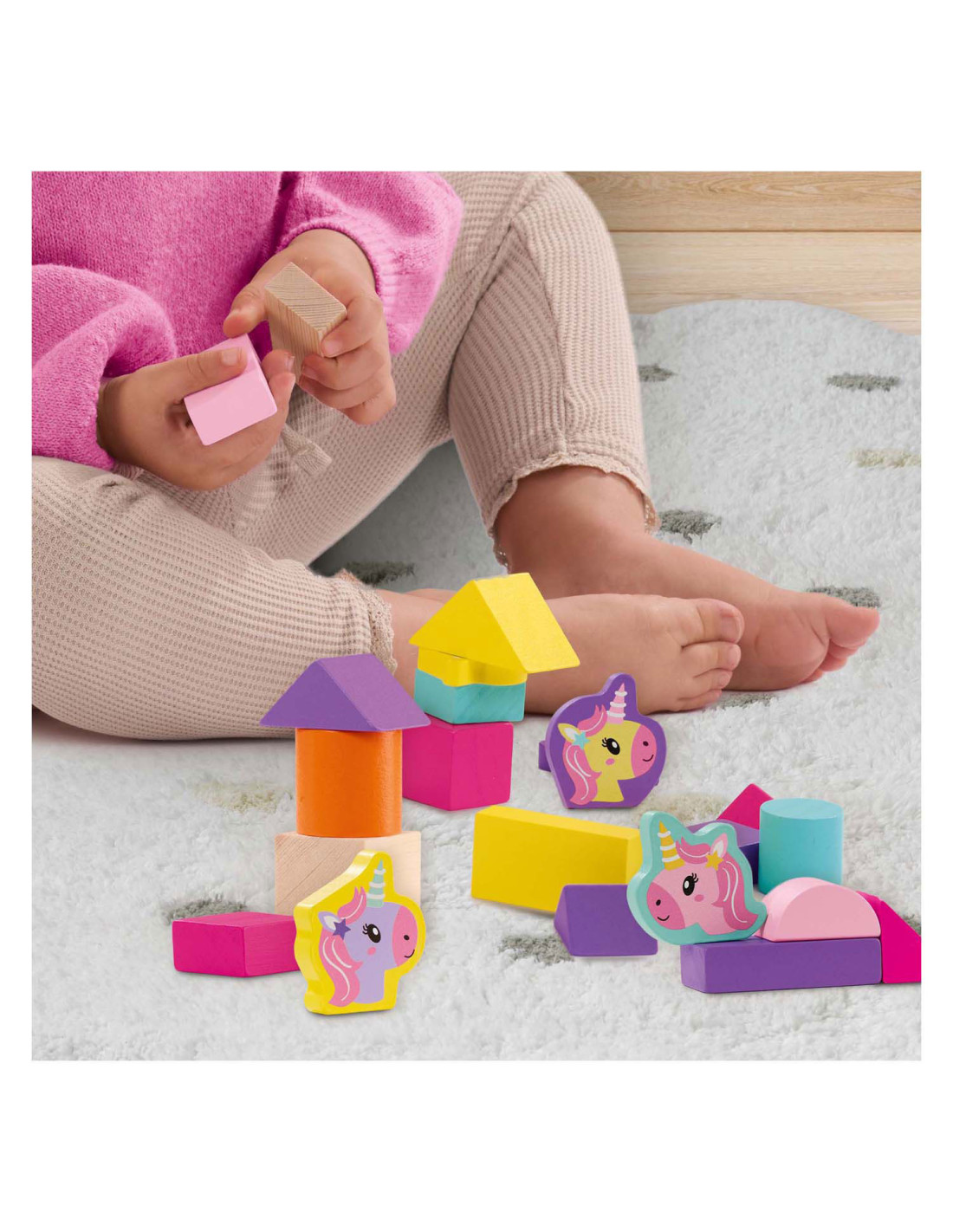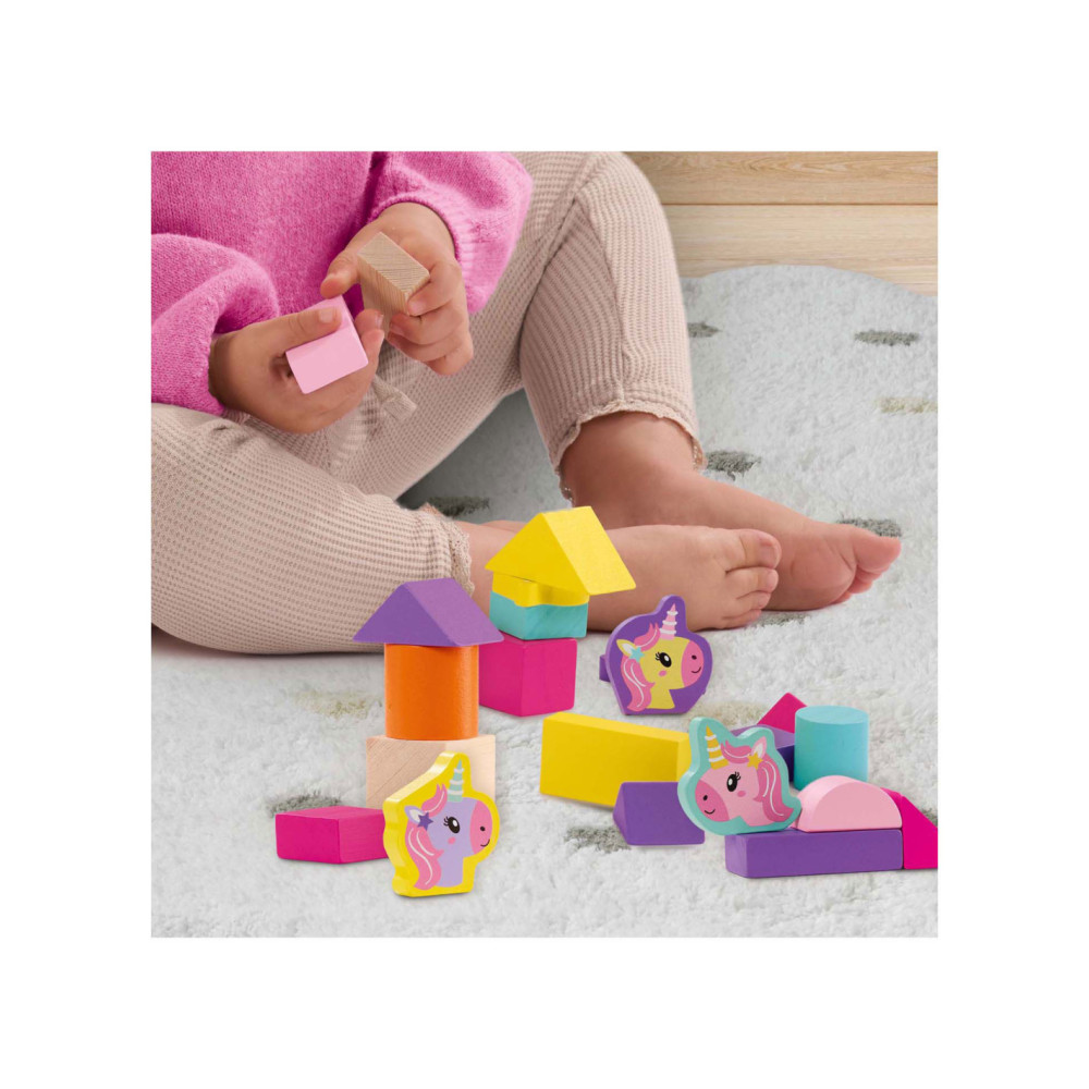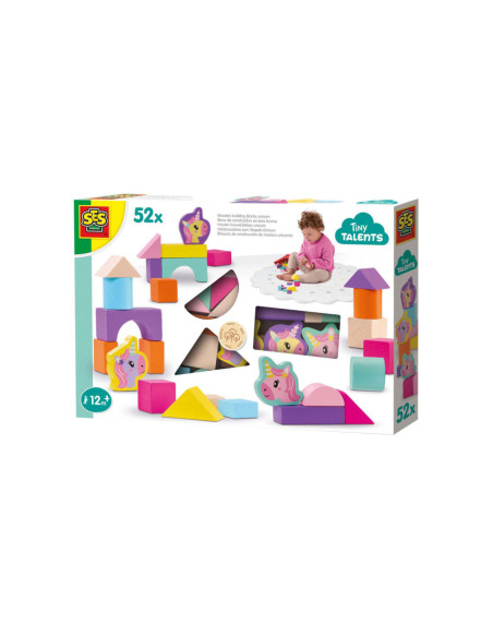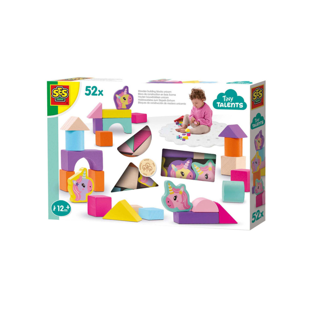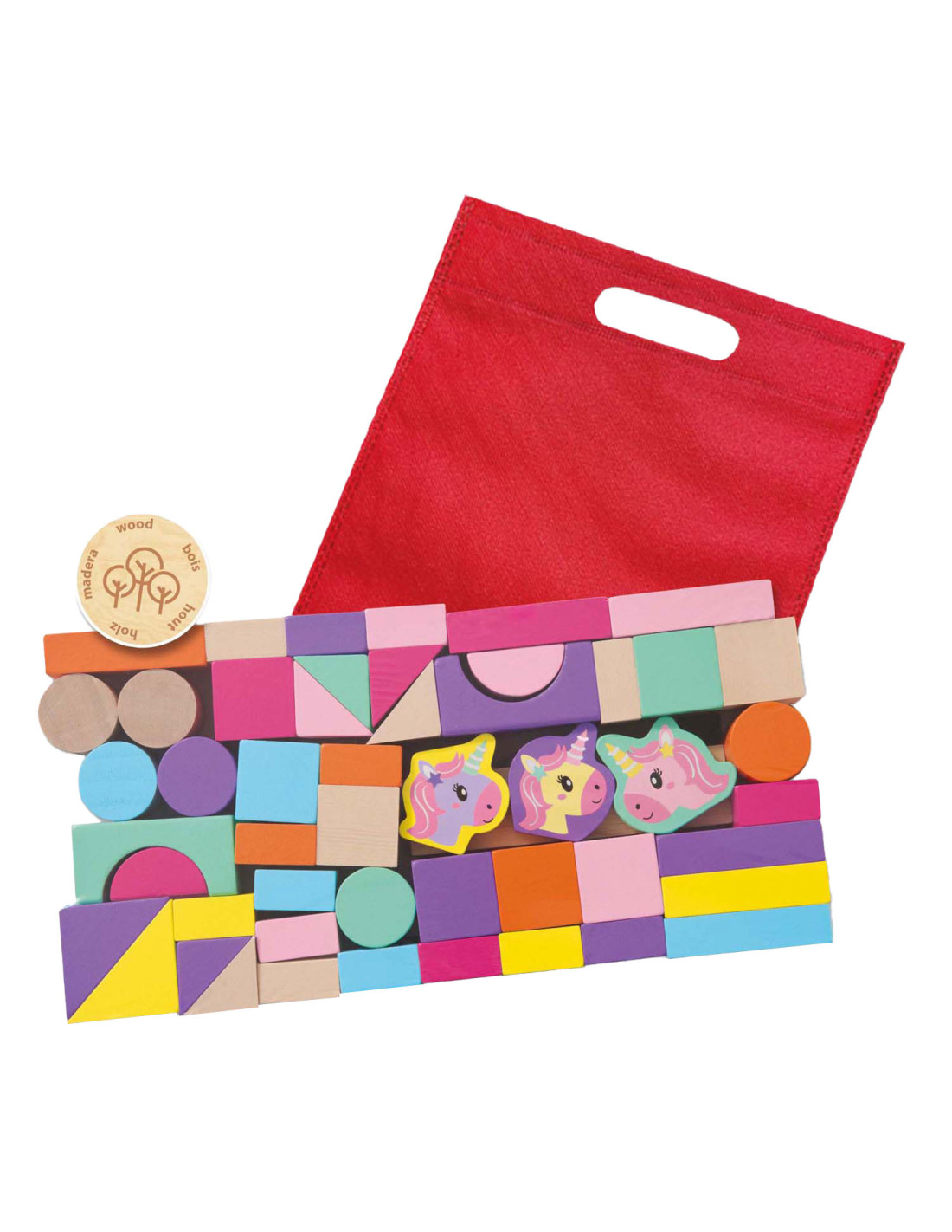 Laat je kleintje bouwen en fantaseren met de Houten bouwblokken unicorn! Deze 52-delige blokkendoos bestaat uit houten blokken in mooie, moderne kleuren, waaronder 3 bedrukte unicorn vormen. Deze set biedt urenlang speelplezier en stimuleert het ruimtelijk inzicht en de motorische vaardigheden. Na het spelen kunnen de blokken eenvoudig worden opgeborgen in de handige bewaartas. Perfect voor kinderen die houden van bouwen en eenhoorns!