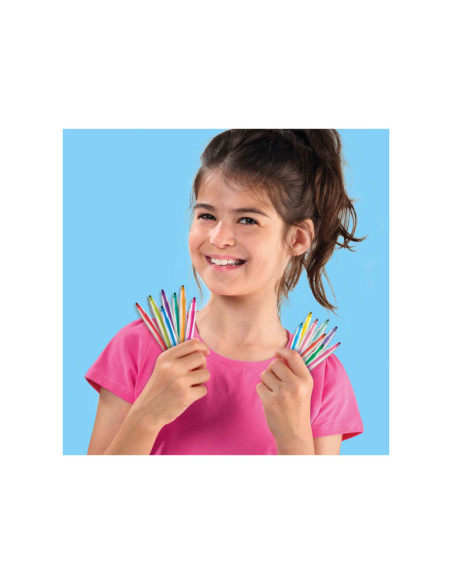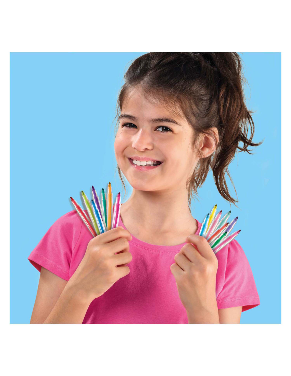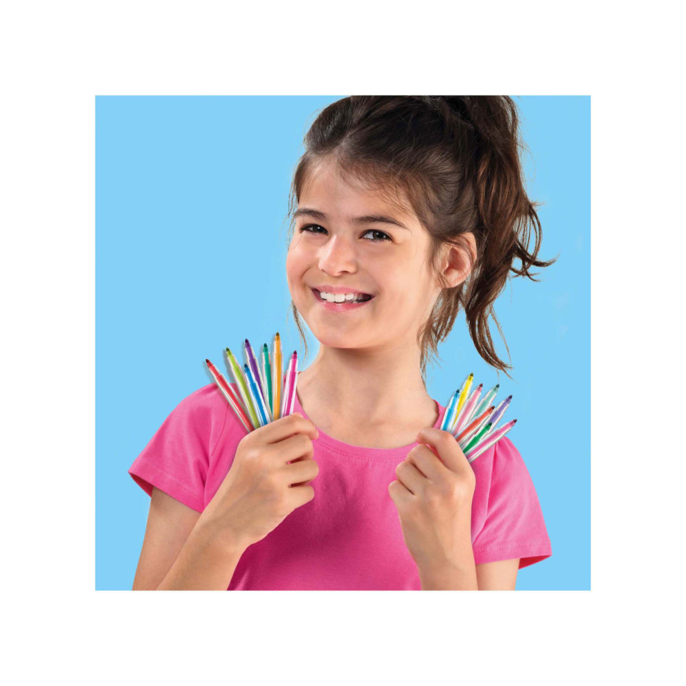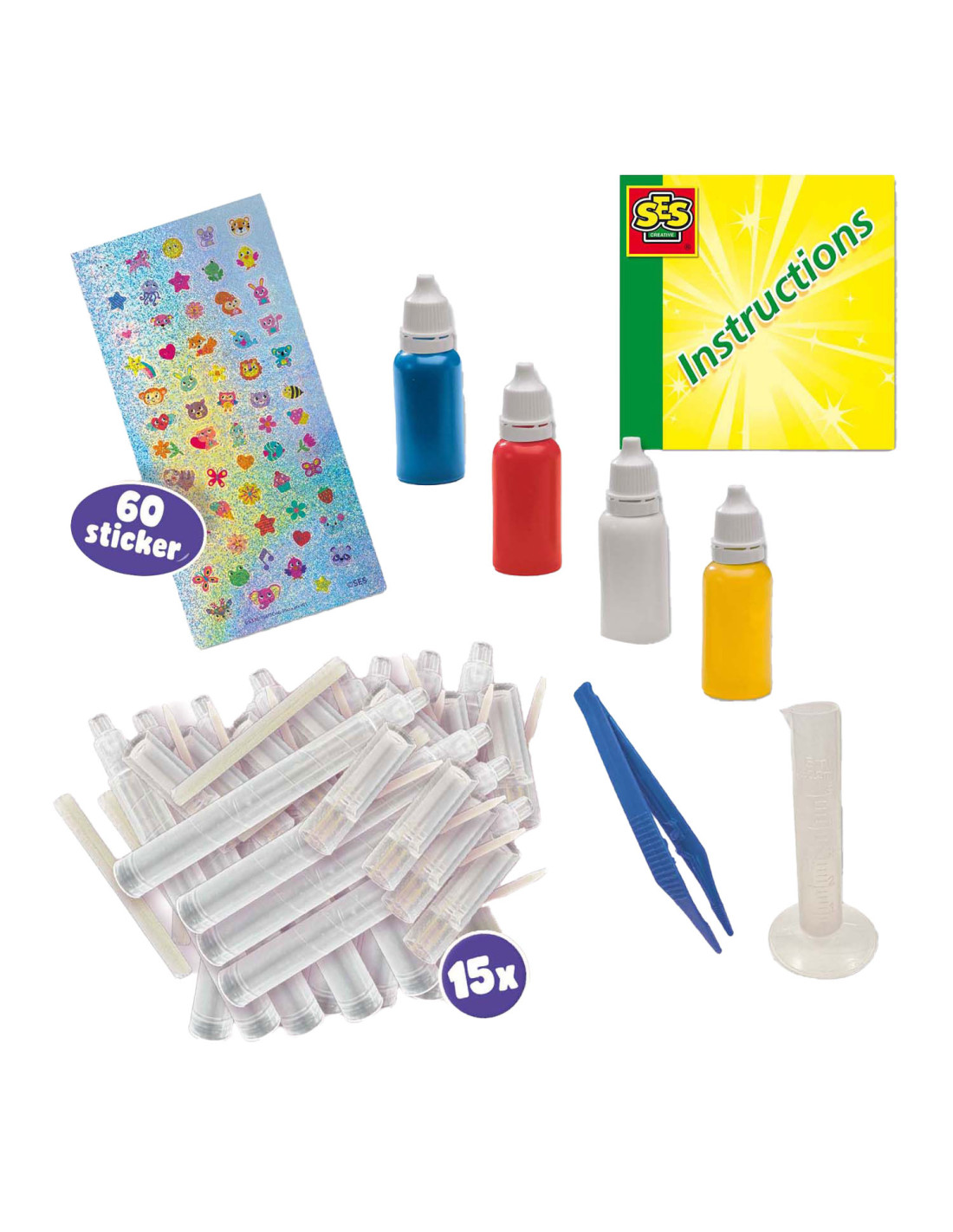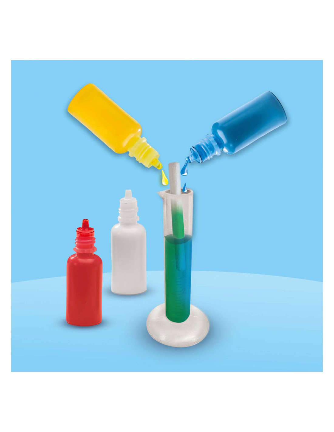 Maak nu zelf je 15 unieke kleuren viltstiften met het Viltstiften lab! Houd je van experimenteren? Ga dan aan de slag met de vier kleuren goed uitwasbare inkt en duidelijke menginstructies om 15 verschillende kleuren en tinten te maken voor je eigen viltstiften. Gebruik het pincet om precies te werk te gaan en plaats de filters in de mengbeker om de inkt te absorberen. Zet de stiften vervolgens in elkaar en versier ze met de 60 vrolijke glitterstickers. Perfect voor kinderen die graag experimenteren, kleuren en personaliseren!