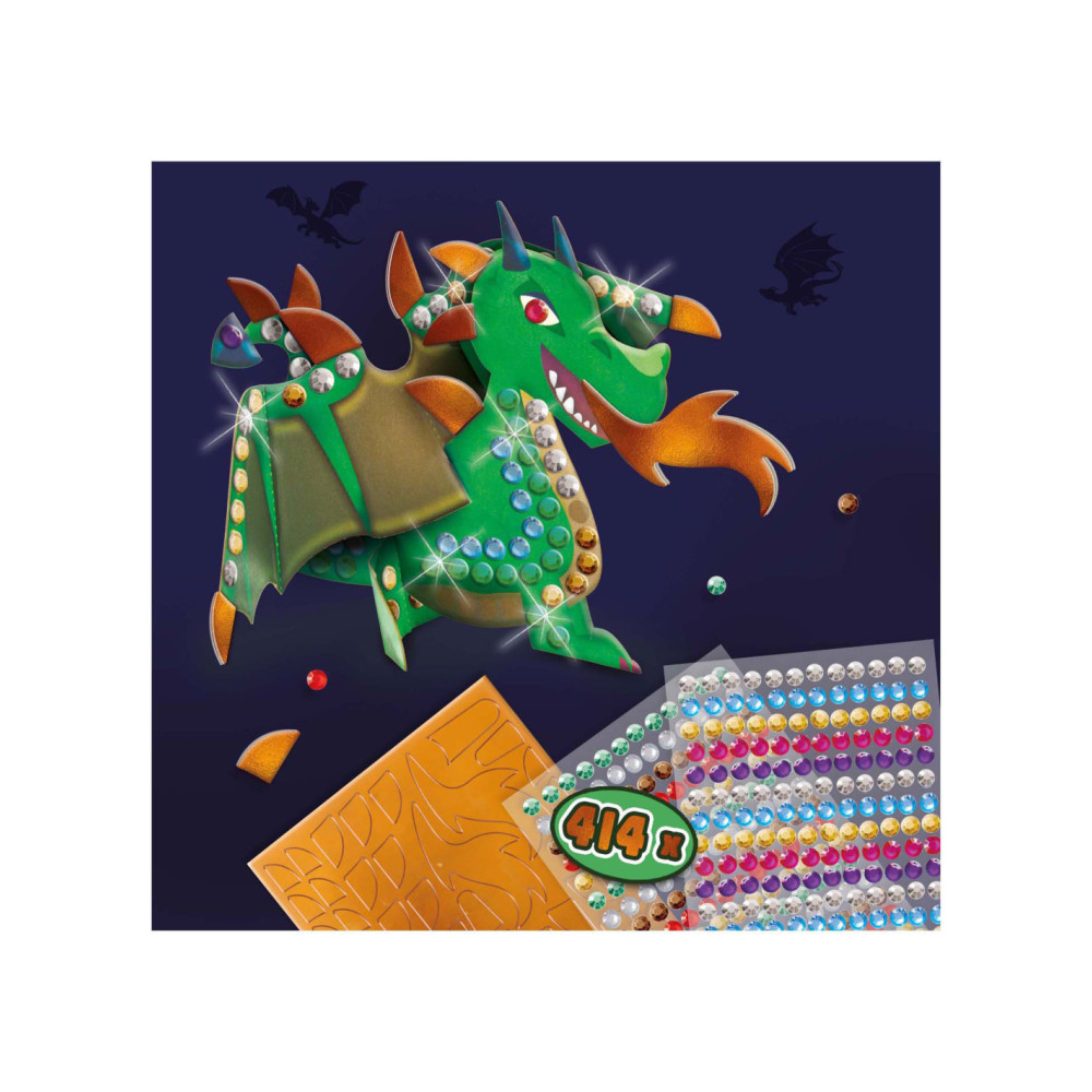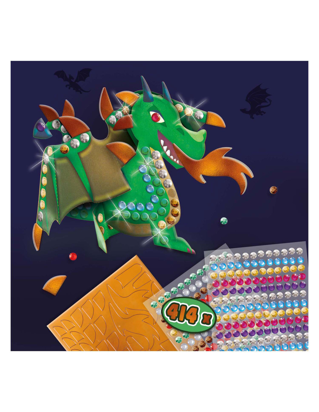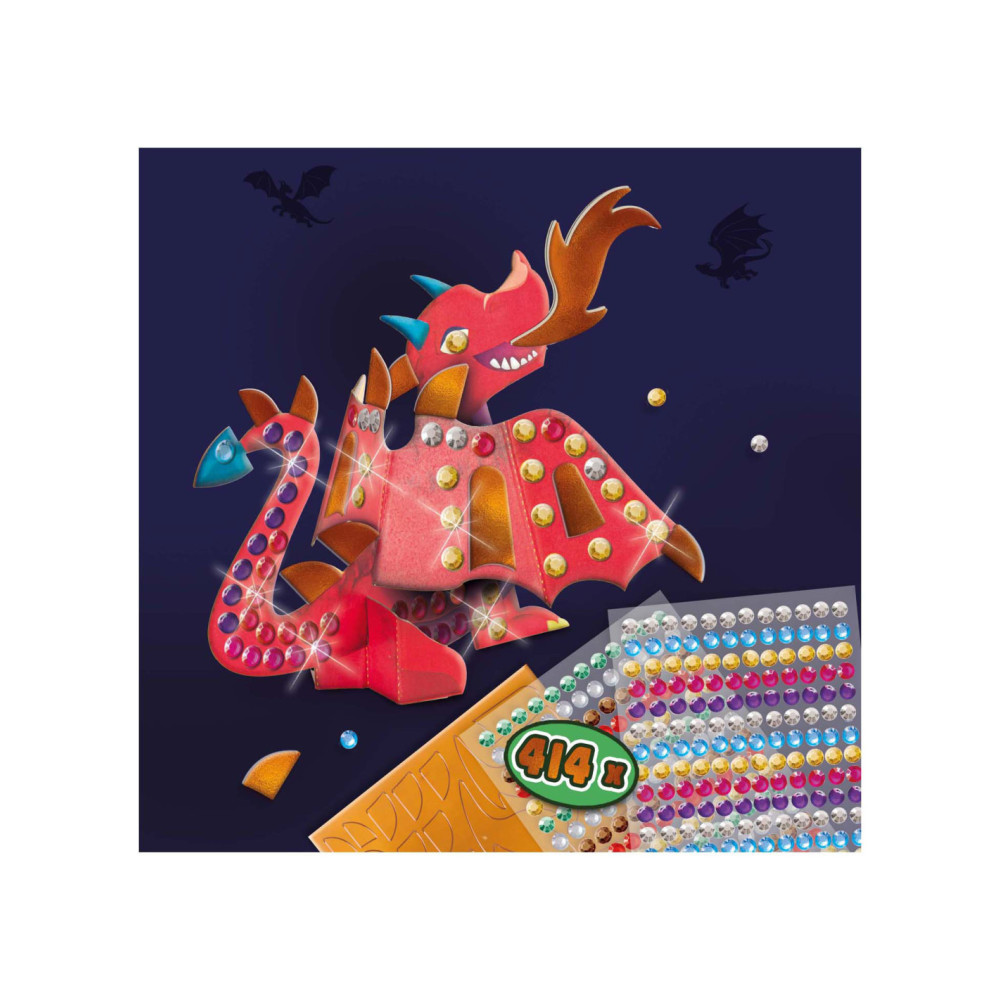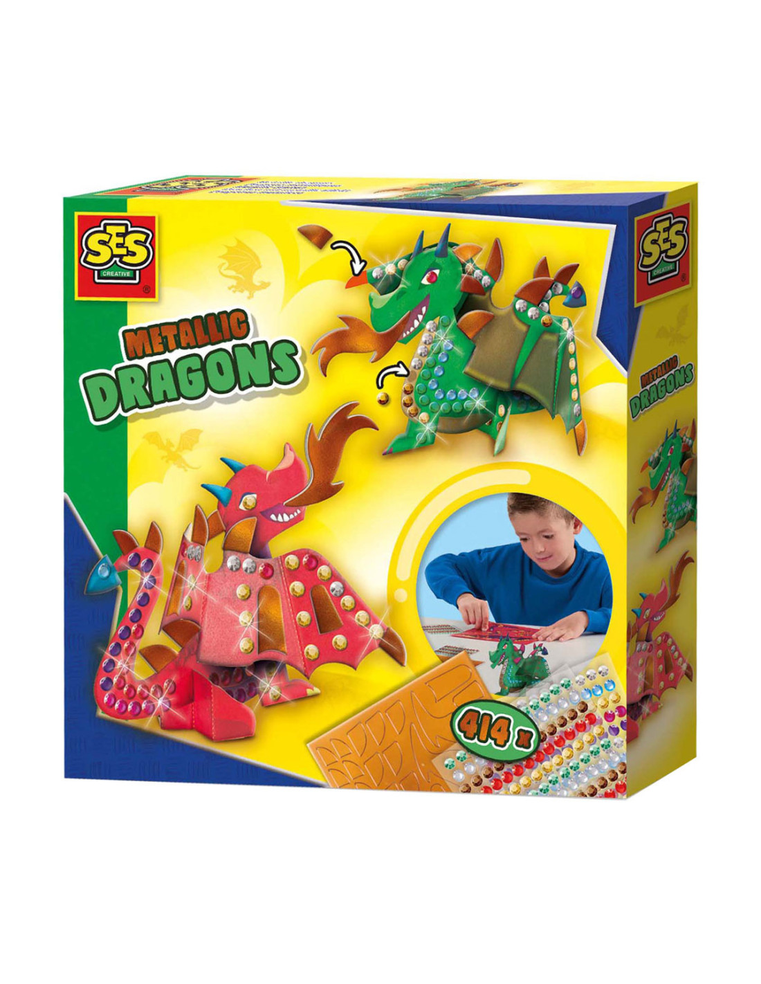 Beleef knutselplezier met de Metallic draken! Zet de papieren constructie onderdelen van de twee draken in elkaar en zie twee gekleurde draken ontstaan.De set bevat in totaal 414 glanzende stickers om de draken te versieren. 54 stoere, oranje metallic foam plakkers voor schubben, stekels en vlammen en 54 ronde diamant stickers, voor een schitterend resultaat.Perfect voor kinderen die houden van knutselen en draken!