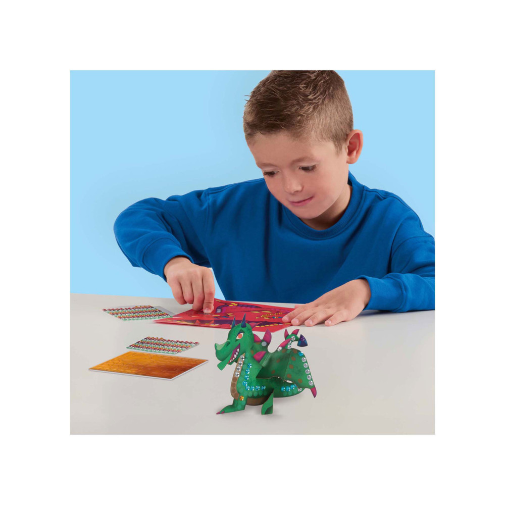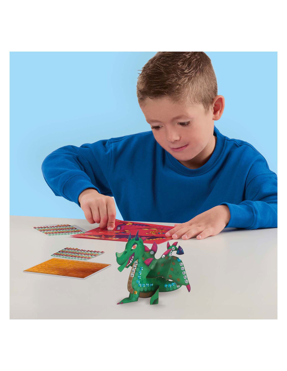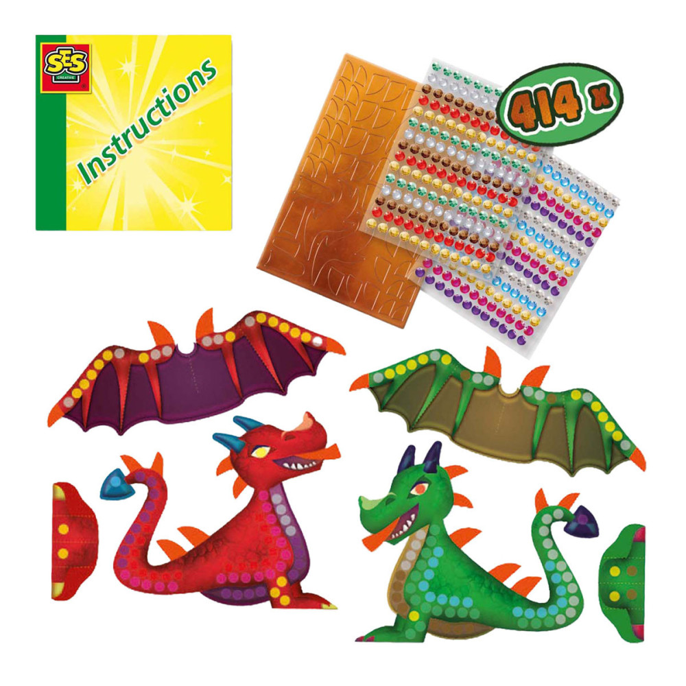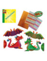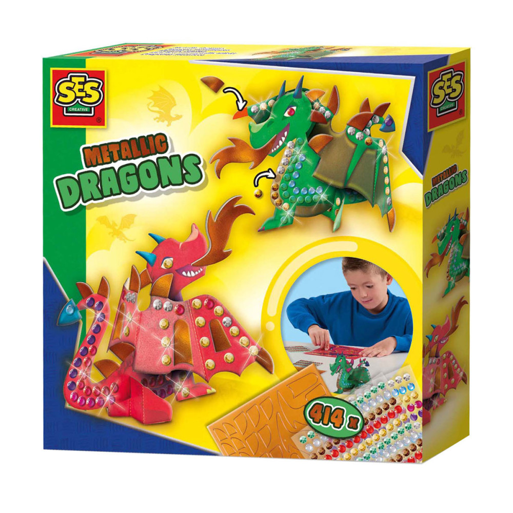 Beleef knutselplezier met de Metallic draken! Zet de papieren constructie onderdelen van de twee draken in elkaar en zie twee gekleurde draken ontstaan.De set bevat in totaal 414 glanzende stickers om de draken te versieren. 54 stoere, oranje metallic foam plakkers voor schubben, stekels en vlammen en 54 ronde diamant stickers, voor een schitterend resultaat.Perfect voor kinderen die houden van knutselen en draken!