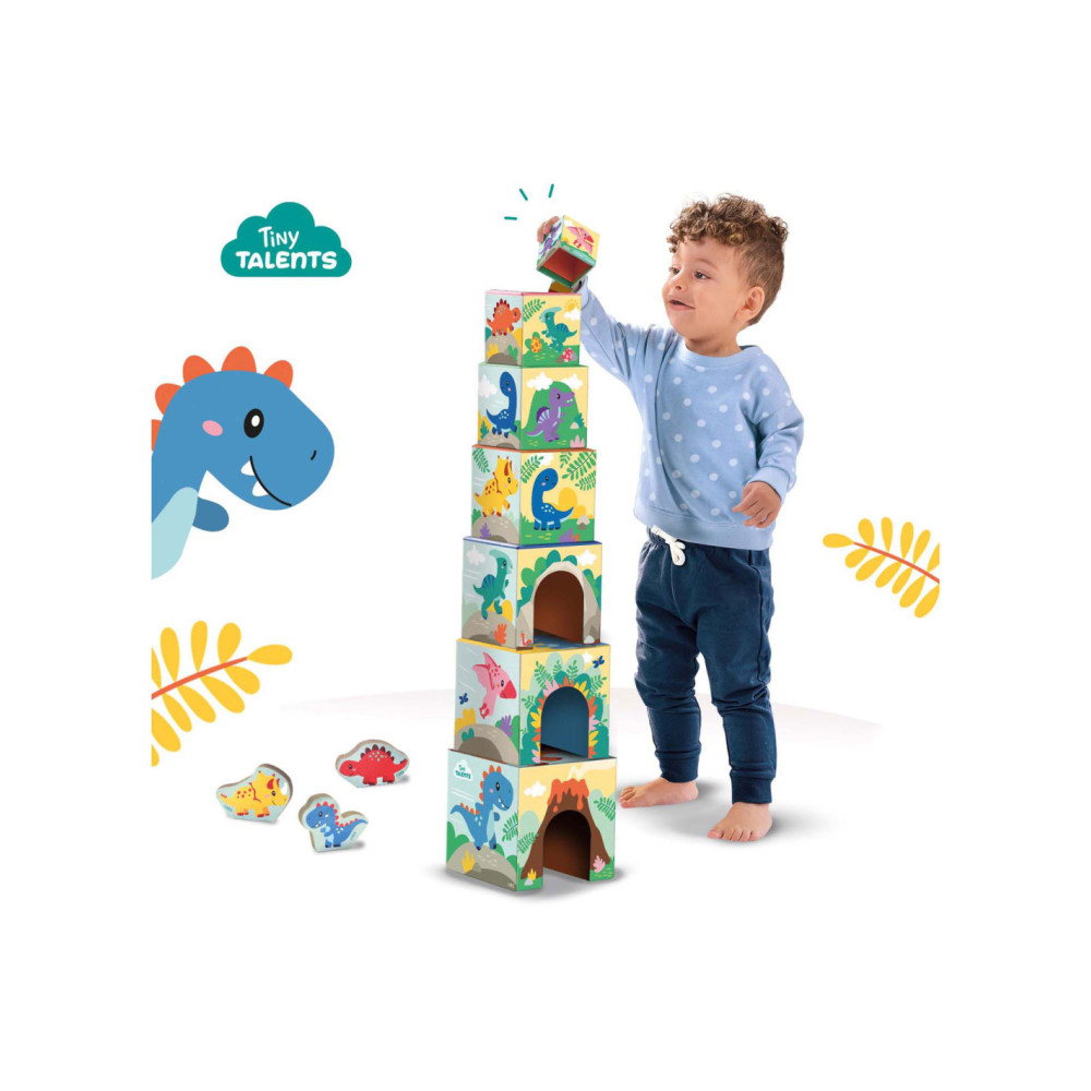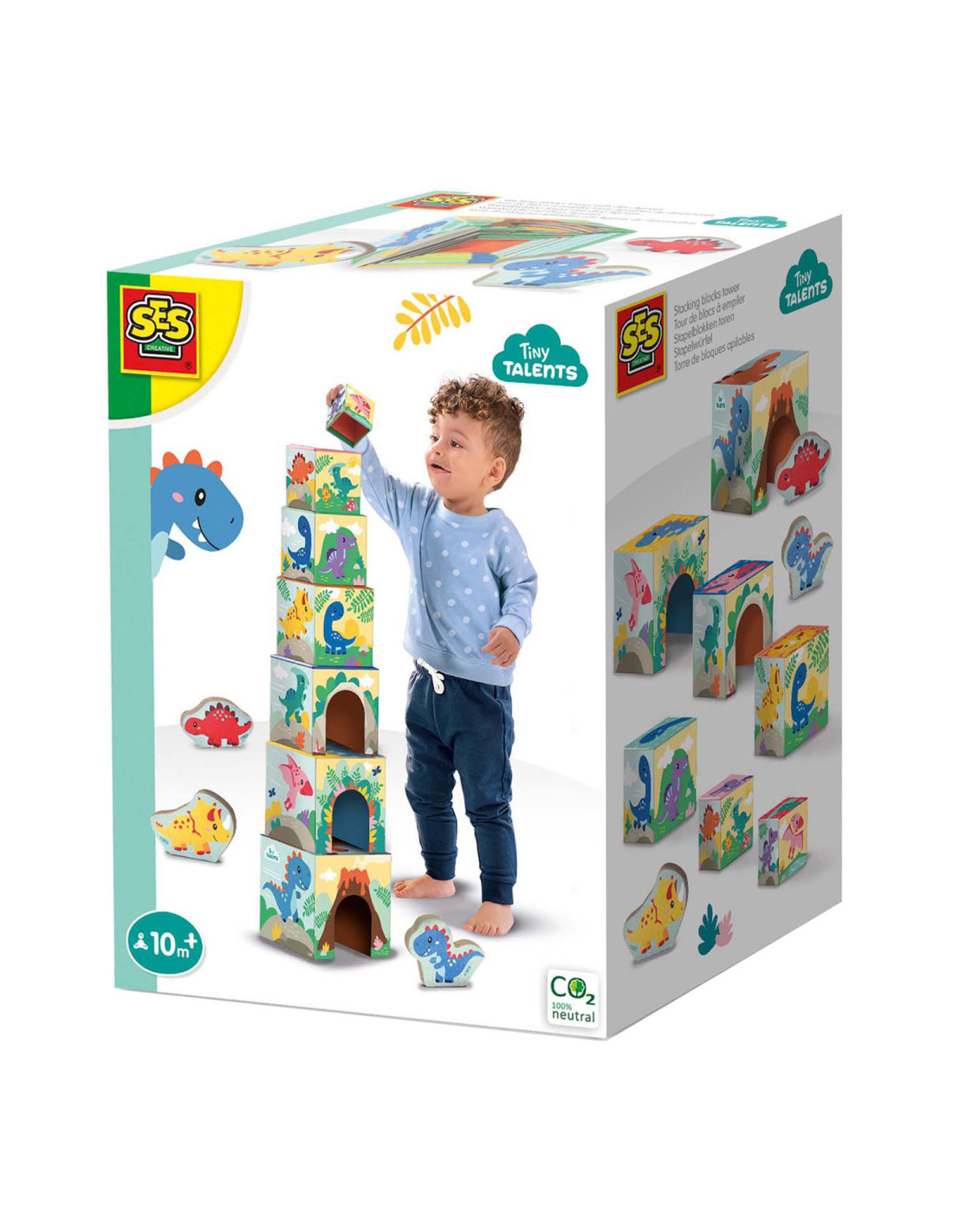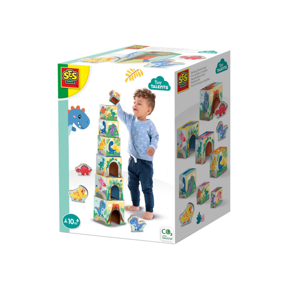 Stapel en Speel Met Dino Stapelblokken! Stapelblokken zijn een klassiek speelgoed dat nooit verveelt! Met deze dino stapelblok toren van SES Creative kan je kleintje eindeloos stapelen, bouwen en ontdekken. De blokken hebben verschillende afmetingen en op elke zijde is iets nieuws te ontdekken: kleuren, cijfers en natuurlijk stoere dinofiguren. Perfect voor het ontwikkelen van motorische vaardigheden en het stimuleren van nieuwsgierigheid! Inhoud van de verpakking: 7 open stapelblokken in oplopende afmetingen 4 dinofiguren Unieke Eigenschappen: Elke zijde van de blokken heeft een verschillend thema Inclusief stoere dinofiguren om mee te spelen Stimuleert motorische vaardigheden en cognitieve ontwikkeling Duurzaam en veilig materiaal Perfect voor kinderen vanaf 10 maanden Bouw en Ontdek Met Stapelblokken Met deze set kan je kind niet alleen torens bouwen, maar ook de kleurrijke afbeeldingen en thema's op de blokken ontdekken. De dinofiguren voegen een extra speels element toe, waardoor er eindeloos veel speel- en leermogelijkheden zijn. Ideaal voor nieuwsgierige ontdekkers die van bouwen en spelen houden. Waarom Dit Perfect Voor Jou Is Deze set is ideaal voor ouders die hun kinderen willen helpen bij het ontwikkelen van motorische vaardigheden en cognitieve groei. Het biedt een leuke en educatieve manier om te spelen en leren, terwijl het je kind stimuleert om actief te ontdekken en te bouwen. Begin Vandaag Nog Met Stapelen en Spelen Ontdek het plezier van bouwen, stapelen en spelen met deze dino stapelblok toren. Perfect voor urenlang leer- en speelplezier voor je kleintje!