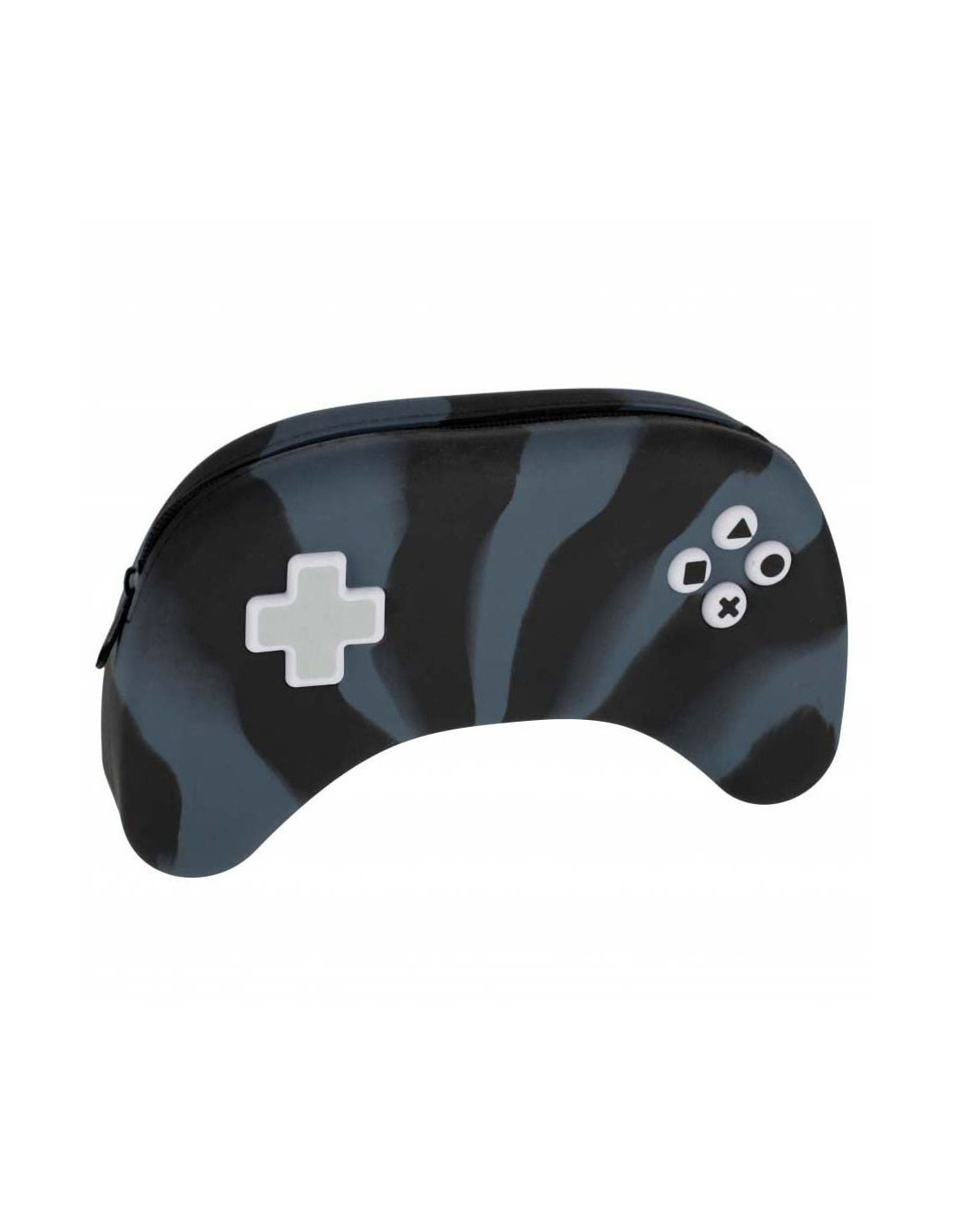 Siliconen schooletui in de vorm van een gamecontroller, 5 x 22 x 13 cm groot.