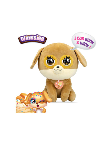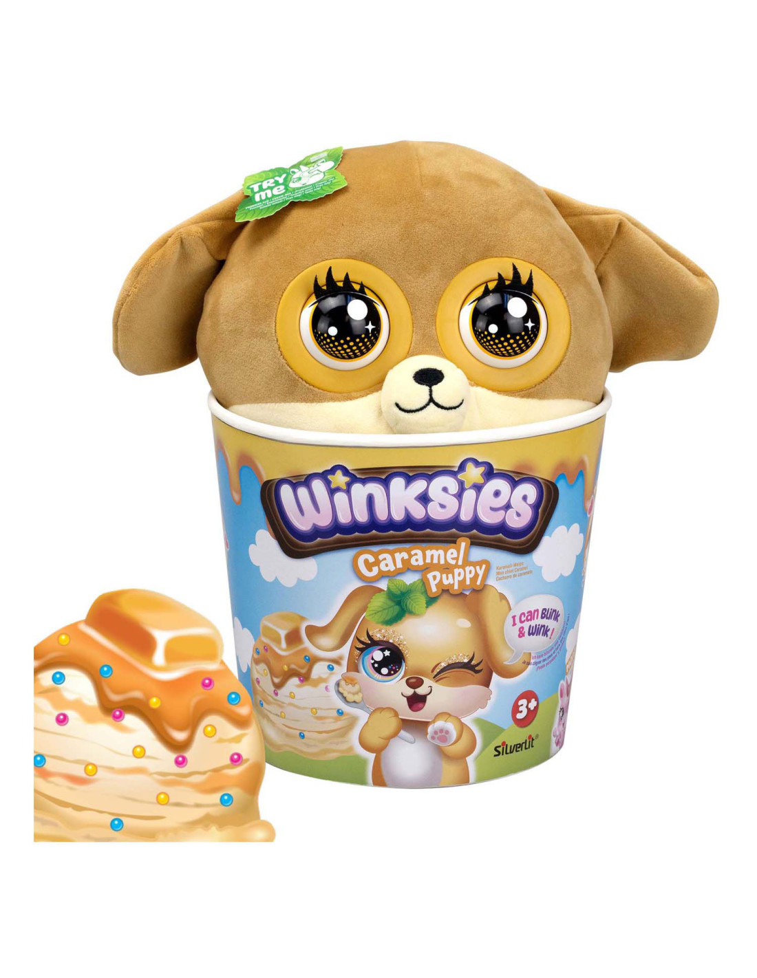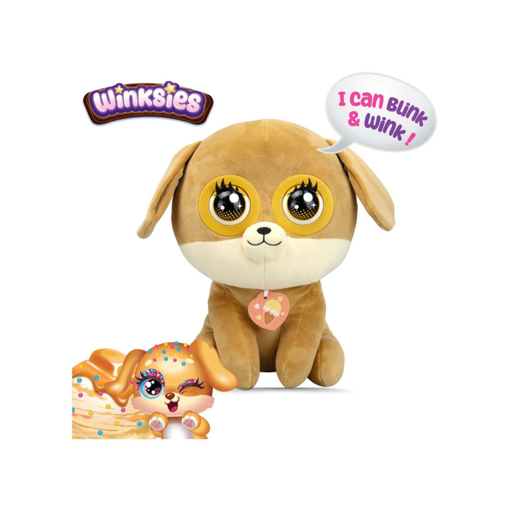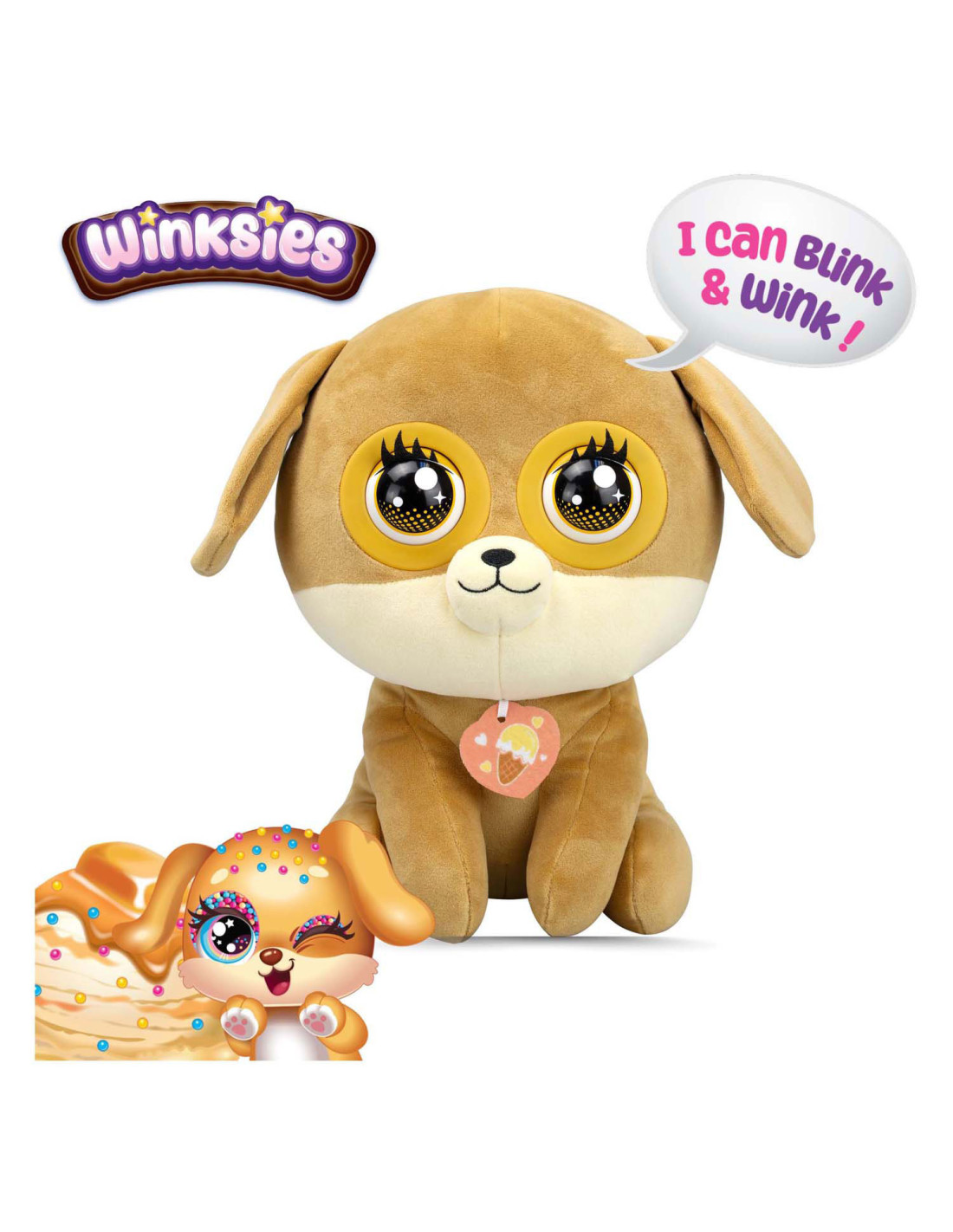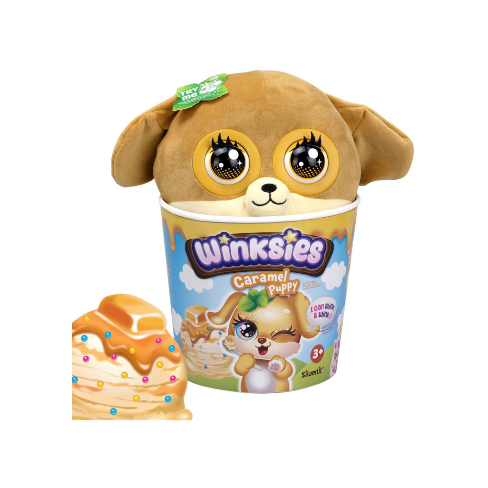 De Winksies zijn superschattige en knuffelbare knuffeldieren met elektronische functies. Ze zitten verstopt in een grote, vrolijke ijsbeker en ze wachten op jou om unboxed te worden! Knuffel en aai je Winksies en hun ogen zullen knipperen of ze zullen naar je knipogen! De Winksies hebben vrolijke gezichten en zijn voorzien van vrolijke geluidseffecten en muziek. Aai zachtjes over hun hoofd en hun ogen zullen knipperen. Zet de Winksies in hun ijsbeker en zet ze op een mooie plek in je kamer. Er zijn 4 verschillende knuffeldieren om te verzamelen: Strawberry Unicorn, Caramel Puppy, Cookie Panda en Blueberry Kitty. In deze grote ijsbeker vind je e schattige, bruine Caramel Puppy. Zijn grote ogen zullen naar je knipperen en knipogen en hij is gemaakt van zacht, knuffelbaar pluche om heerlijk mee te knuffelen! Afmeting knuffel: 20x17x30 cm (lxbxh). Batterij informatie: 3 x AA batterijen (meegeleverd). Leeftijdsindicatie: 3+ jaar.