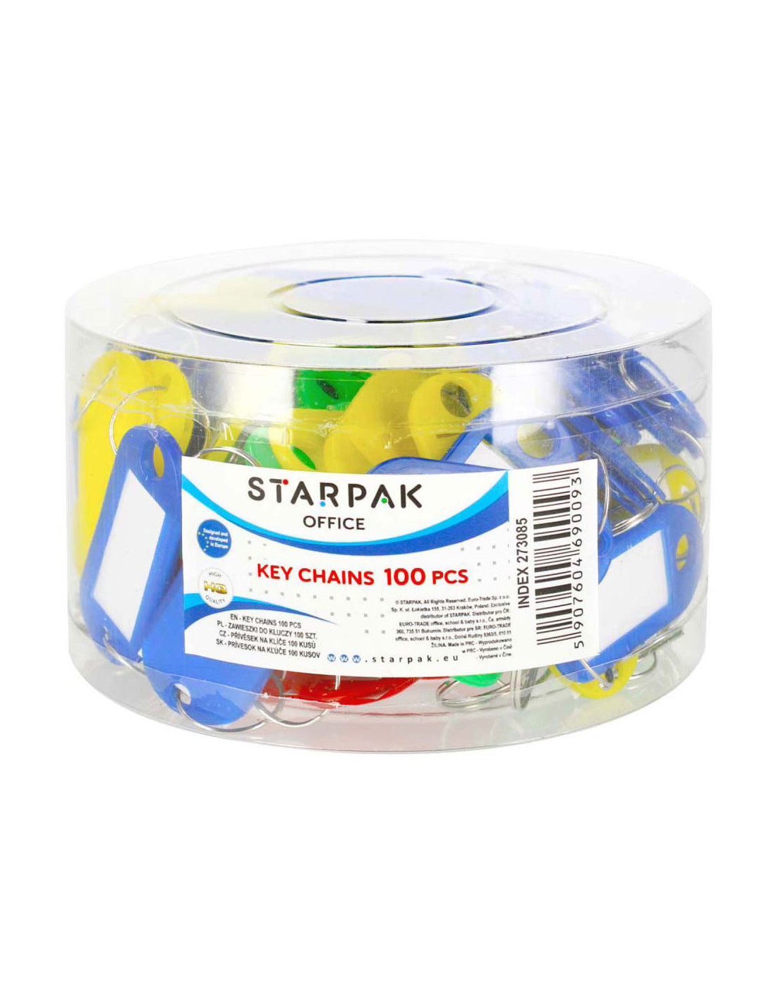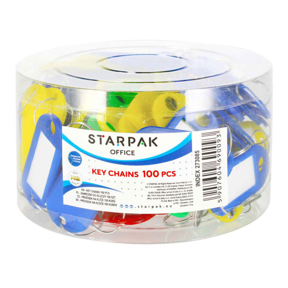 Gekleurde sleutelhanger met briefje. De set bevat 100 sleutelhangers. De sleutelhanger is 2 x 5 x 2 cm groot. Niet geschikt voor kinderen jonger dan 3 jaar.