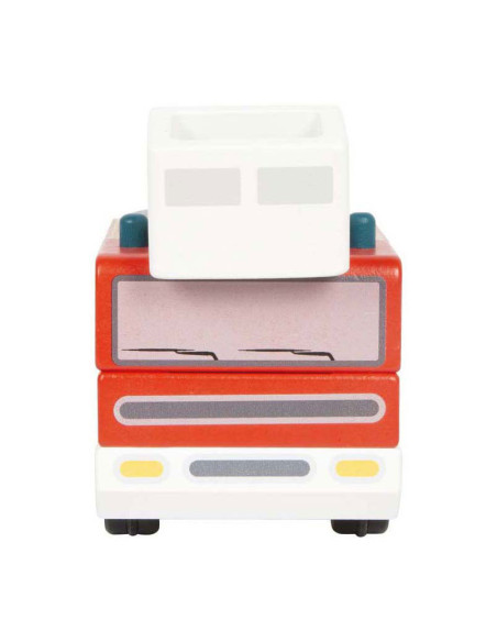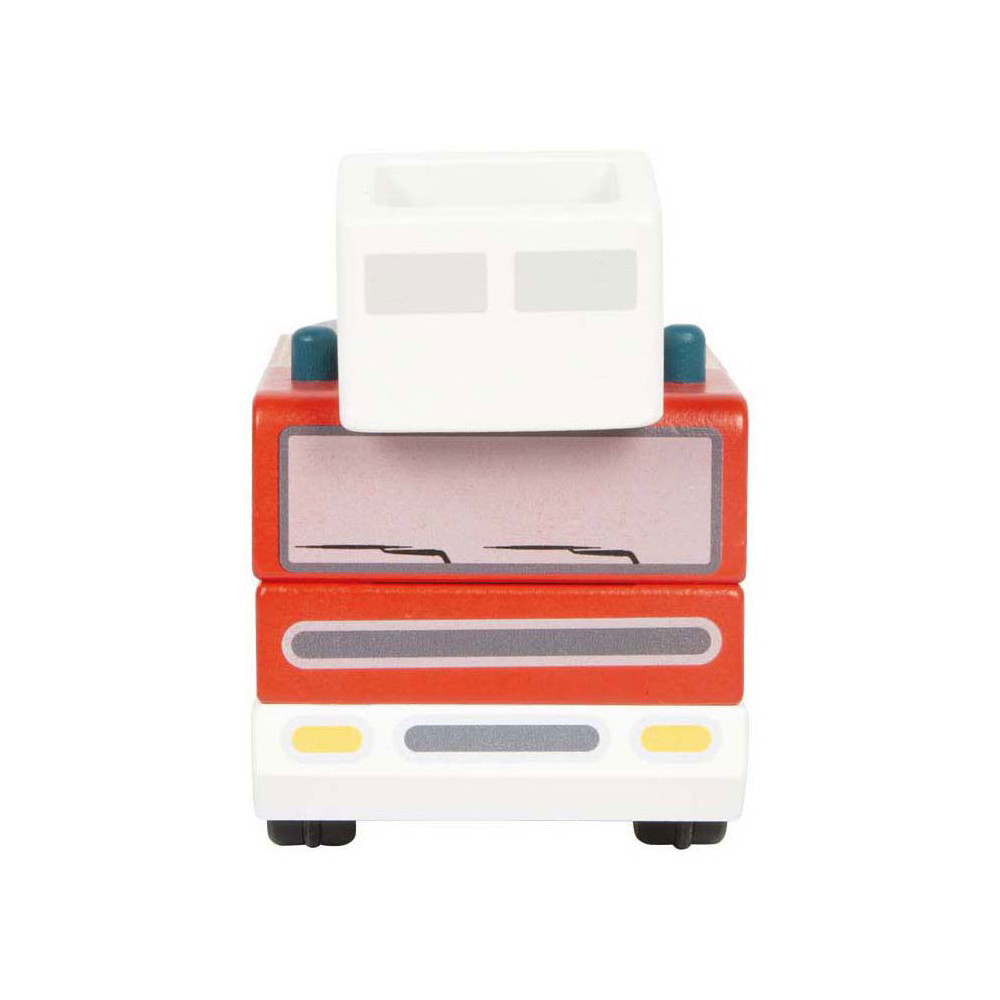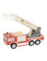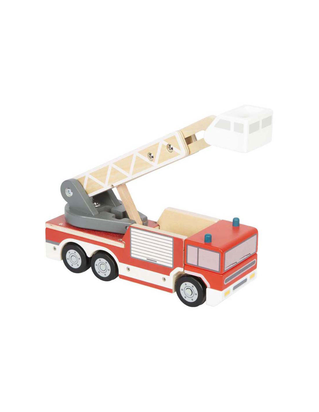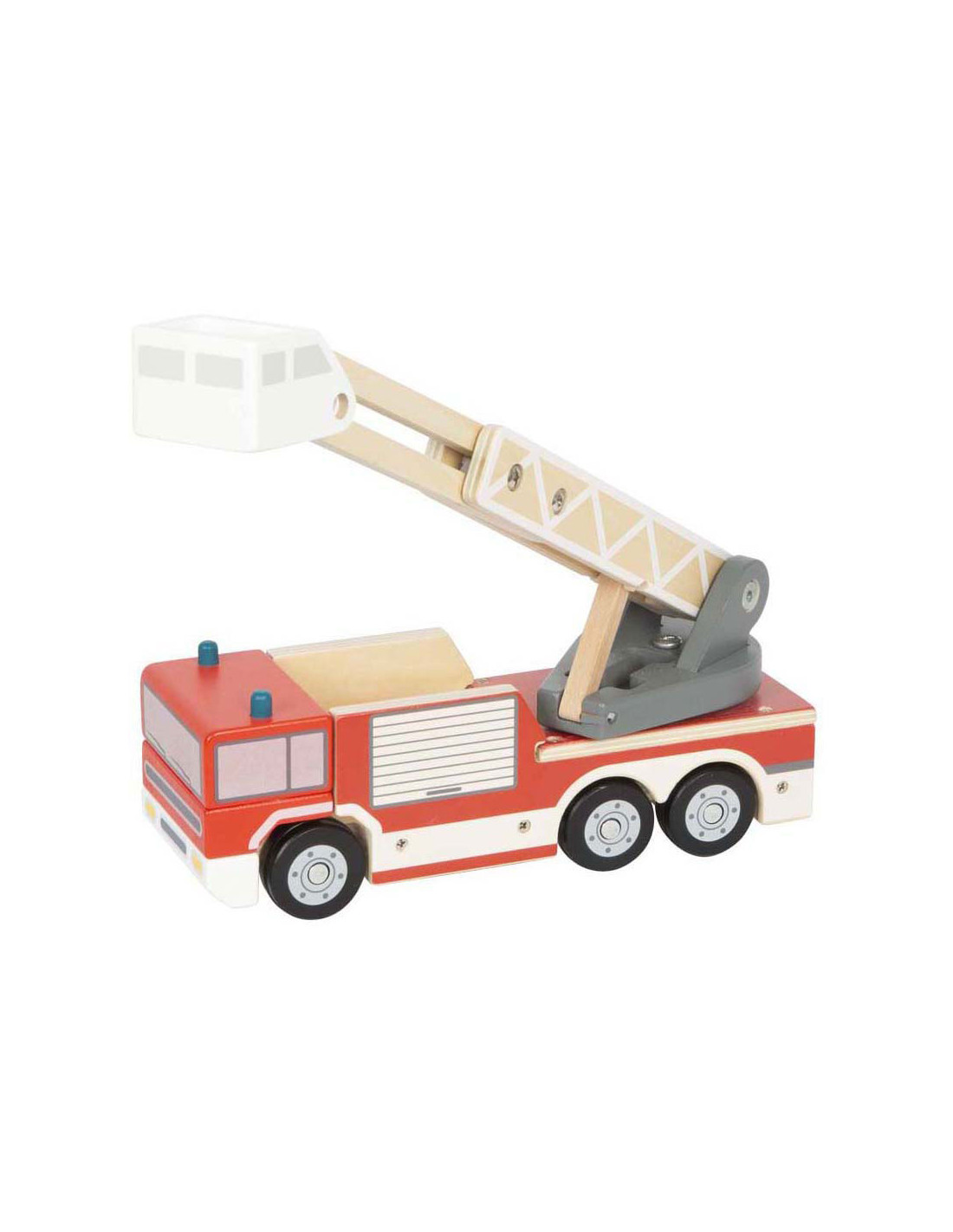 Deze houten brandweerauto is het perfecte voertuig voor jonge brandweermannen. Met een ladder die 360 graden kan draaien en uitschuiven, kunnen kinderen klassieke brandweerscènes uitbeelden waarbij ze hoog in de lucht branden moeten bereiken en blussen. De emmer aan het einde van de draaiende ladder kan eenvoudig worden bediend met de handslinger om het redden van mensen of dieren na te spelen. De rubberen, geruisloos rollende banden zorgen ervoor dat de truck rustig en zachtjes rondrijdt en de veiligheidsbeugels houden de draaiende ladder stabiel. Deze brandweerwagen maakt een sterke indruk met zijn stabiliteit en veelzijdige speelbaarheid, waardoor het een must-have is voor elk speelgoedwagenpark in de kinderkamer. Het manoeuvreren en bedienen van de laddermotor verbetert de hand-oog coördinatie van kinderen terwijl ze de kracht van hun verbeelding gebruiken om allerlei reddingsscenario's na te spelen. Spelen met dit speelgoedvoertuig stimuleert ook de sociale saamhorigheid wanneer kinderen samen hun eigen reddingsmissies plannen en uitvoeren!
