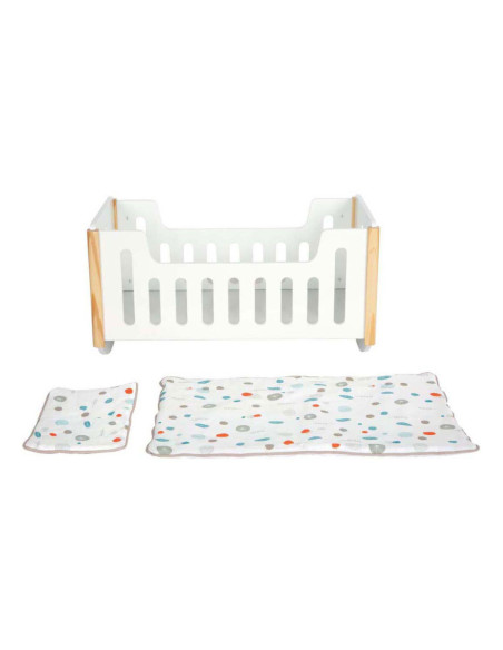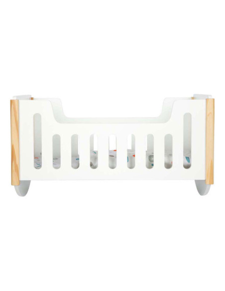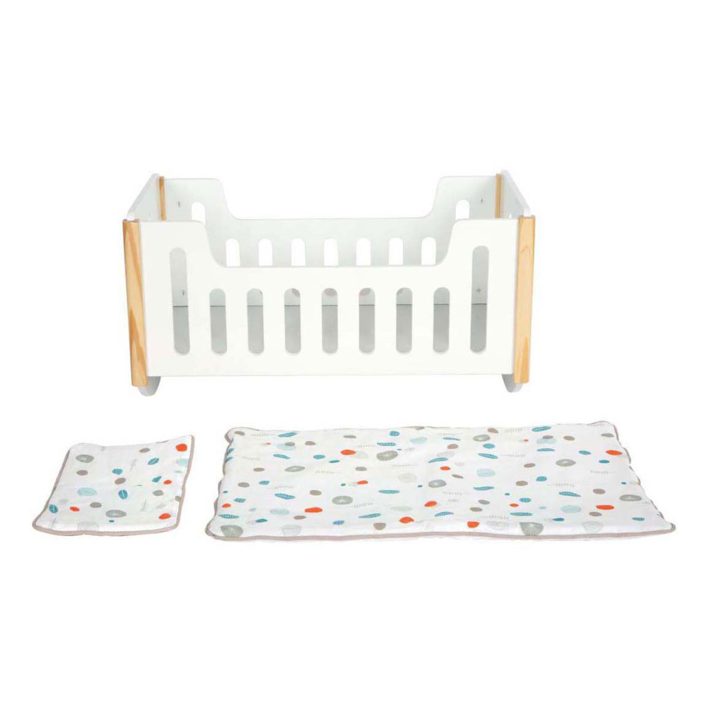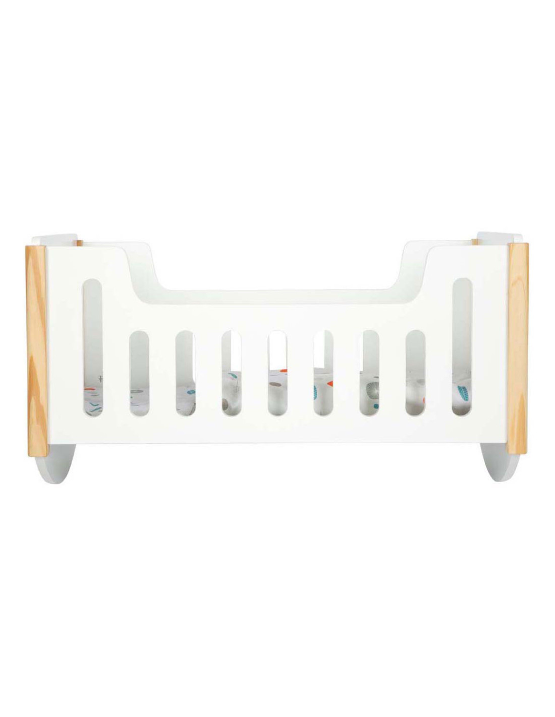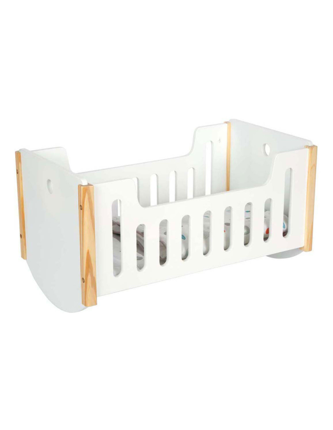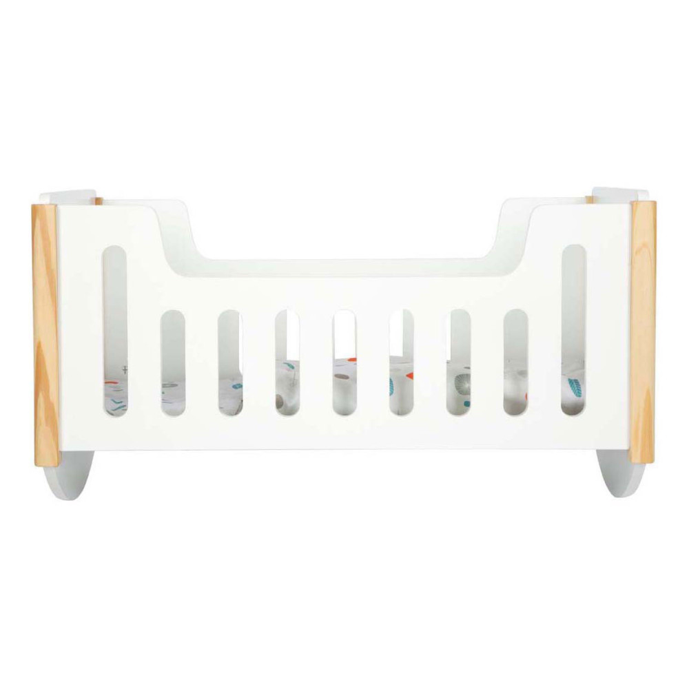 Schommel zachtjes en slaap lekker! Dit moderne houten poppenbedje met een ontwerp in Scandinavische stijl is het perfecte bedje om poppen en pluchen dieren zachtjes in slaap te wiegen. Het beddengoed met het oversized dekentje biedt poppen en pluche dieren tot 46 cm lengte een knusse plek om in te dommelen. Dankzij het onopvallende ontwerp in neutraal wit en natuurlijk, onbehandeld hout past dit ledikantje in elke woon- of kinderkamer.