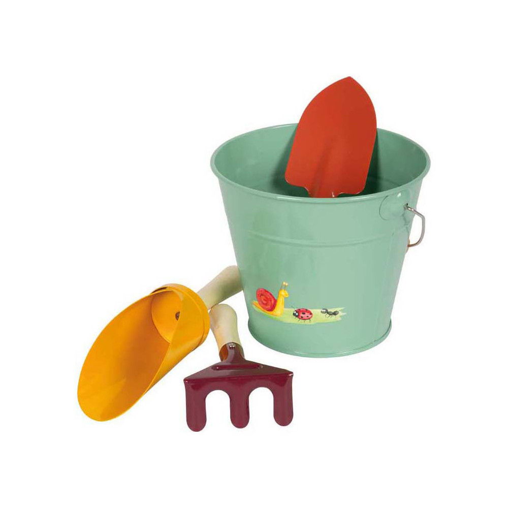 - De set bestaat uit 1 emmer, 1 schepje, 1 harkje, 1 diepe schep