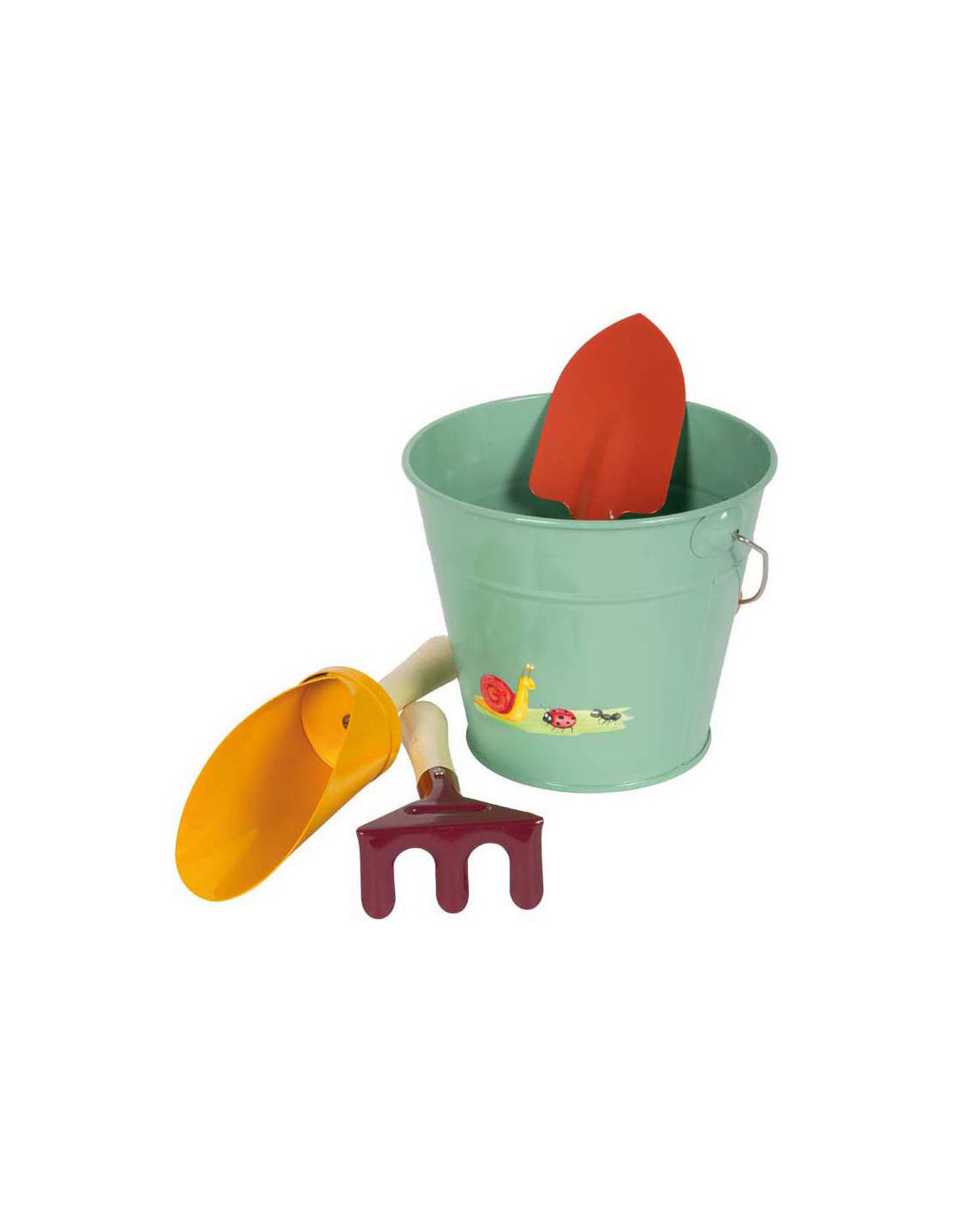 De “Tiny Garden” handschep set met emmer is een echt hoogtepunt voor kleine tuiniers en zandkasteelbouwers! Met drie robuuste tuingereedschappen van hout en metaal en een emmer van stevig metaal en bedrukt met vrolijke dierenmotieven, nodigt deze set kinderen uit om te spelen en te ontdekken. Of het nu in de tuin, op het strand of in de zandbak is - de frisse kleuren en het verfijnde gereedschap zorgen zeker voor creatief buitenplezier!
