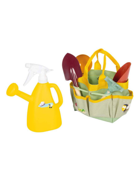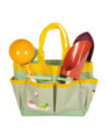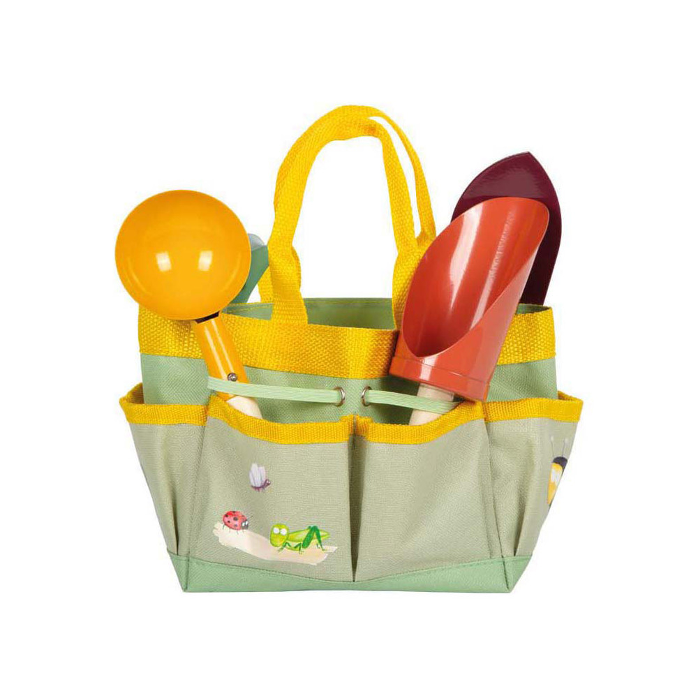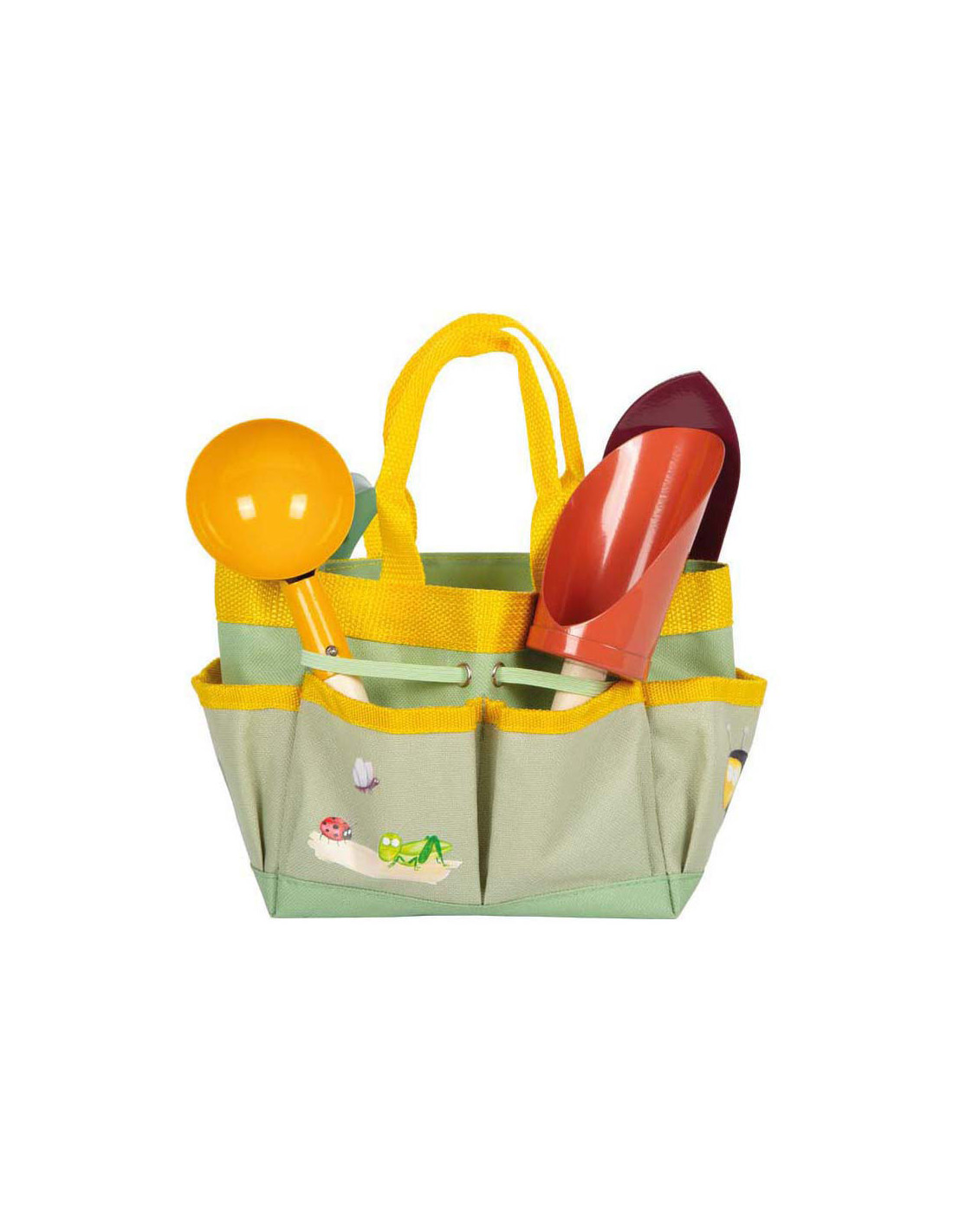 De handige “Tiny Garden” tuintas maakt van tuinieren, graven en spelen een groot avontuur! Deze tas heeft een groot hoofdvak en handige buitenvakken zodat kleine tuiniers van alles kunnen opbergen. Met vier kleurrijke gereedschappen van metaal en hout en een slimme 2-in-1 gieter/sproeifles hebben kinderen alles wat ze nodig hebben voor de tuin, het strand of de zandbak. Praktisch, duurzaam en een echte blikvanger met zijn kleuren en schattige dierenmotieven - zo wordt buitenpret pas echt leuk!