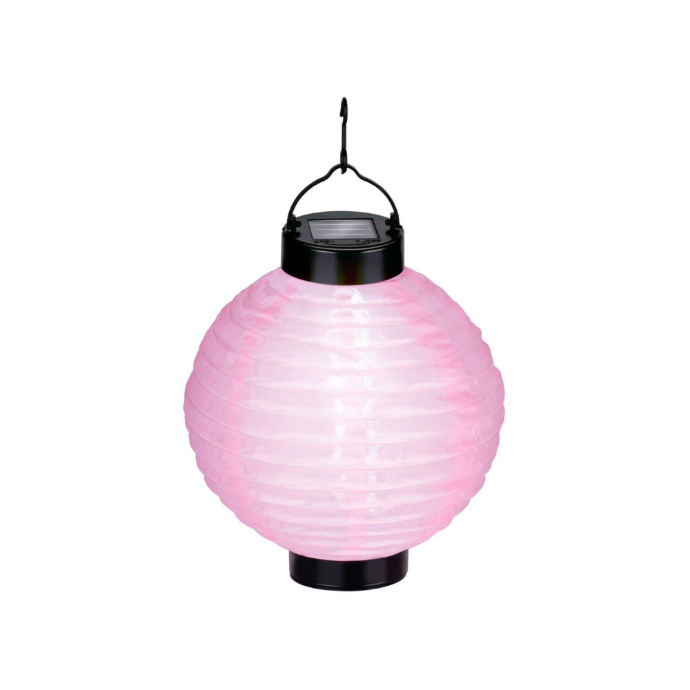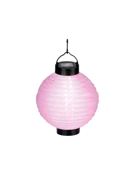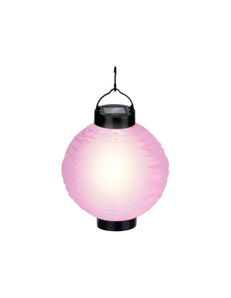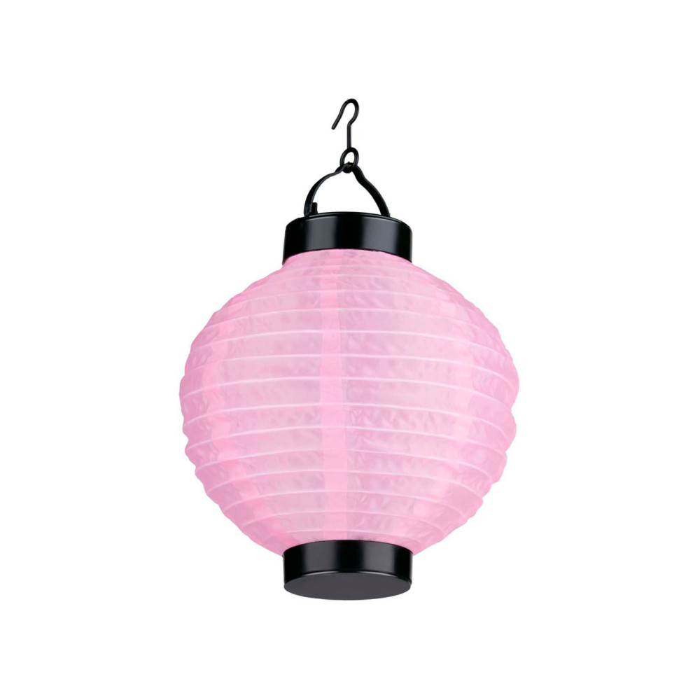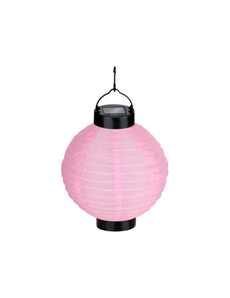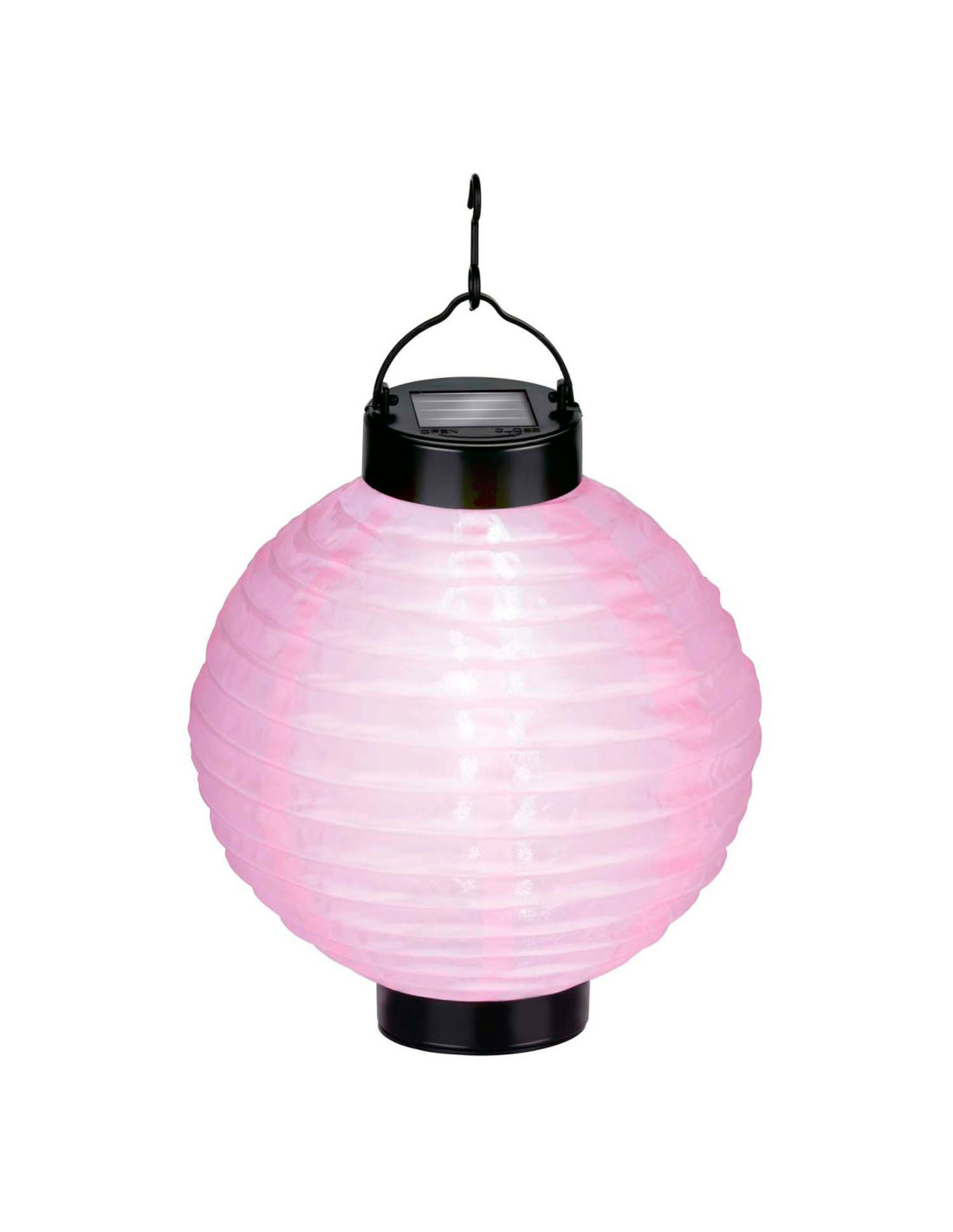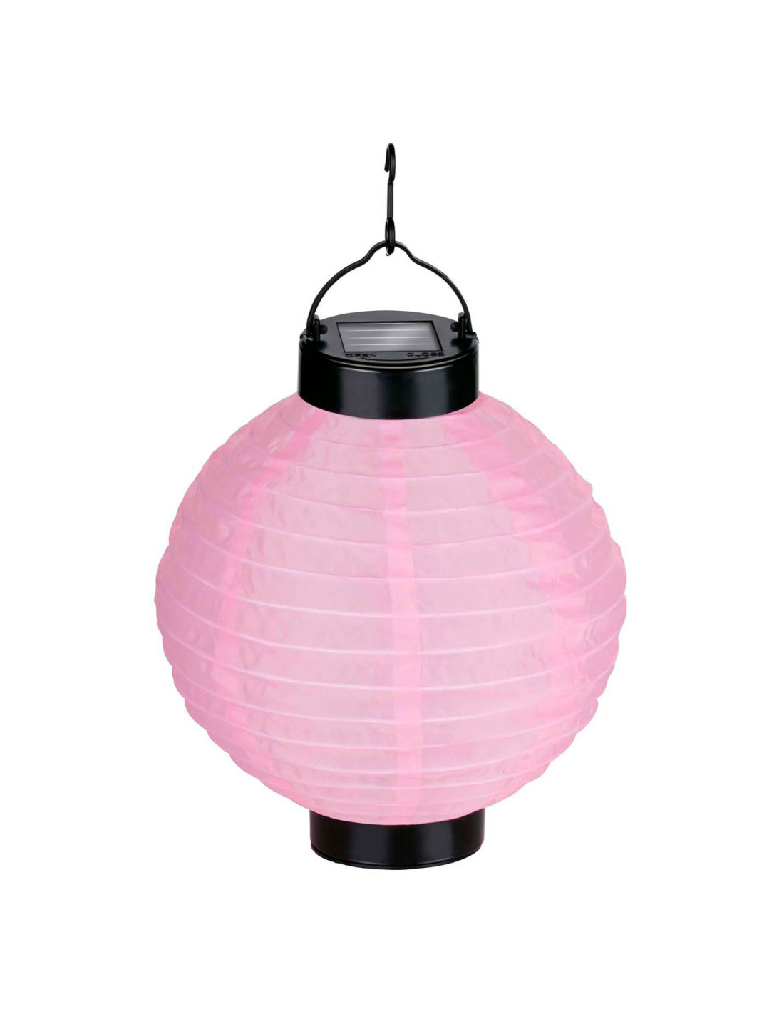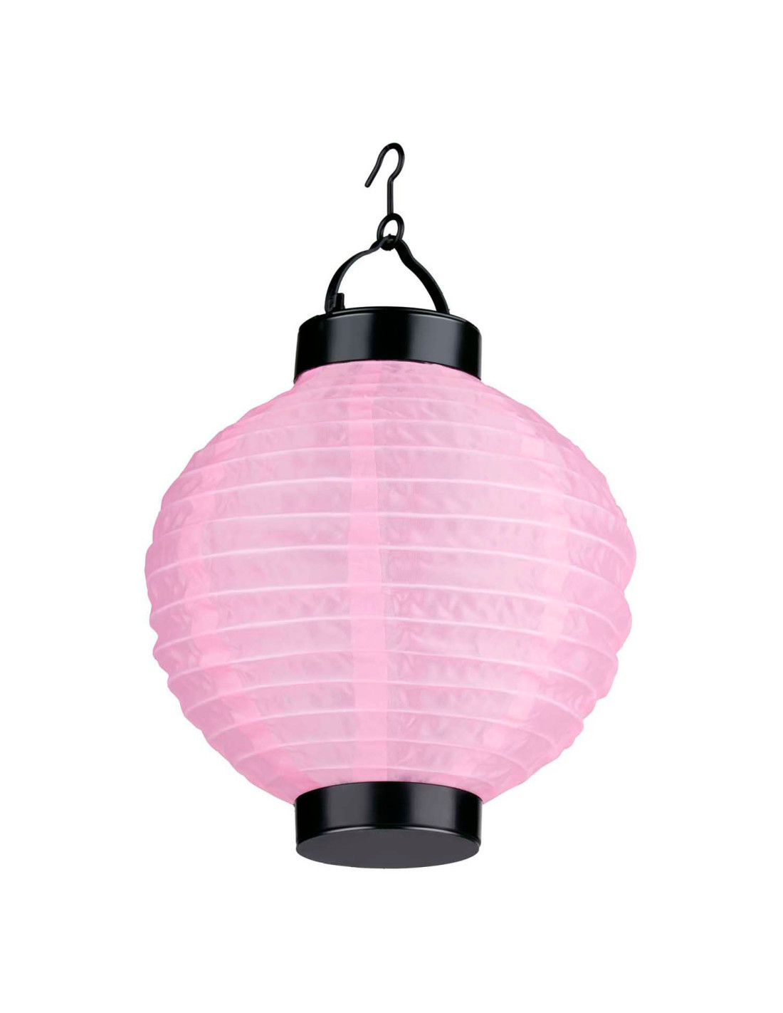 Solar lampion die oplaadbaar is met zonlicht. De lampion is 20 x 30 centimeter groot en roze van kleur.
