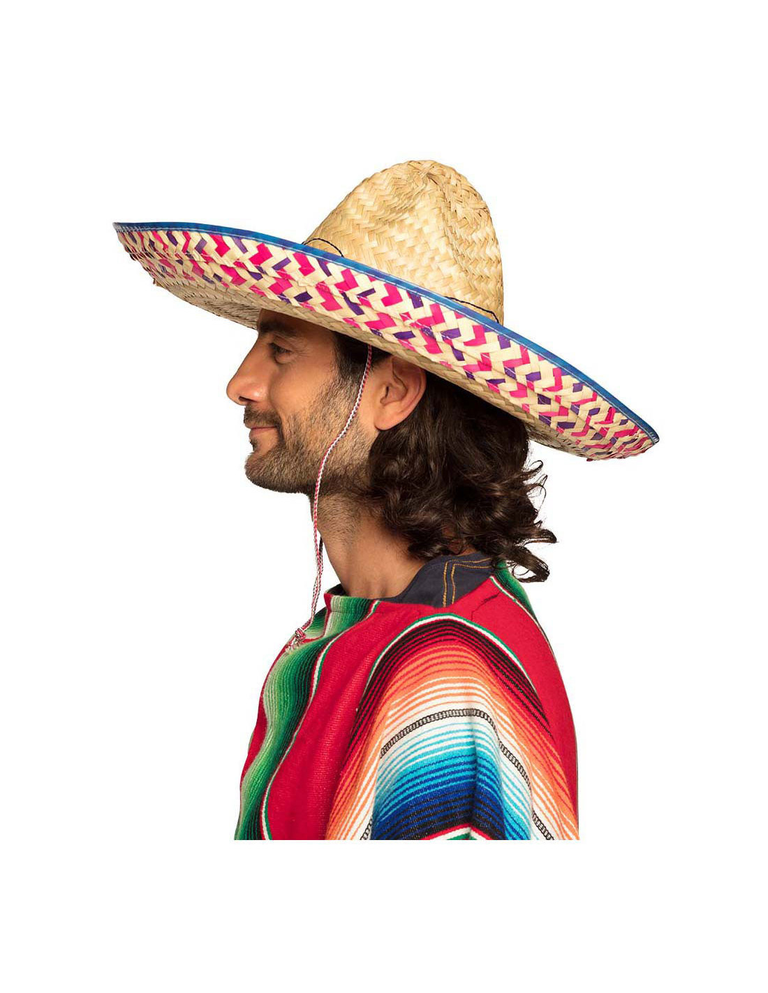 Natuurlijke strohoed met een diameter van 52 cm, geschikt voor volwassenen. Ideaal voor Mexicaanse themafeesten of carnaval. Wasbaar en comfortabel te dragen.