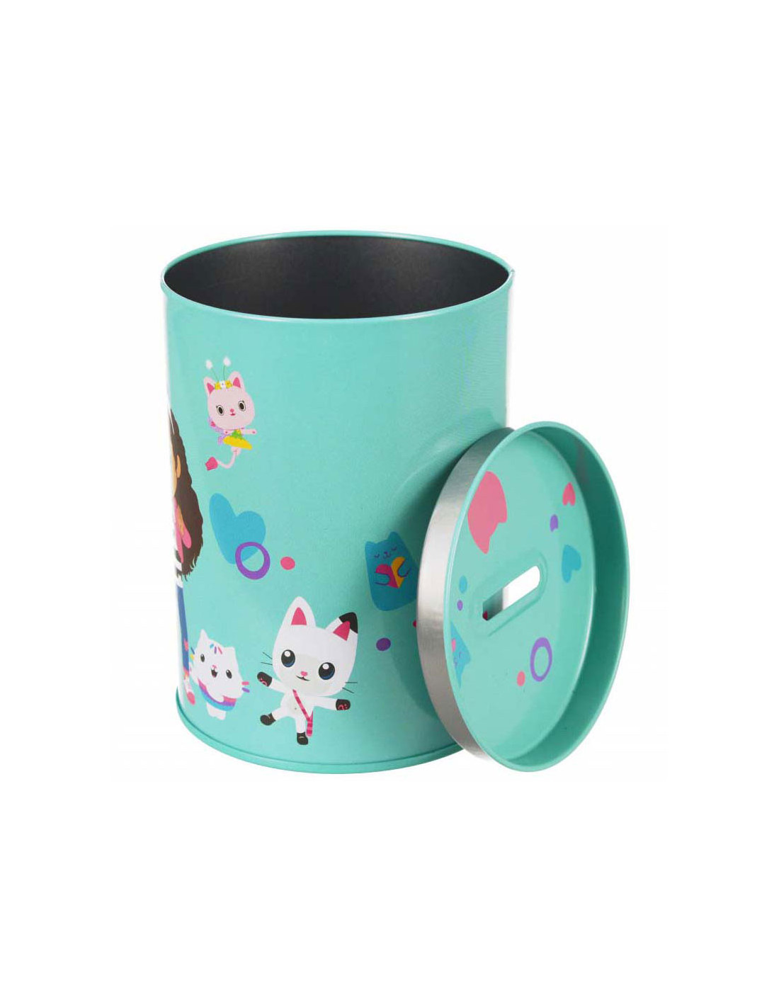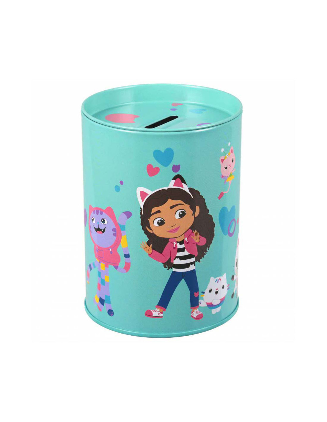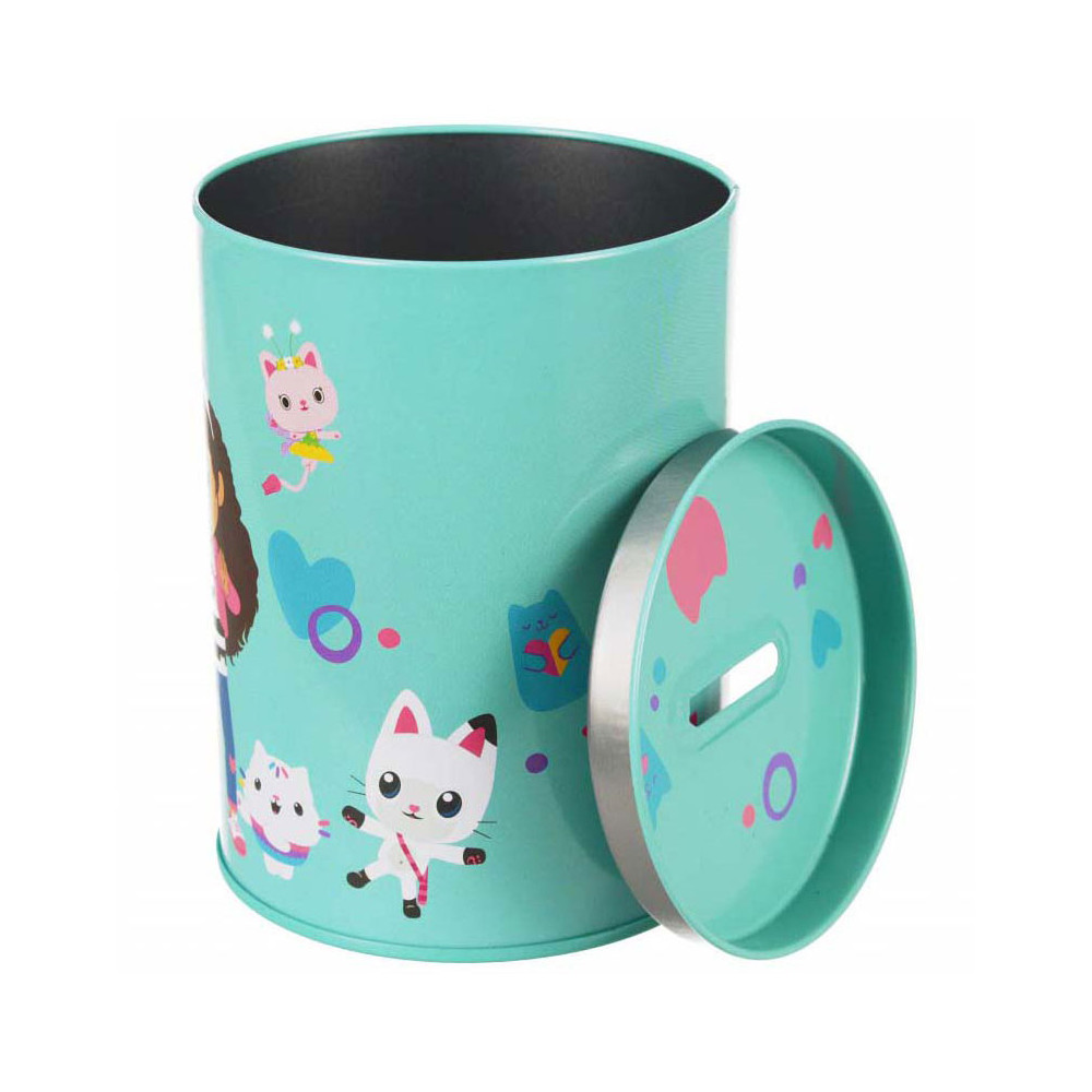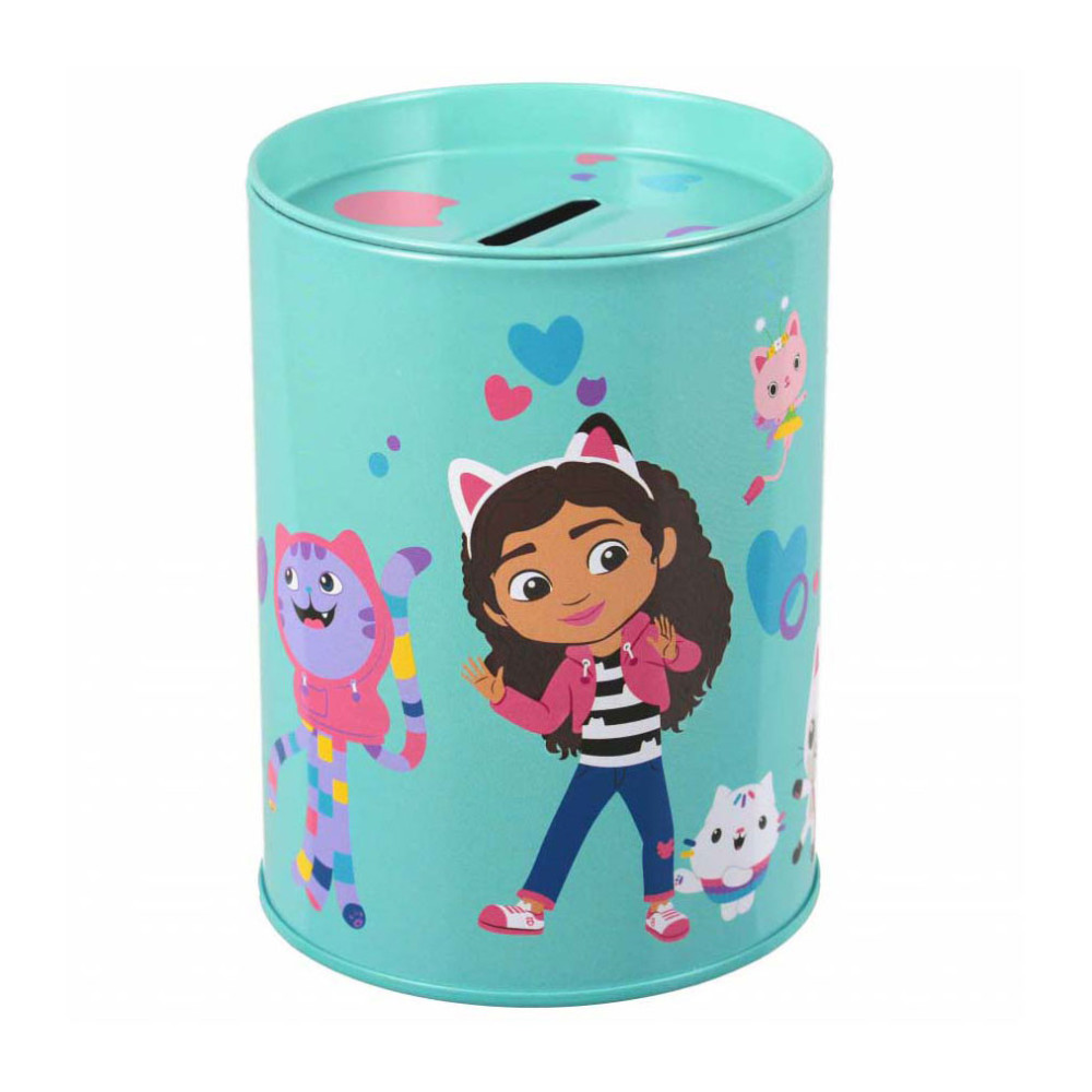 Metalen spaarpot Gabby's Poppenhuis. Geschikt voor kinderen vanaf 3 jaar. De spaarpot is 8 x 12 cm groot.