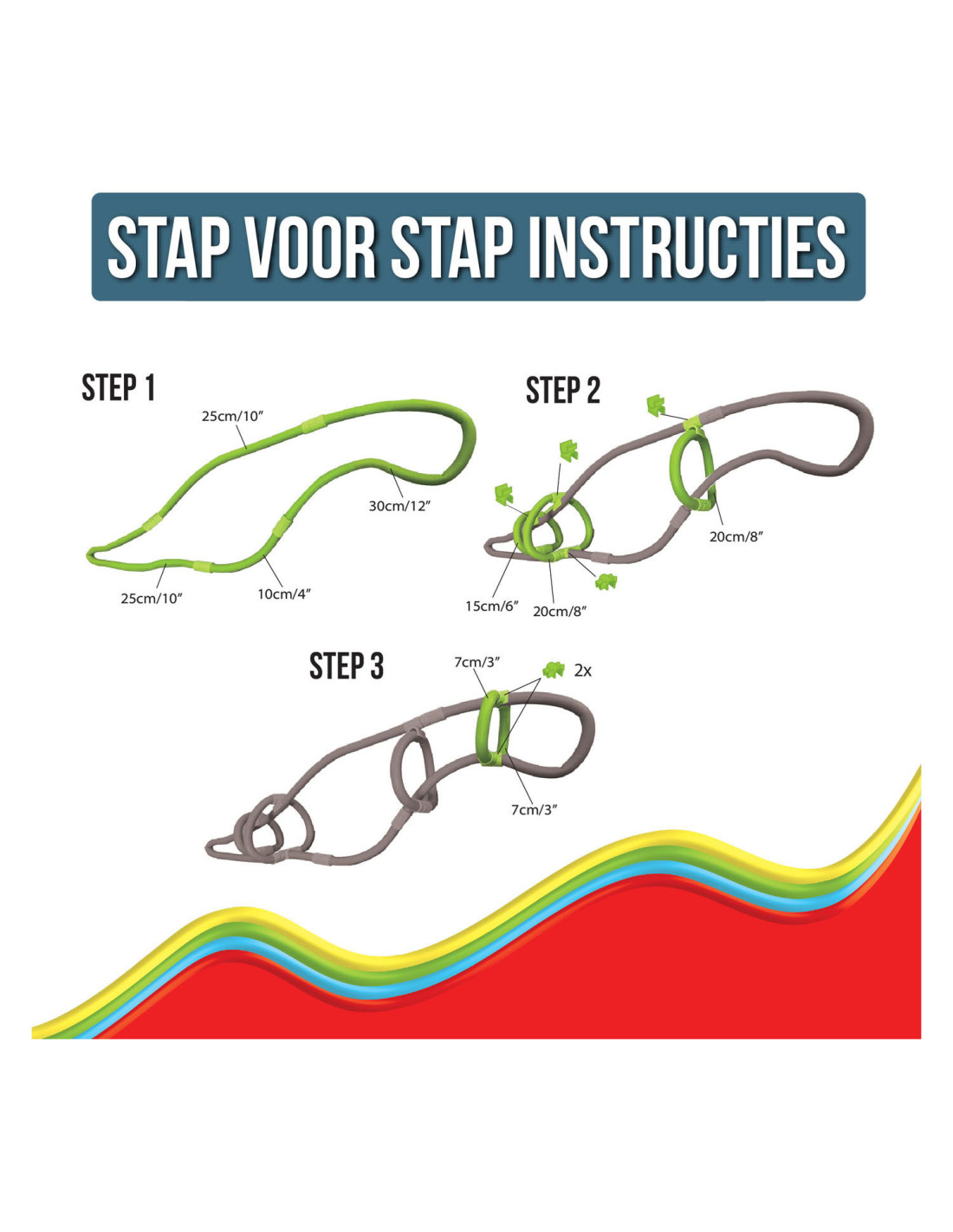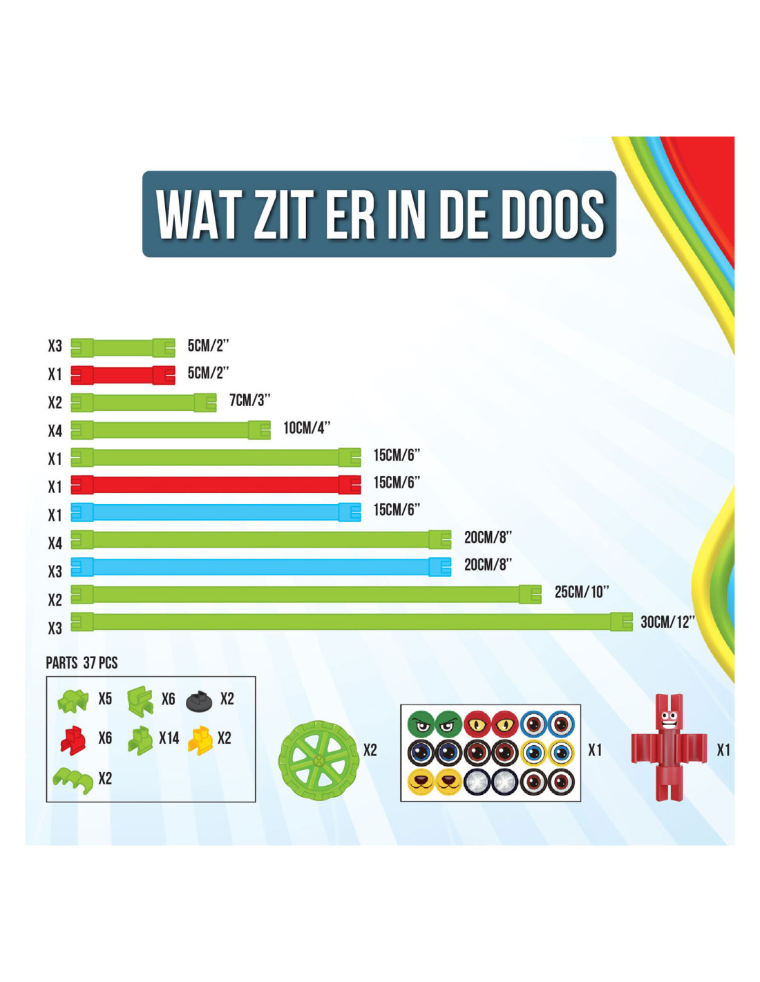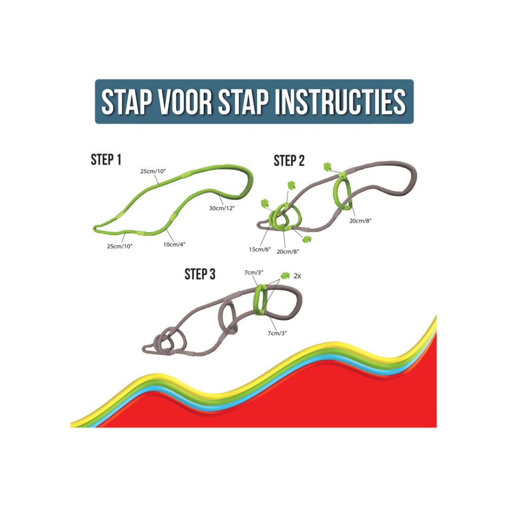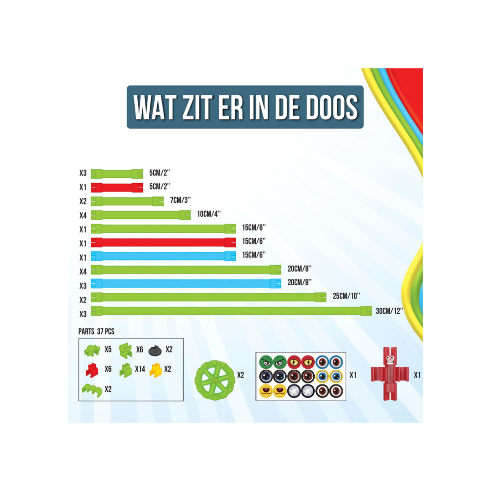Spaghetteez Twist-A-Saurus Rex Flexibele Bouwstaafjes. De set bestaat uit 64 onderdelen en stickers. Geschikt voor kinderen vanaf 5 jaar.