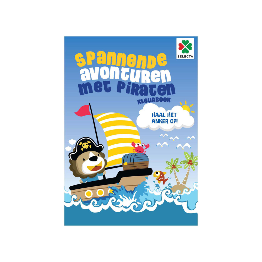 Kleur de piraten,de schepen, de schatkisten en de oceanen met strijdlustige kleuren.