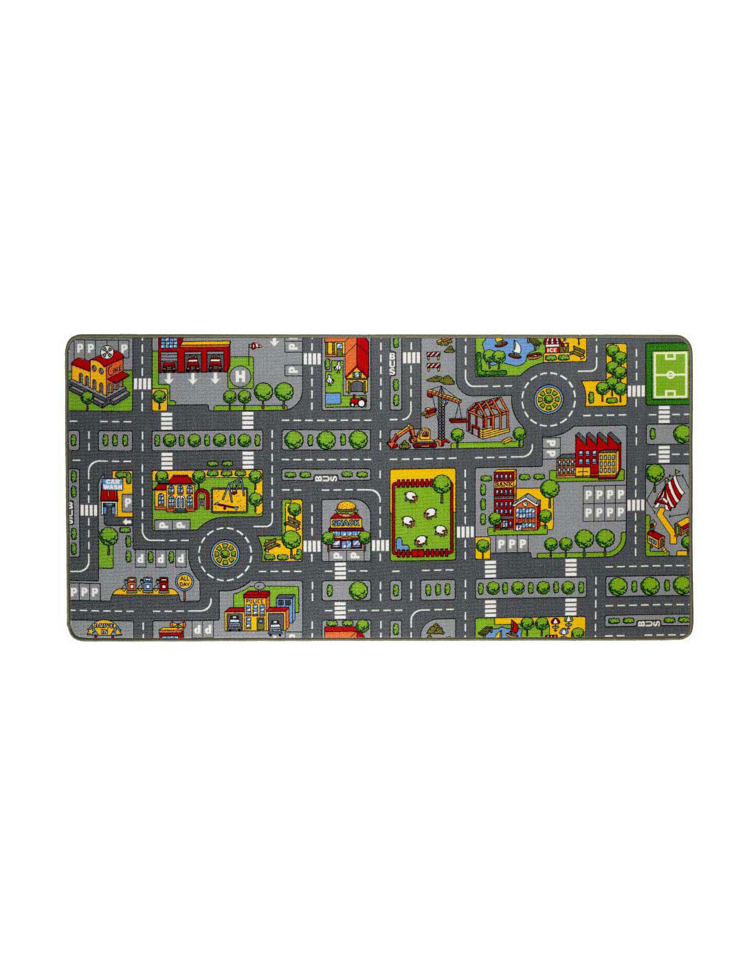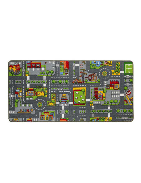 Het Paradiso Toys verkeerskleed is 95 x 200 cm groot en toont een kleurrijke stadsplattegrond met wegen en gebouwen. Gemaakt van polyamide en voorzien van een antisliplaag, is het geschikt voor kinderen vanaf 2 jaar.