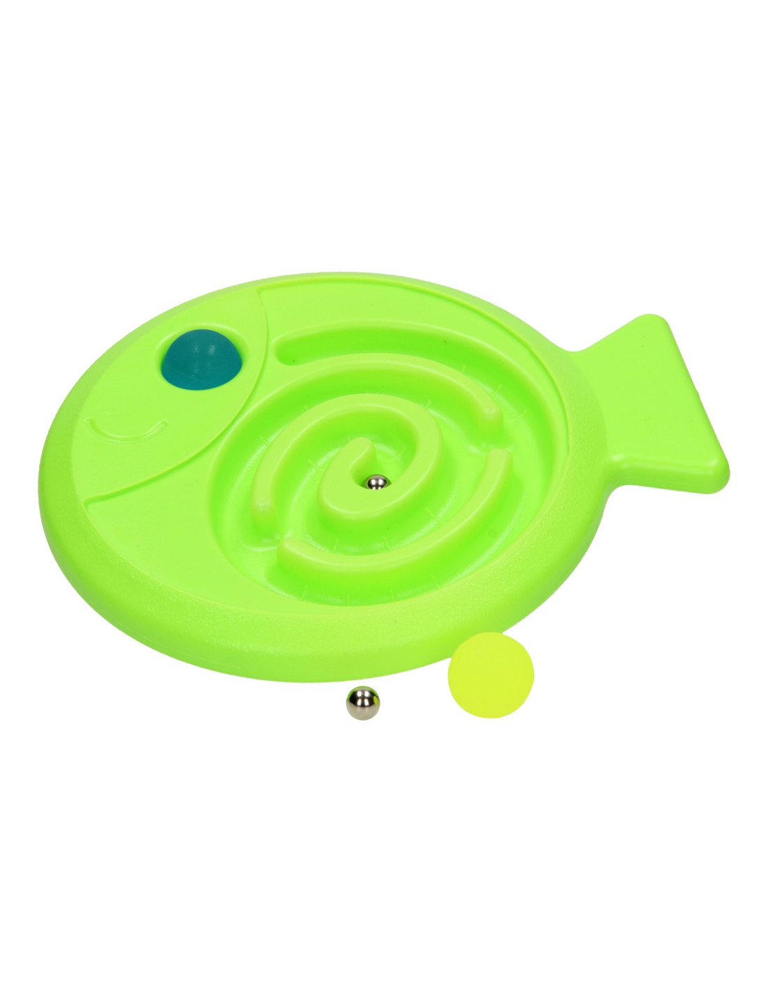 Aan de ene kant van het bord gebruik je twee handen om het kleine balletje door het doolhof te rollen en ervoor te zorgen dat het op de juiste plek terechtkomt. Aan de andere kant van de vis laat je de meegeleverde stuiterbal door het ondiepe spoor rollen. Hierbij is het essentieel om je balans goed te houden en ervoor te zorgen dat de balletjes niet van de vis vallen!