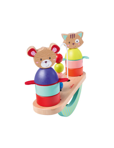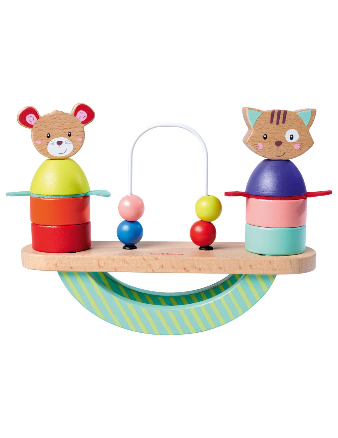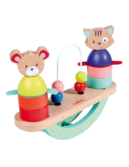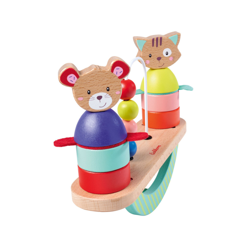 Eichhorn Friends stapelspel: Met het 11-delige Eichhorn Friends stapelspel kunnen kleine torens in de vorm van een kat en een muis worden gebouwd van een wip en insteekonderdelen. Er is ook een kleine motoriekspiraal met kleurrijke kralen op de wip, die de fijne motoriek stimuleert. Het spelen met het stapelspel van 5 x 22 x 17 cm bevordert specifiek de motoriek en oog-handcoördinatie bij kinderen vanaf 1 jaar. Gemaakt van 100% FSC® hout uit duurzame bosbouw.