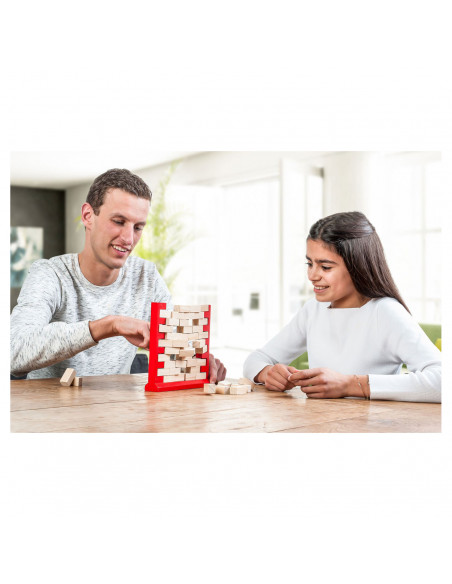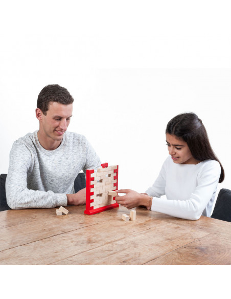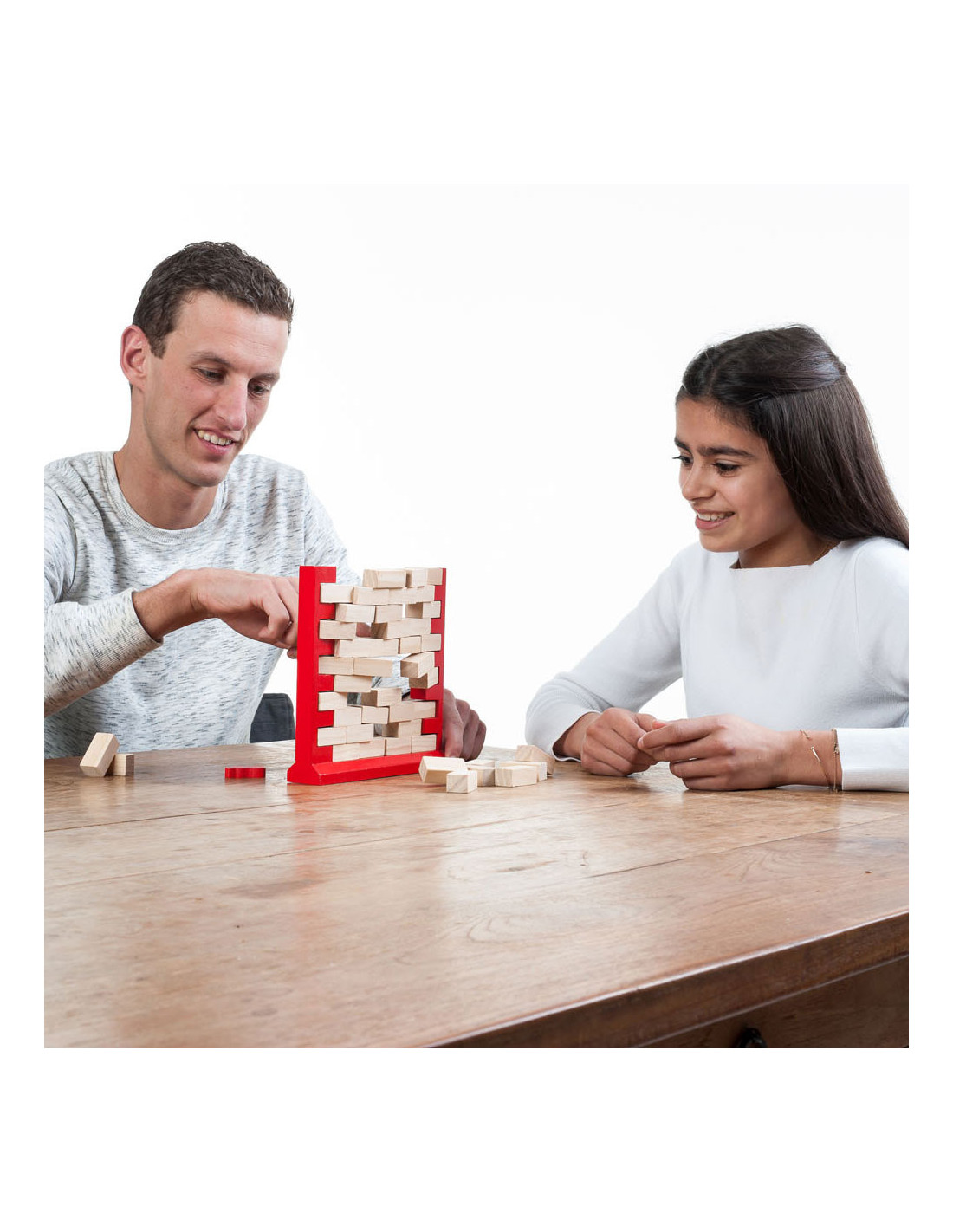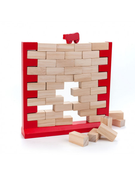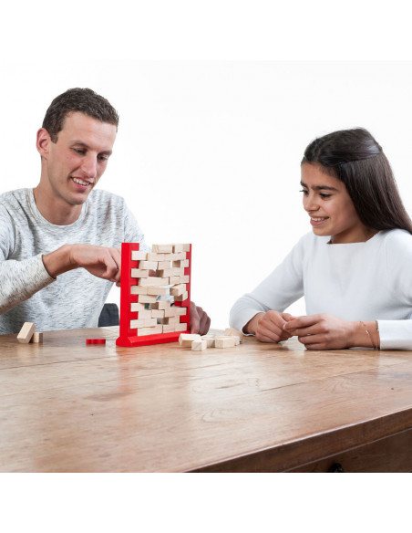 Duw om de beurt voorzichtig een steen uit de muur, maar pas op de muur kan instorten. Geschikt vanaf 6 jaar.