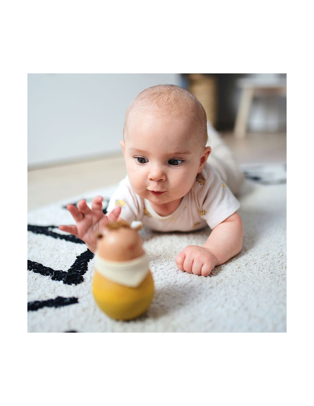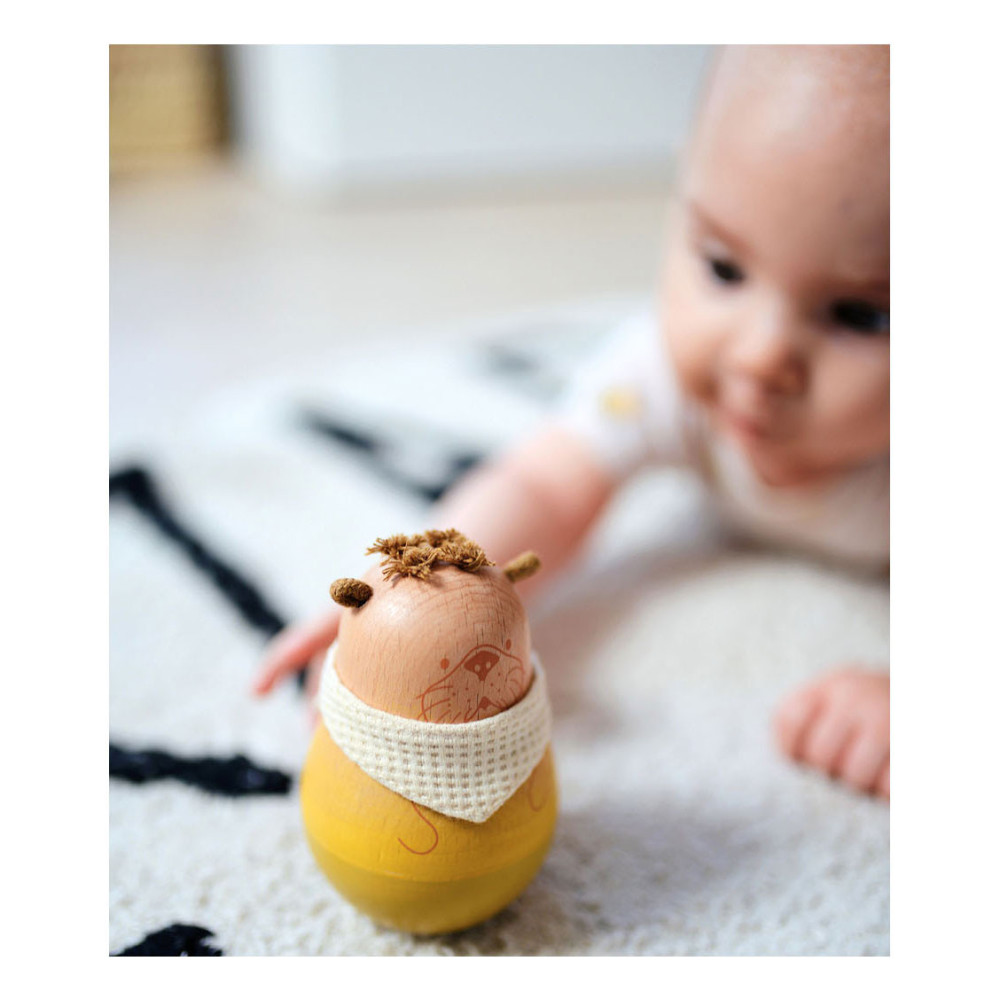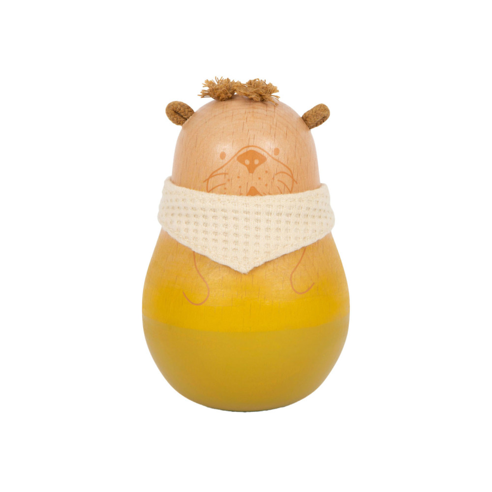 Een prachtige tuimelaar in de vorm van een otter. Deze schattige, natuurlijk ogende staande otter is een bijzonder fascinerend speeltje voor baby's dat altijd vanzelf weer overeind komt als er tegenaan wordt geduwd. Een rinkelende bal in het babyspeelgoed stimuleert de auditieve perceptie met opwindende geluiden. Bijzondere details, zoals het haar, de oren van katoen en een zakdoek van jersey met wafelpatroon, nodigen kinderen uit om aan te raken en te voelen. Dit is een leuk cadeau voor pasgeborenen en als eerste speelgoed voor baby's!