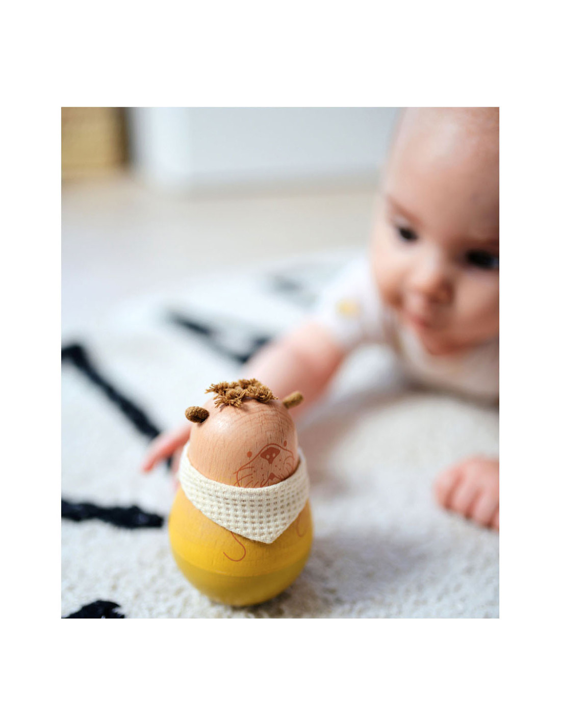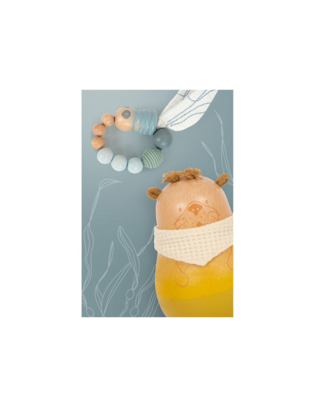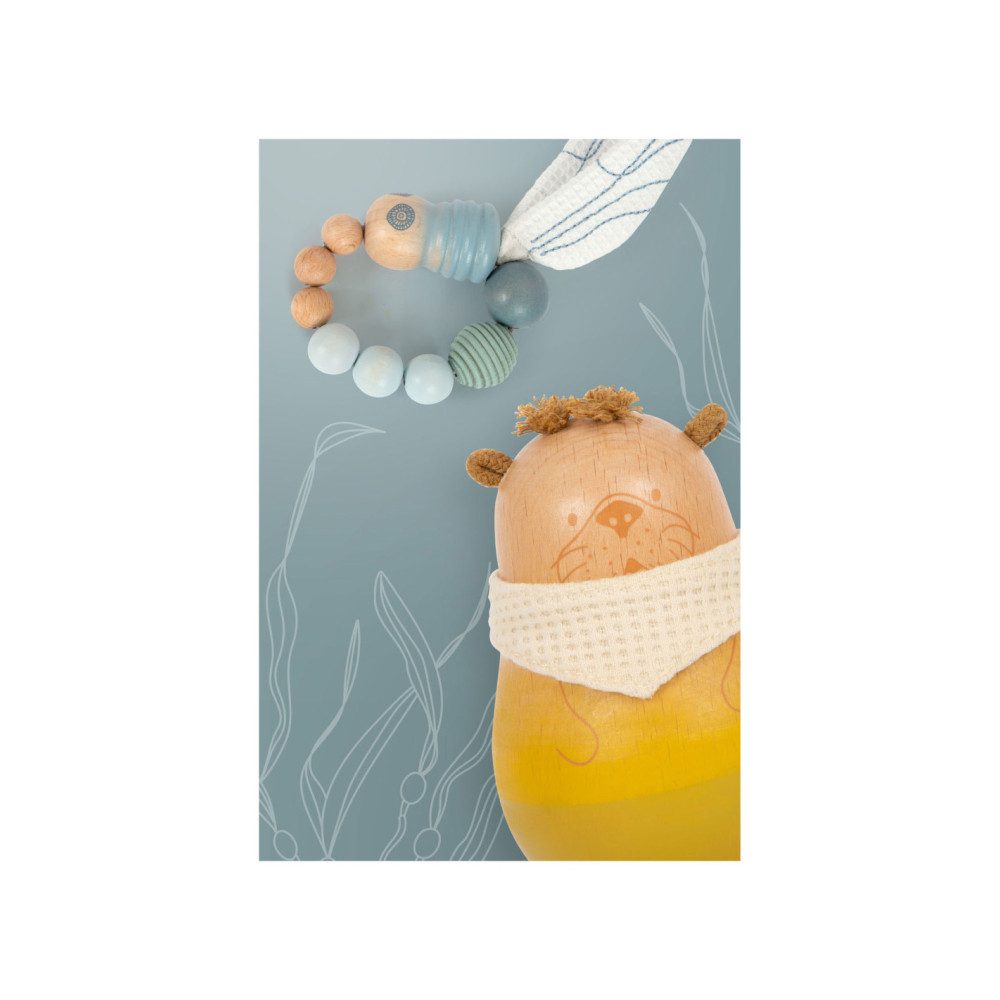 De aantrekkelijke mix van materialen zoals zichtbaar massief hout, moderne kleuren en katoenen details maken dit sta-figuur tot een echte blikvanger in de kinderkamer. De natuurlijke uitstraling wordt geaccentueerd door de houtnerf die zichtbaar is onder de lak en het zachte kleurverloop. Dankzij het fijn gevormde en zacht aanvoelende hout is deze kleine otter goed vast te pakken.