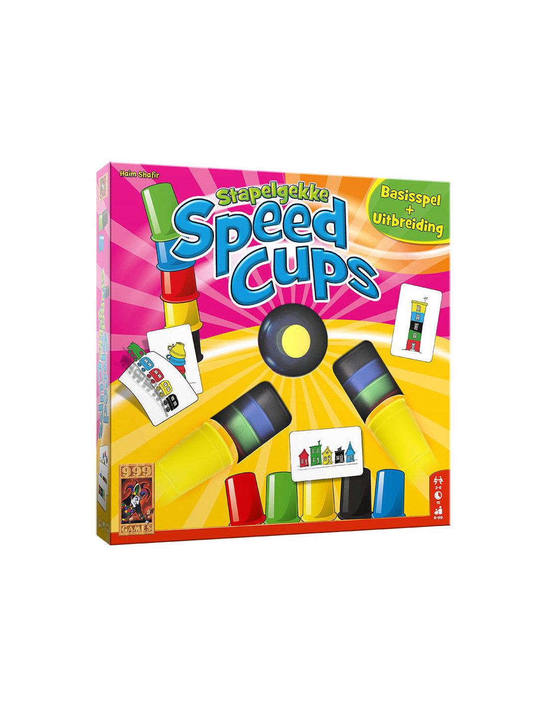 Vrolijk actiespel voor het hele gezin. Zet zo snel mogelijk 5 gekleurde bekers op of naast elkaar zoals de kaart aangeeft. Nu met het basisspel en de uitbreiding in één doos. Stapelgekke Speed Cups heeft zeer eenvoudige spelregels, waardoor het snel te leren is. Leuk voor families met kinderen, maar ook voor studenten en veelspelers die iets luchtigs tussendoor willen doen.
