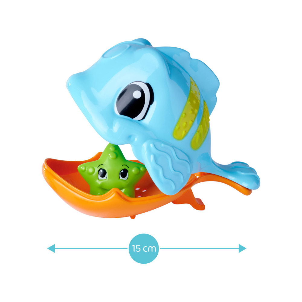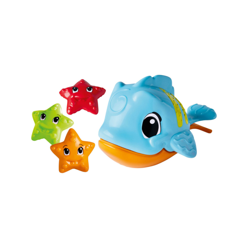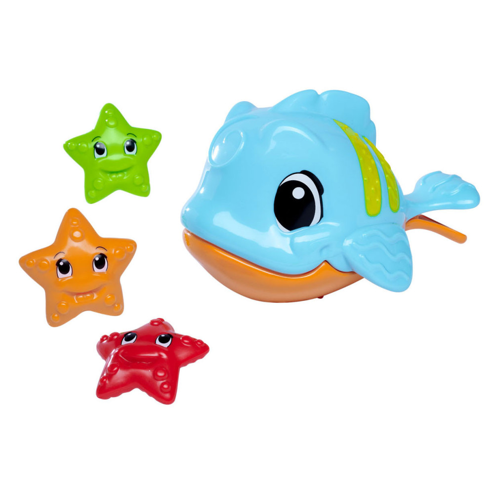 Badspeeltje voor in bad, geschikt voor kinderen vanaf 12 maanden oud. Inhoud: 1 vis en drie zeesterren.