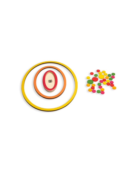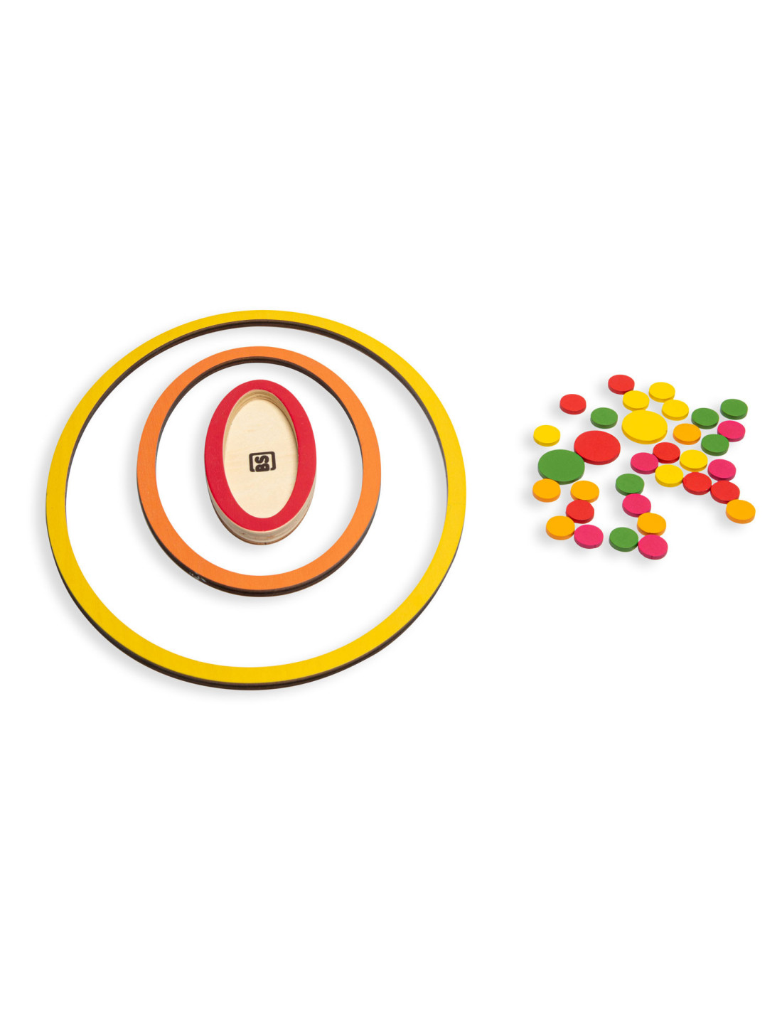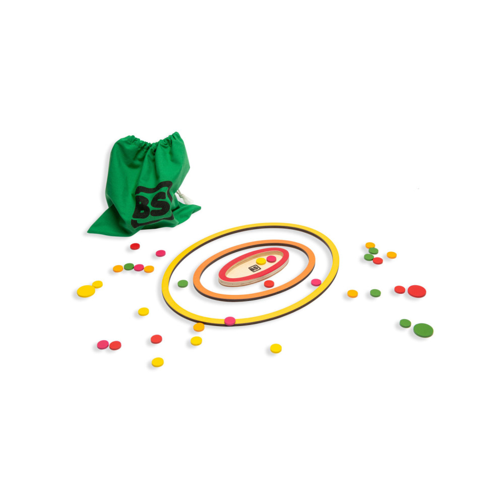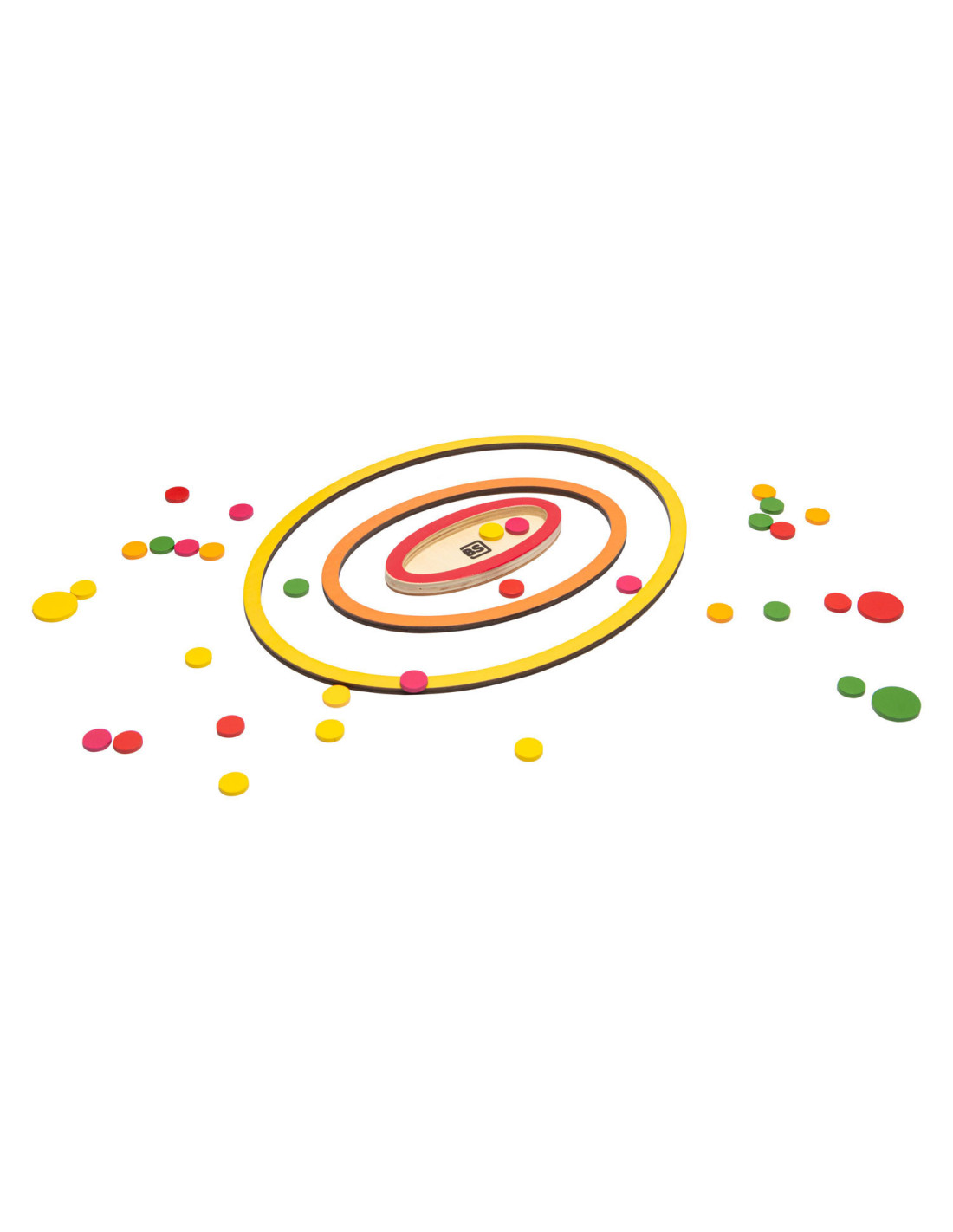 Een retro vlooienspel in een eigentijds jasje. Gemaakt van 100% FSC hout in lekker frisse kleuren. Probeer punten te scoren door jouw chips in de ringen te wippen. Wie scoort de meeste punten?