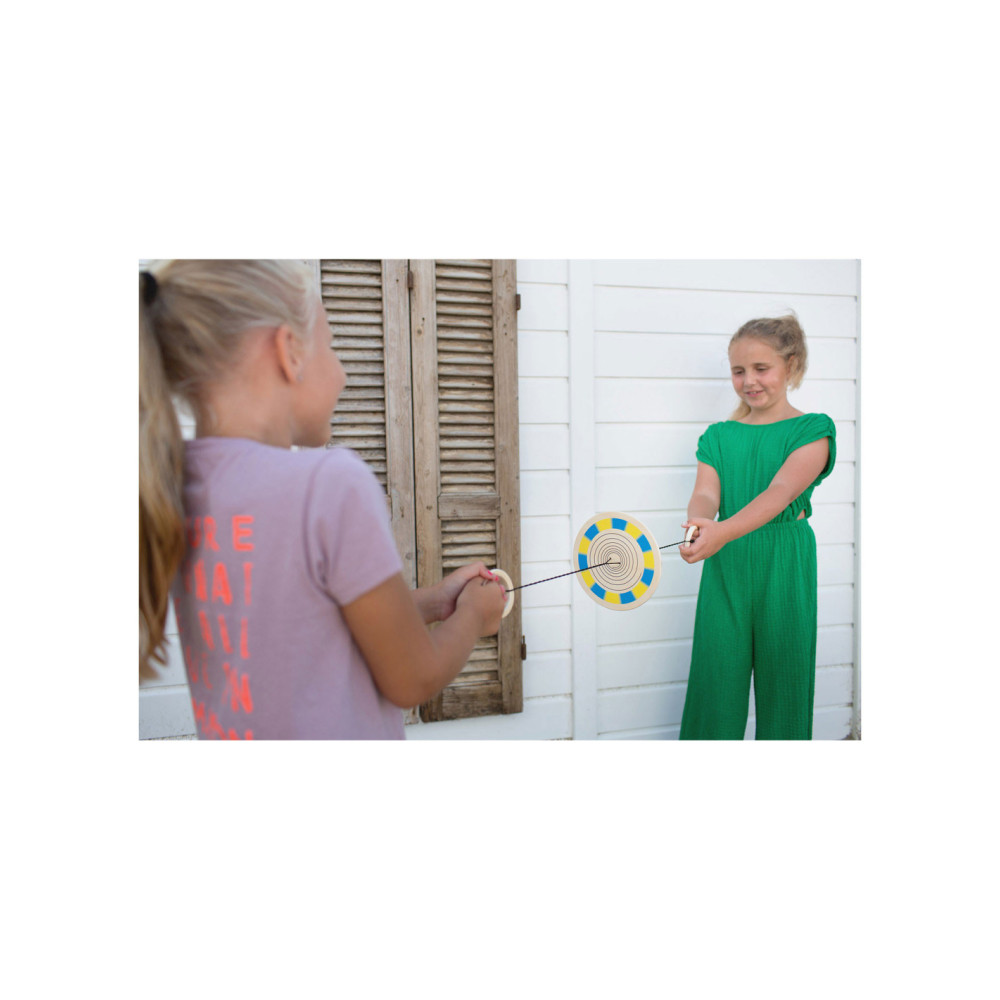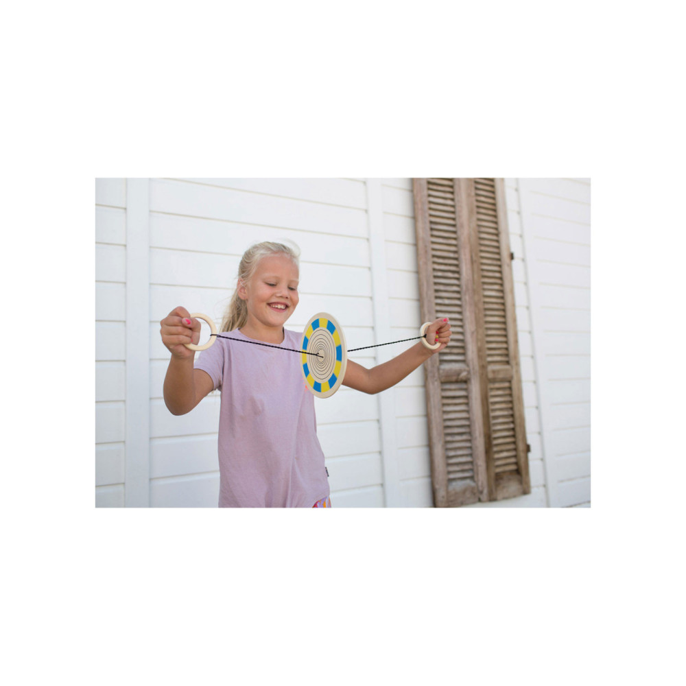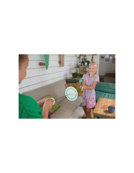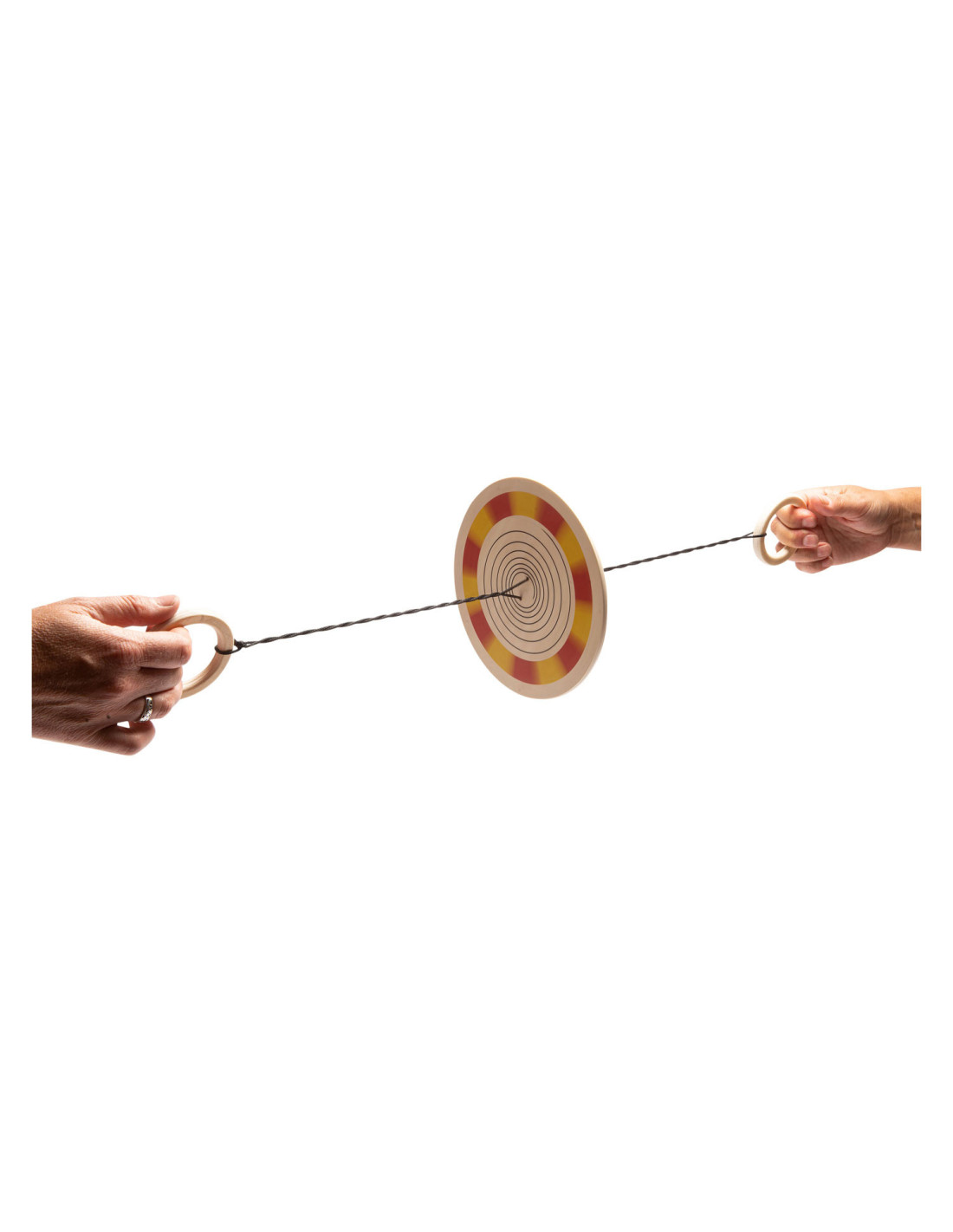 Met deze kleurenspinner is heel goed te zien wat er gebeurt als je twee kleuren mixt. Eerst zie je eerst nog geel en rood, maar als de spinner ronddraait, veranderd dit in oranje! Probeer of het je alleen lukt, of werk samen om hem zo hard mogelijk te laten ronddraaien!