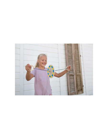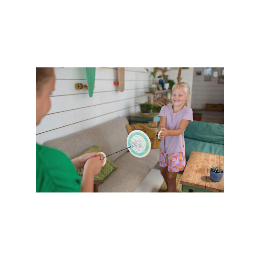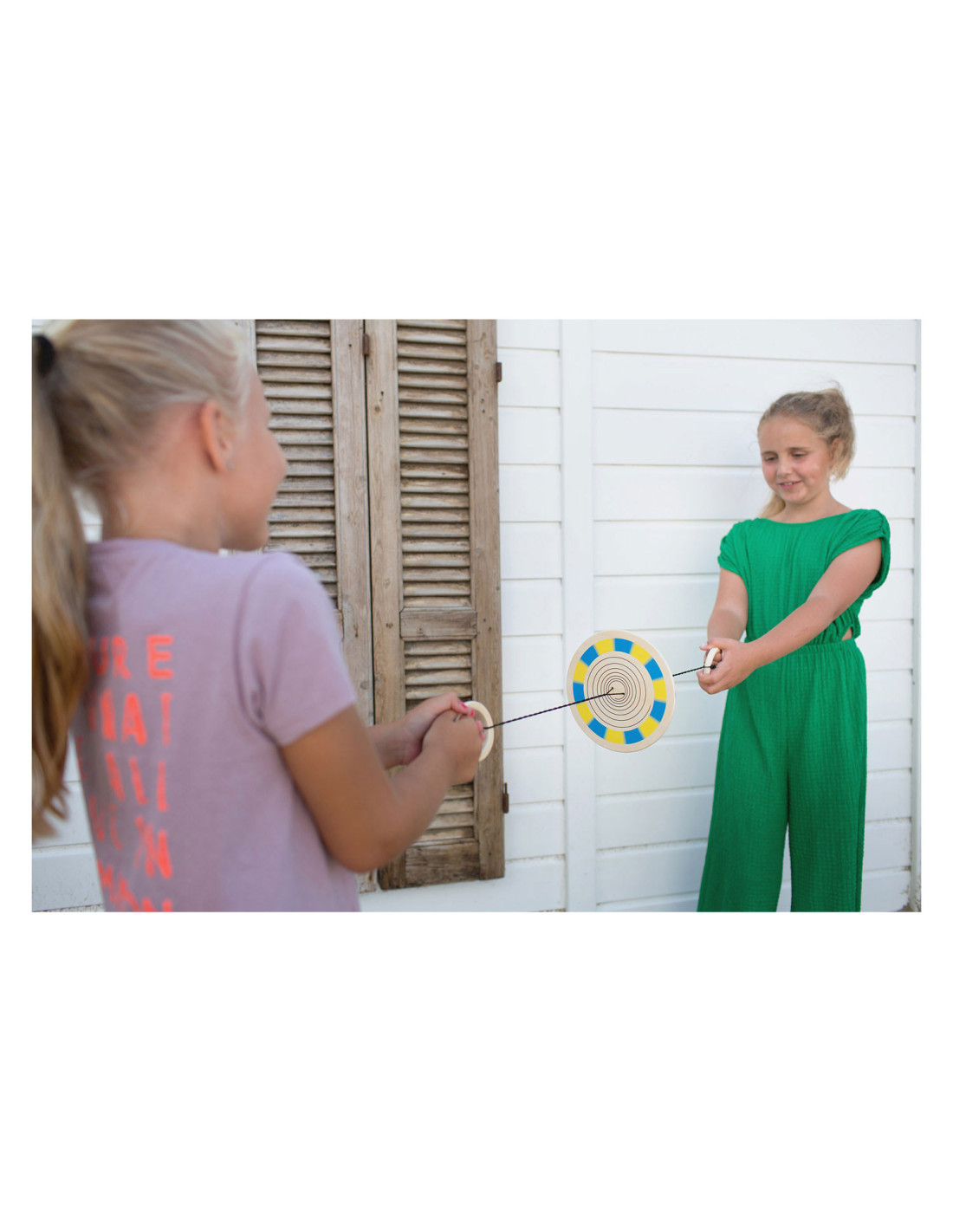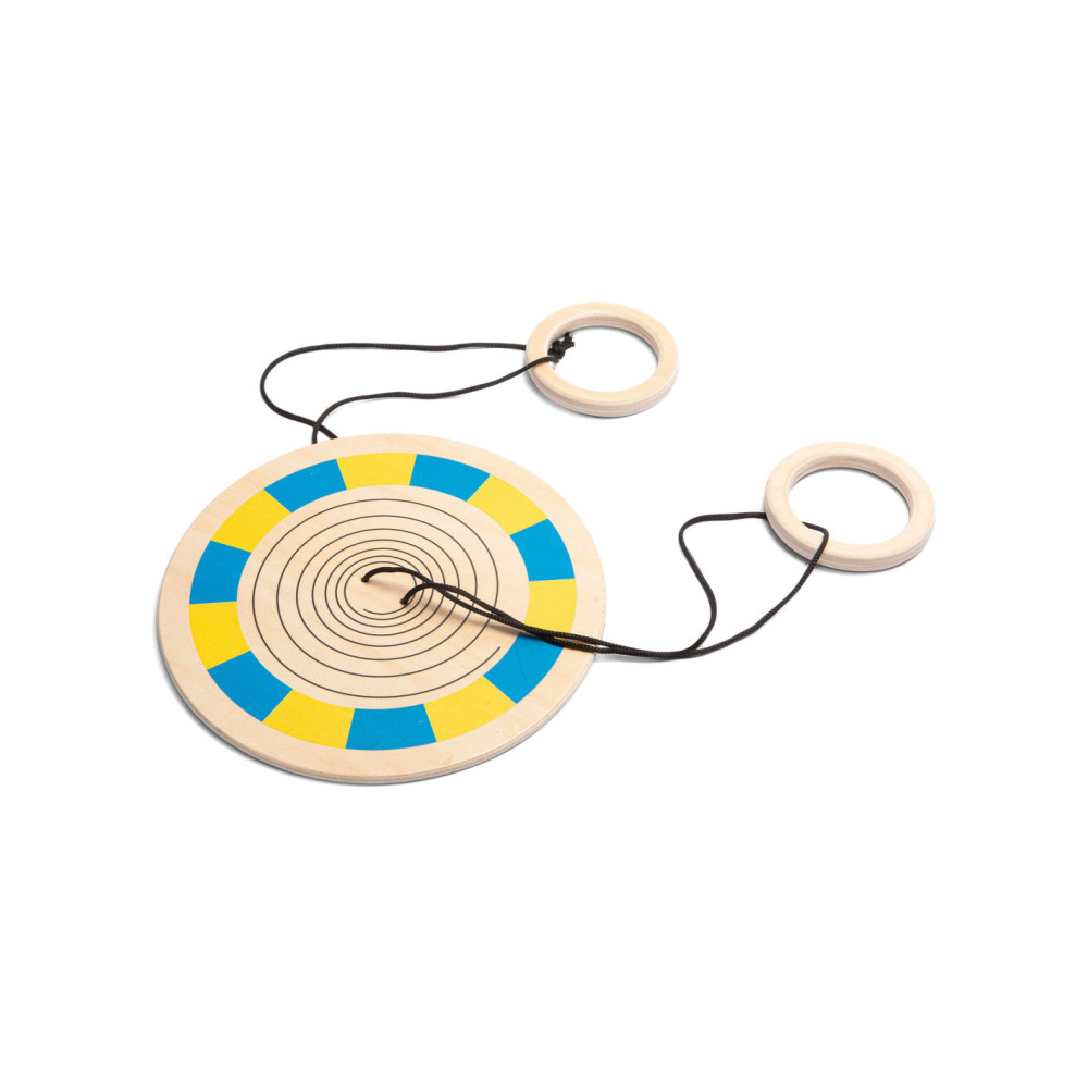 Met deze kleurenspinner is heel goed te zien wat er gebeurt als je twee kleuren mixt. Eerst zie je eerst nog geel en rood, maar als de spinner ronddraait, veranderd dit in oranje! Probeer of het je alleen lukt, of werk samen om hem zo hard mogelijk te laten ronddraaien!
