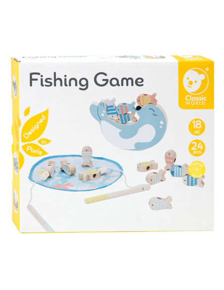 Houten visspel van Classic World met een lieve zeehond en visjes. Dit 24-delige spel is op drie manieren te spelen en is geschikt voor kinderen vanaf 18 maanden. Gemaakt van duurzaam hout en bewerkt met kindveilige materialen.