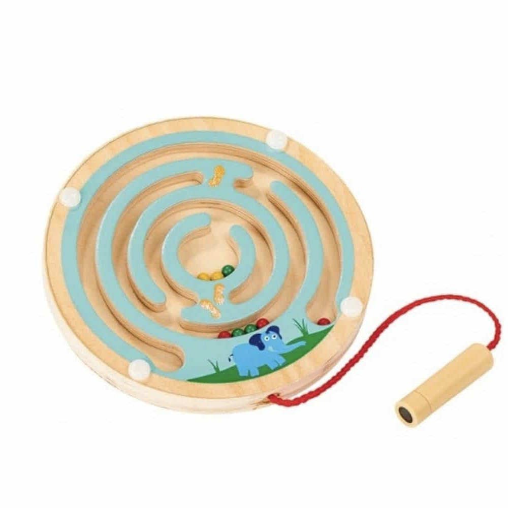 Een houten doolhof voor kinderen van de firma Moses. Breng de ballen met de magnetische stok naar het midden van het doolhof. Met dit speelgoed ontwikkelen kinderen hun fijne motoriek en tegelijkertijd is het een leuke reisactiviteit. Geschikt vanaf 3+ jaar.