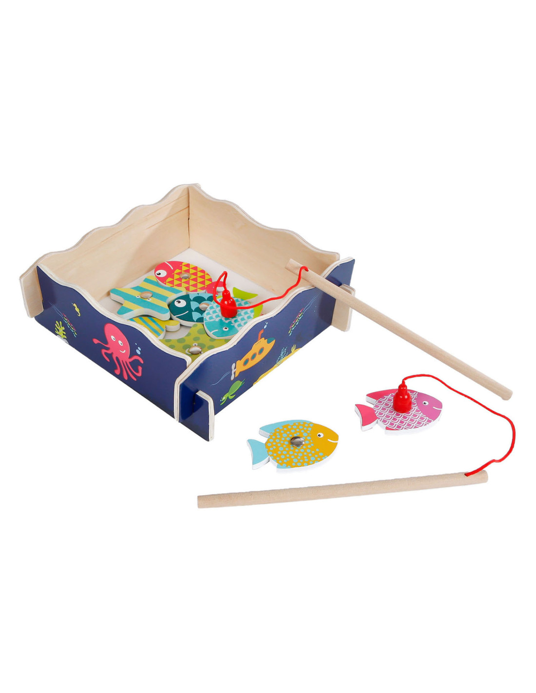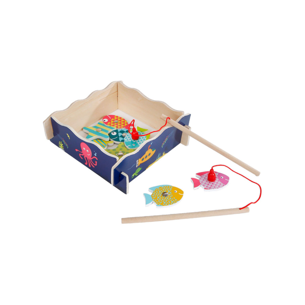 Houten visspel (15dlg) met 2 magnetische hengels. Geschikt voor kinderen vanaf 25 maanden oud.