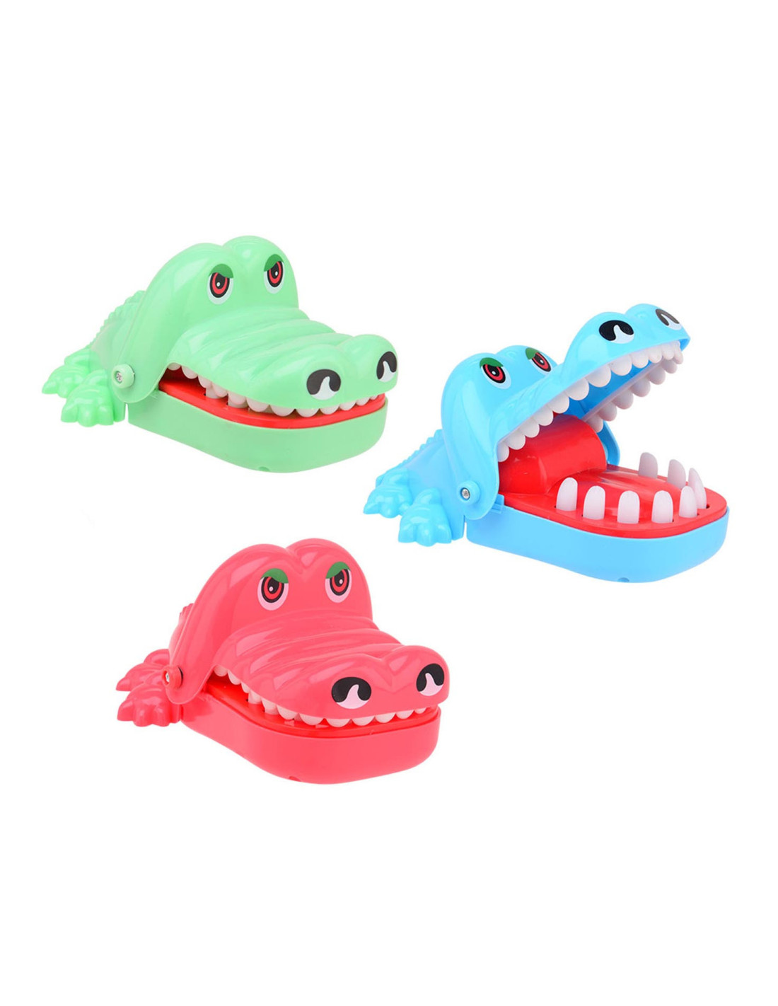 Krokodil bijtspelletje van Johntoy. Niet geschikt voor kinderen onder de 3 jaar oud. Formaat: 10 x 15 x 7 centimeter. Druk op de tanden van de krokodil en zorg dat je niet gebeten wordt.