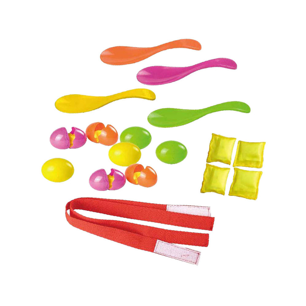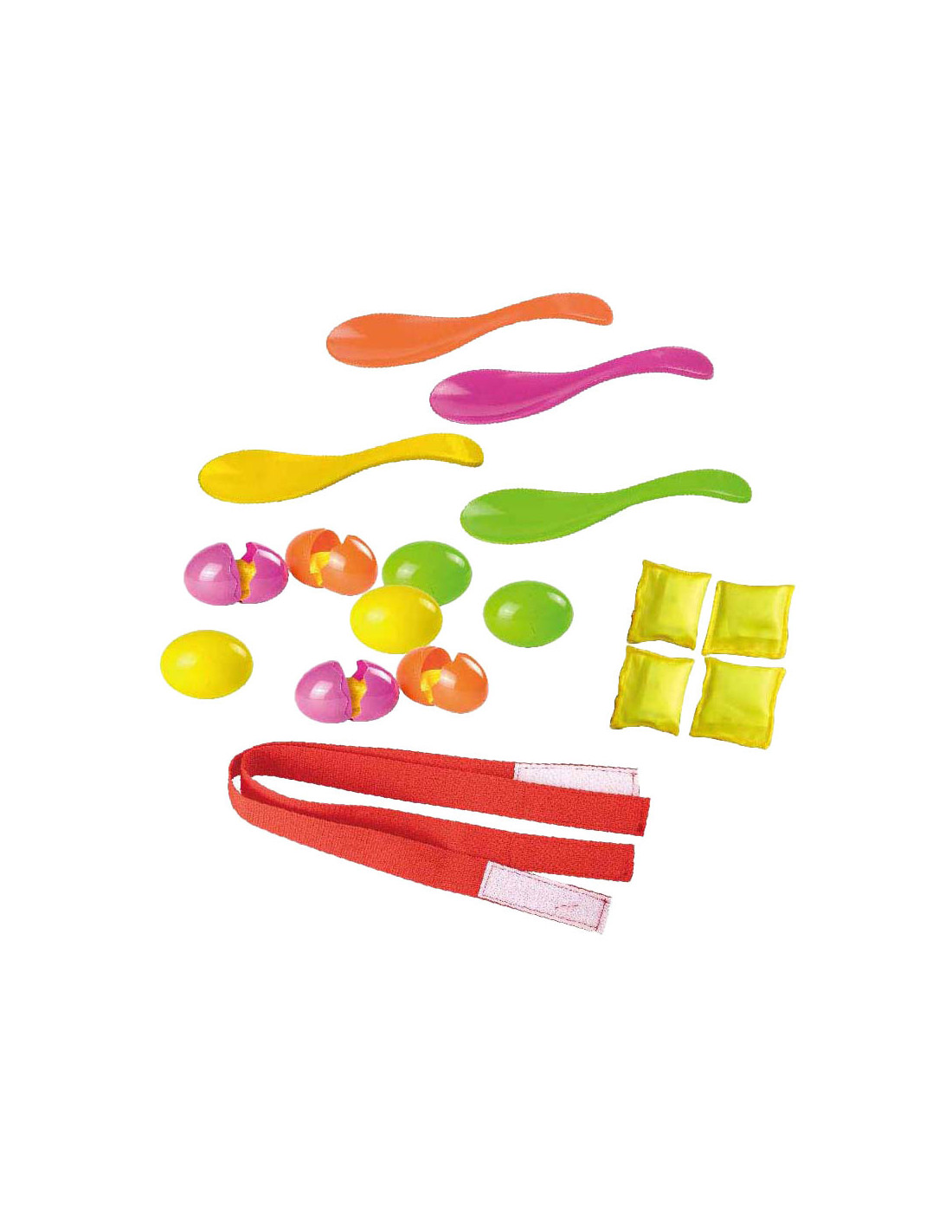 Deze vrolijke partyset is perfect voor een geweldig kinderfeestje of familiedag! Speel verschillende spelletjes en maak er een spannende wedstrijd van. Draag breekbare eieren over na de overkant op een lepel, of bind je vast aan een ander en ren zo snel mogelijk naar de overkant. Wie wordt de winnaar? Het is de ideale manier om samen plezier te hebben en een leuke tijd door te brengen met vrienden en familie!