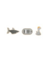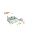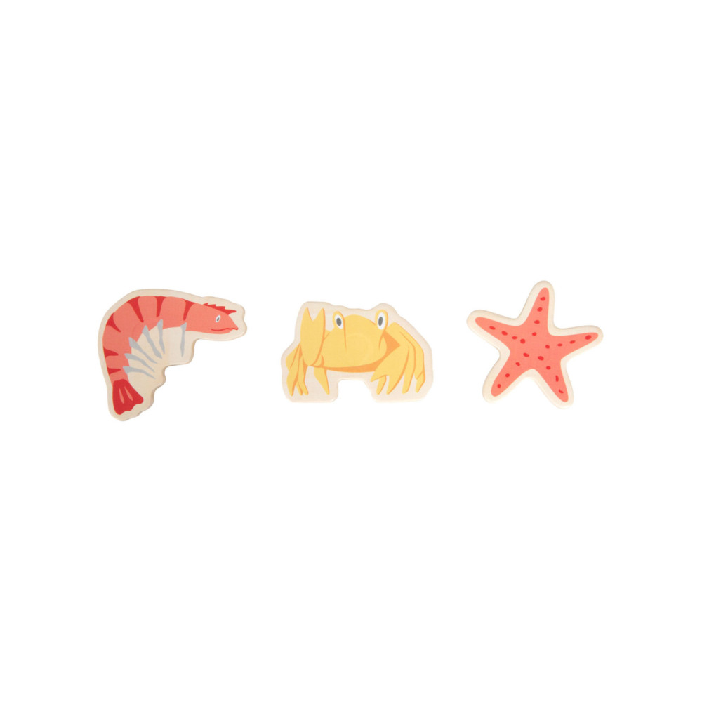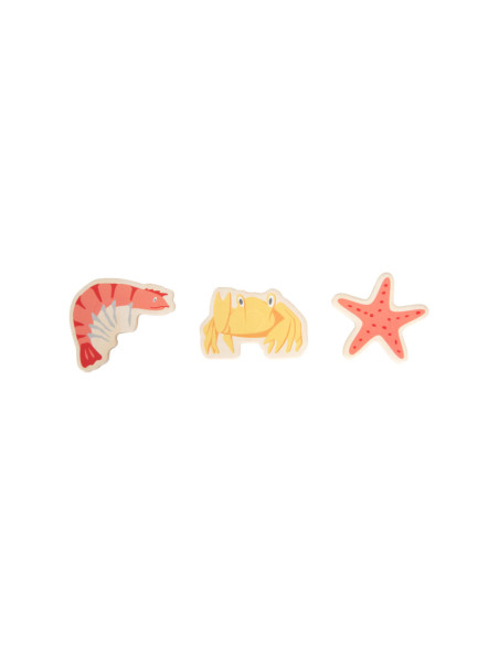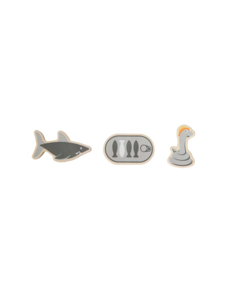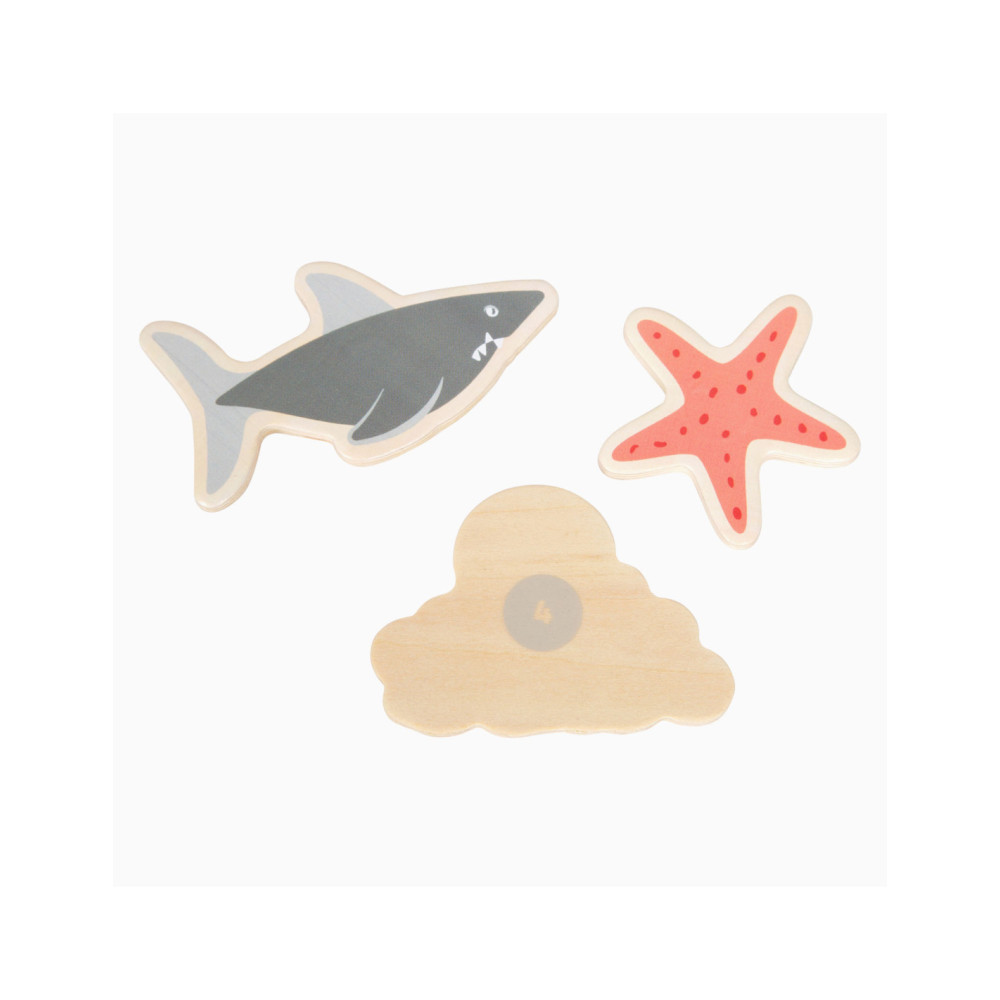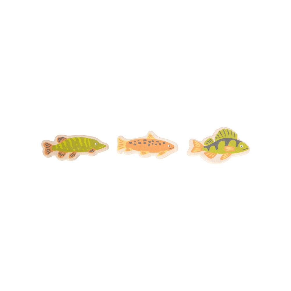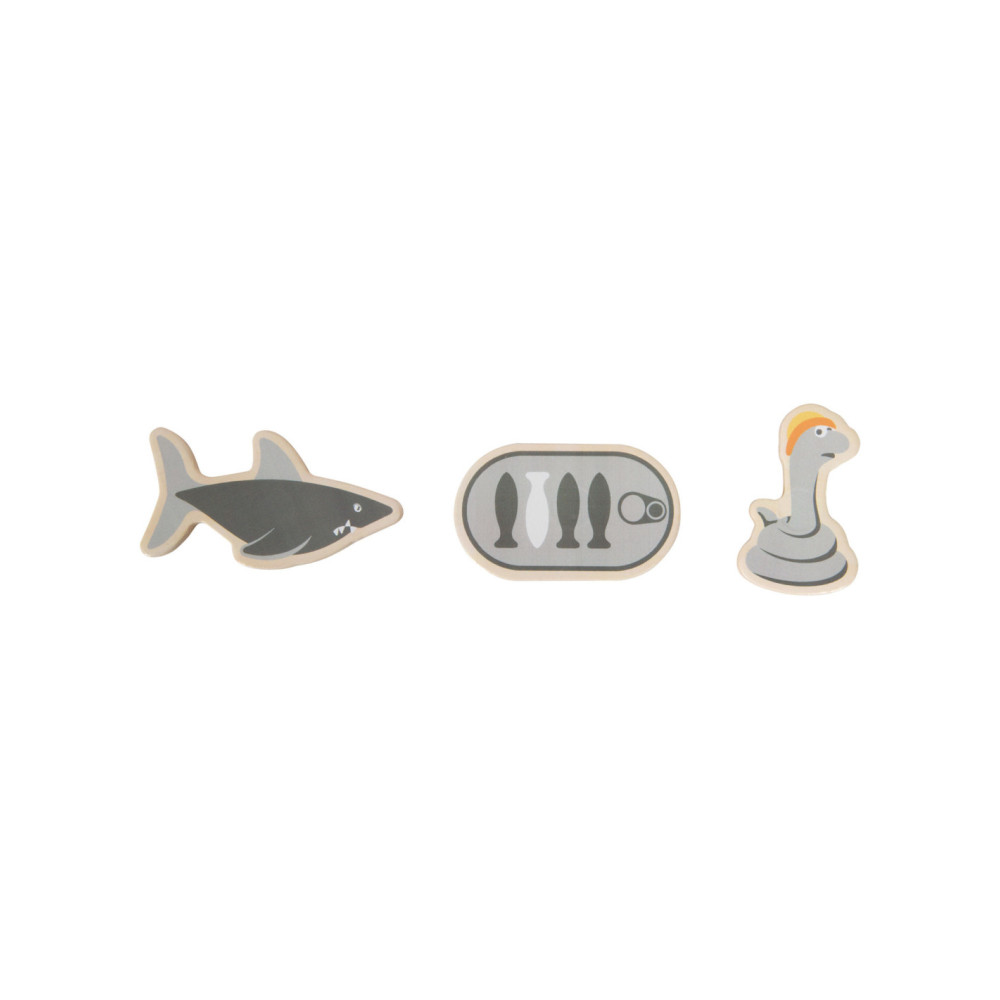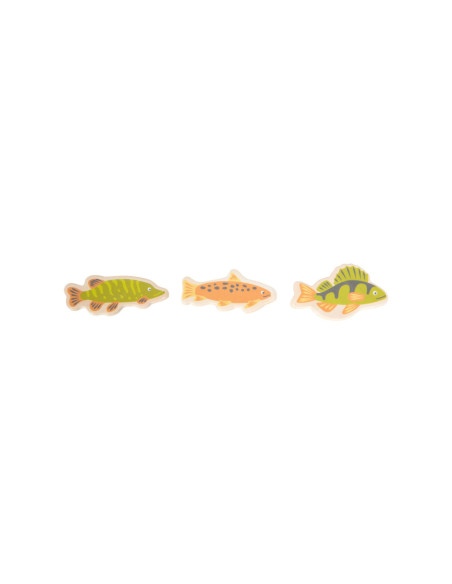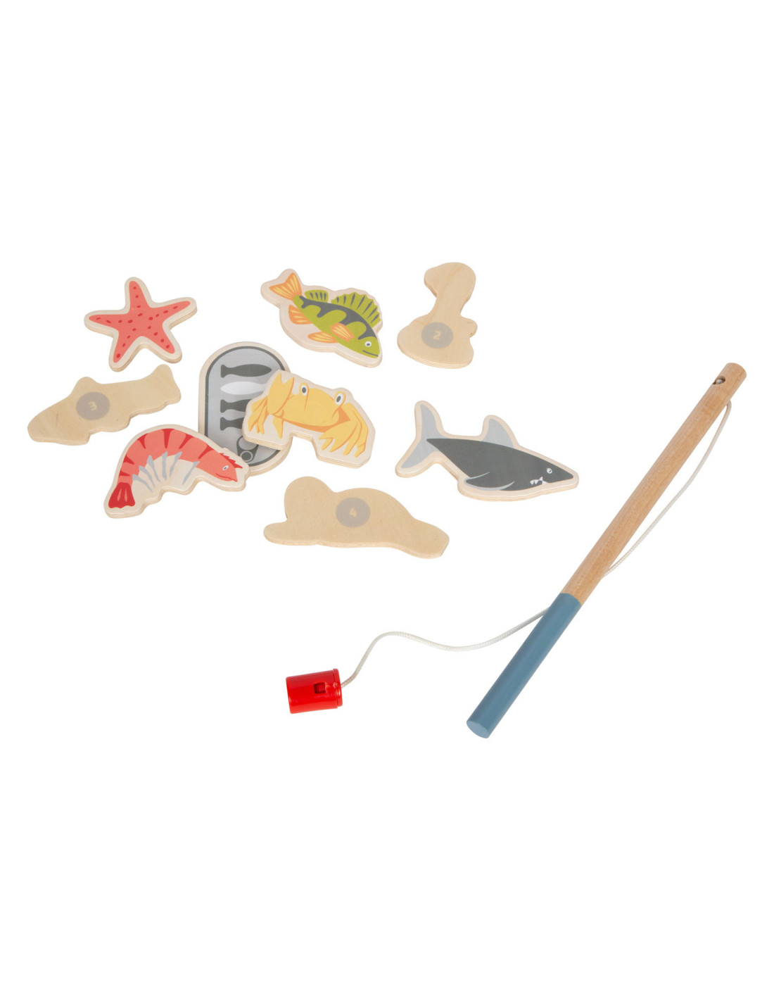 Ga vissen met een paar wilde vrienden! Bij dit klassieke houten kinderspel heb je vaardigheid en geduld nodig om met de houten hengel de juiste zeedieren uit hun zee te vissen. De haan houdt een oogje in het zeil voor de volgende te vangen vis, terwijl de koe vist. Door de boot op het kompas te laten draaien, wordt aangegeven welk zeedier als volgende moet worden gevangen. En dat is praktisch: de bodemflap van de hoogwaardige speeldoos vormt samen met extra wanden een driedimensionaal speelveld. Speelbaar in twee variaties. Groot plezier voor kleine visliefhebbers, samen met vrienden of alleen, en een geweldige kans om de bewoners van de Noordzee, de Oostzee en de Europese binnenwateren te leren kennen. Zodra de juiste vis is gevangen, wordt deze in de visvoorraad van de speler gestopt. Als de verkeerde vis wordt gevangen, moet hij terug in het water worden gegooid. Wordt geleverd met hoogwaardige speldoos voor opslag.